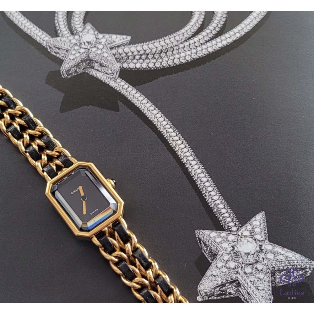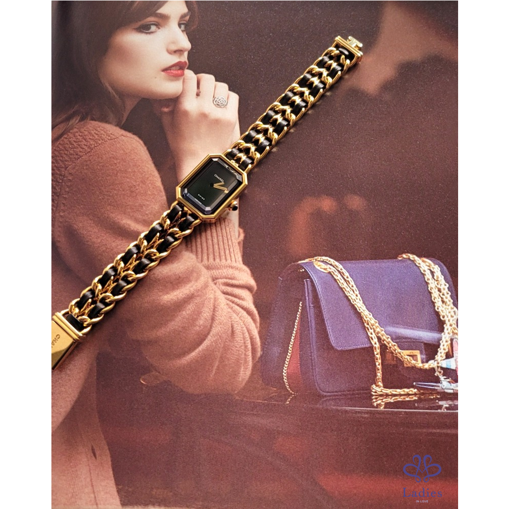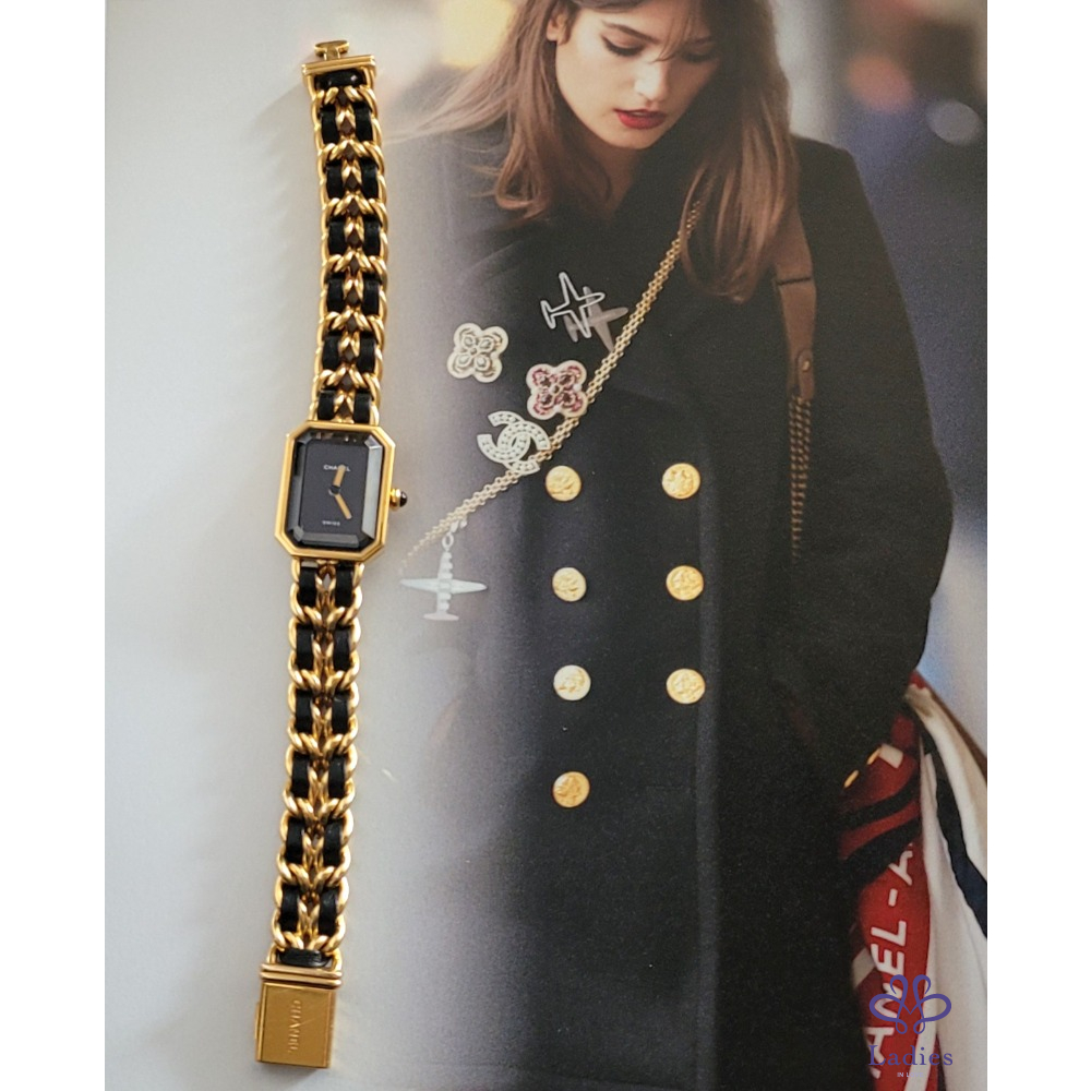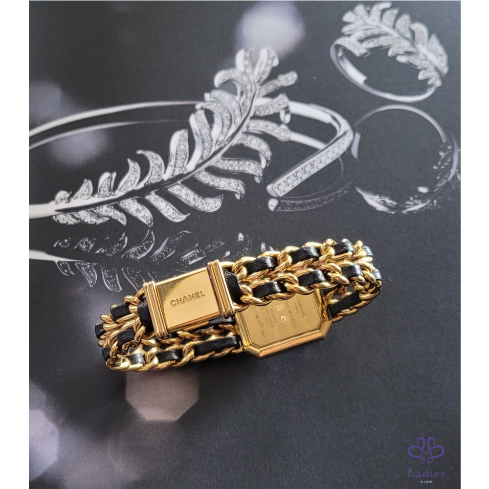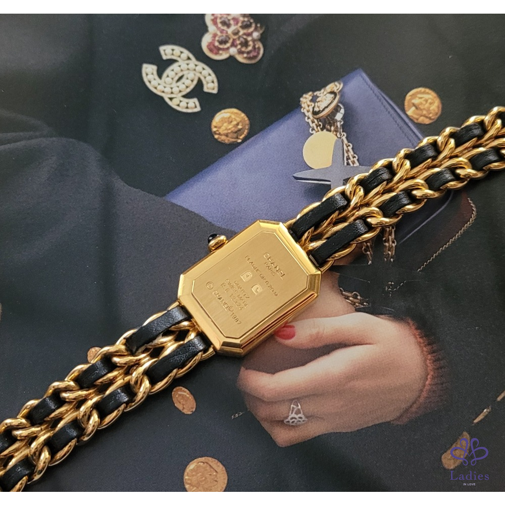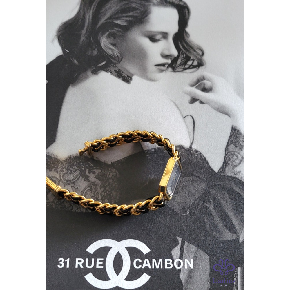~CHANEL premiere 最搶手熱門款 Vintage老香~金鍊黑皮繩XL號