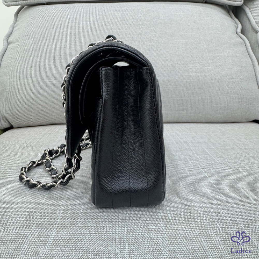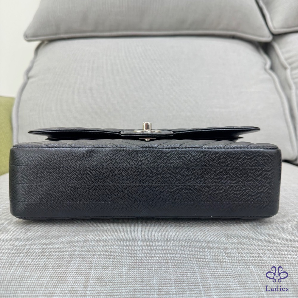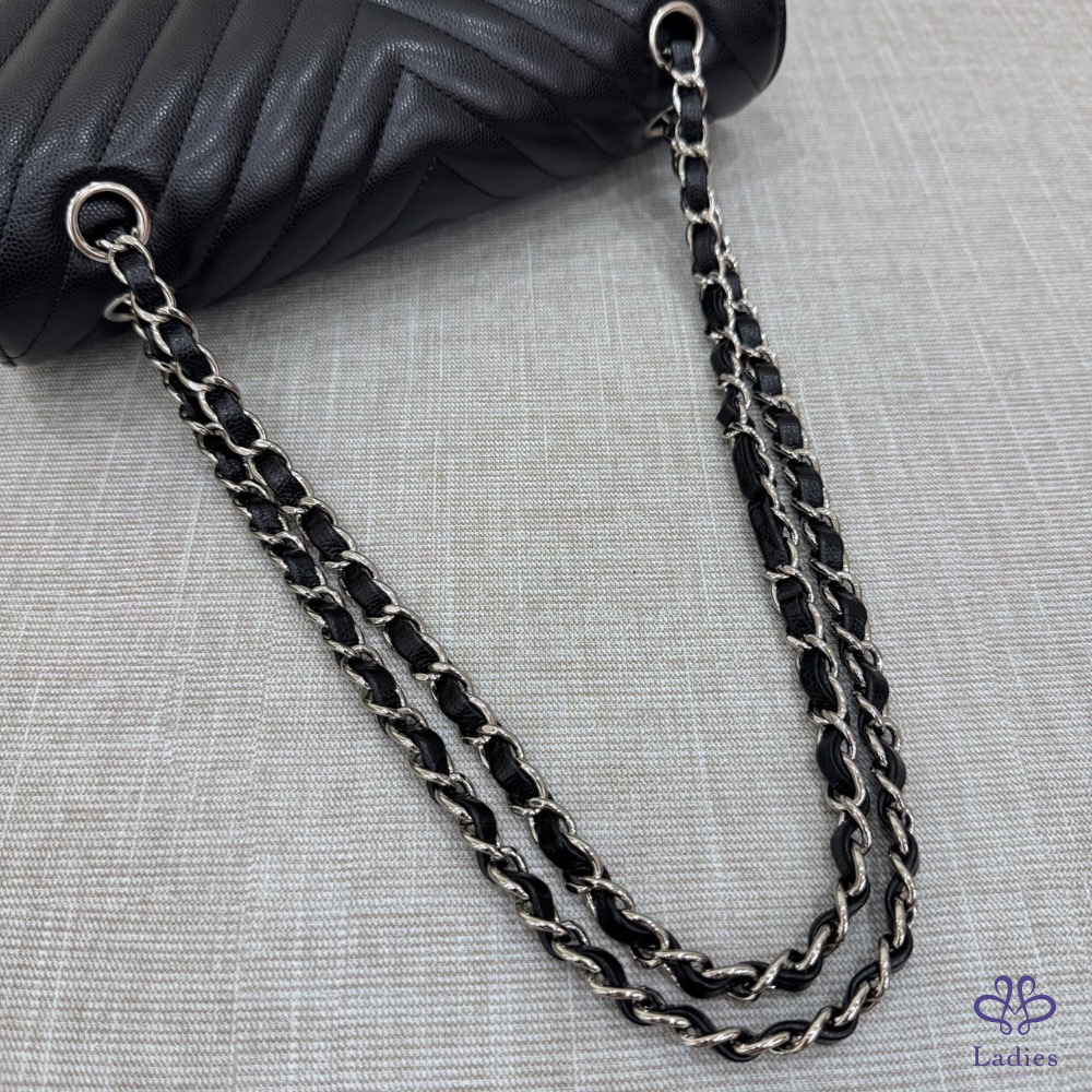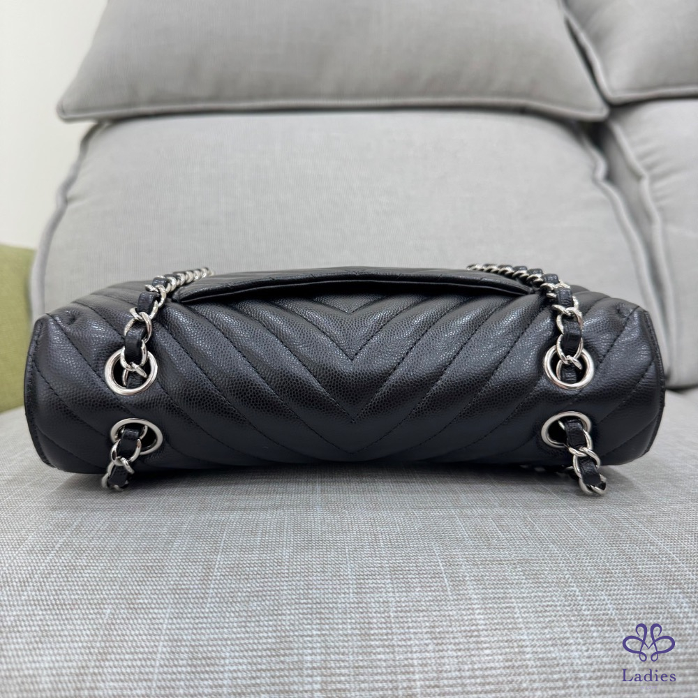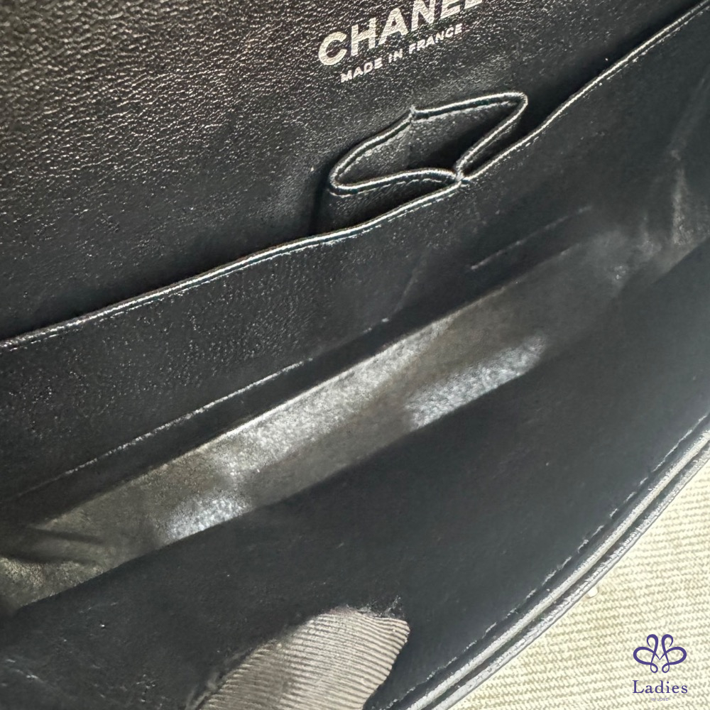 💝💝代售 香奈兒 CHANEL cf25 黑銀v紋牛皮荔枝紋經典常青款 中號