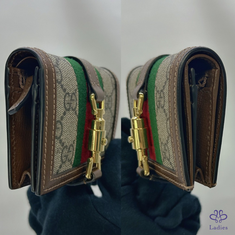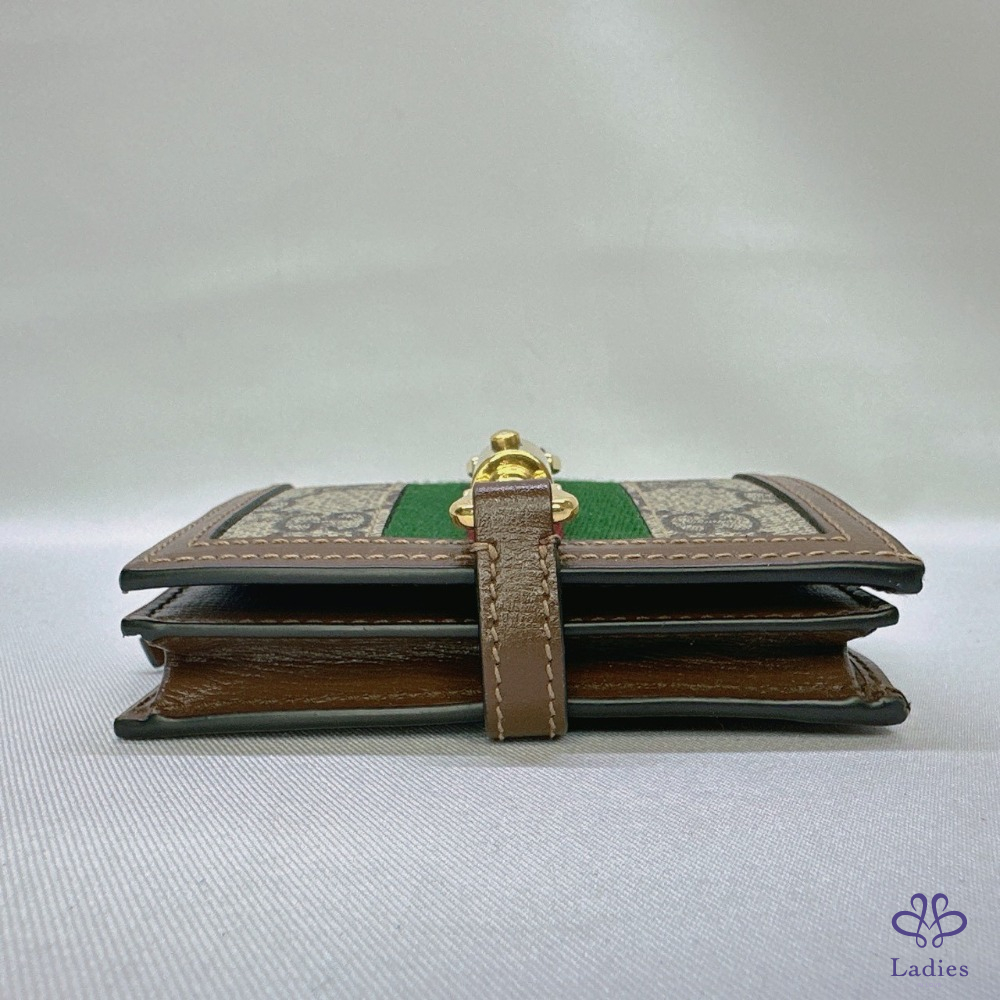 產品信息 【GUCCI Jackie帆布短夾】 Jackie 1961系列推出小巧高貴卡包造型 金色調推入式鎖扣細節令人聯想到1961年的原始Jackie手袋♠️ 扣式開口/內有4信用卡夾+2貼袋+1鈔票層+1拉鍊零錢袋等收納空間💯 ⚜️整體包況9成新,二手商品均有正常使用/存放痕跡 ⚜️型號:645536 ⚜️尺寸:11x9x3cm ⚜️附件:原廠紙盒、冊本 #A113070302