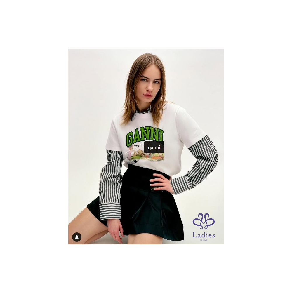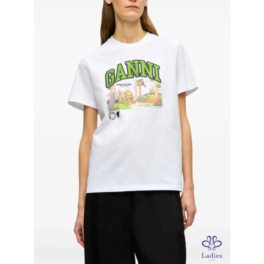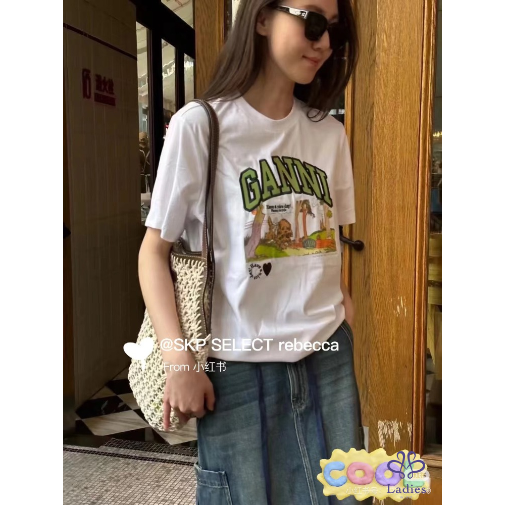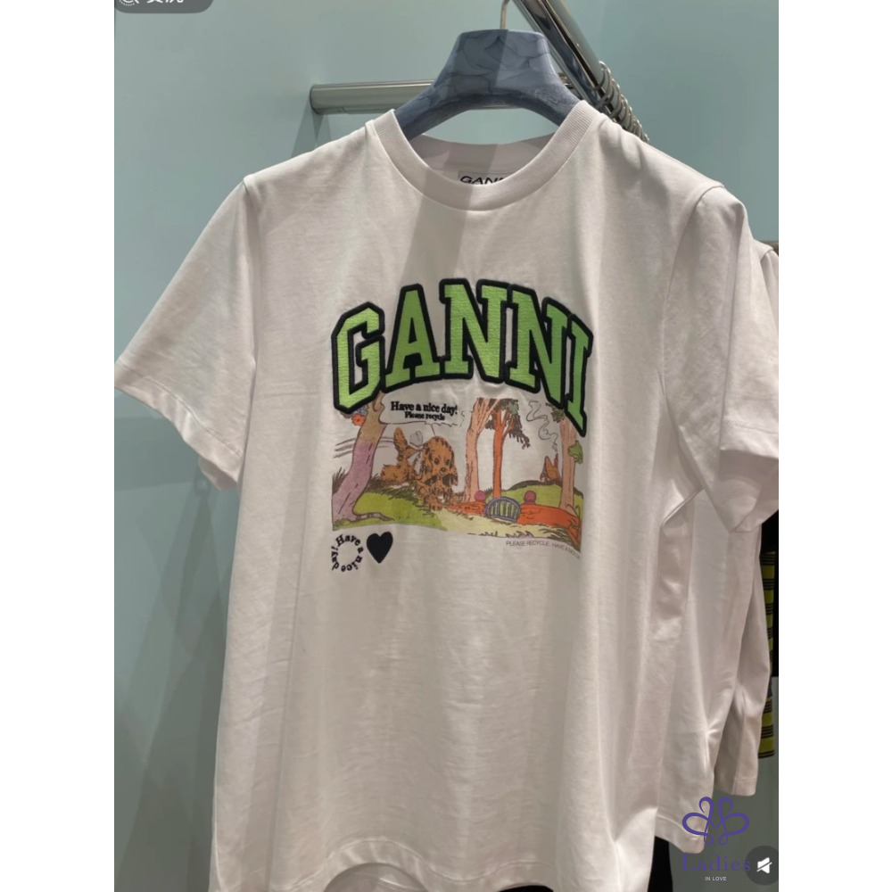全新 GANNI 漫畫風狗狗圖案白色短袖上衣 (1~2週抵台)