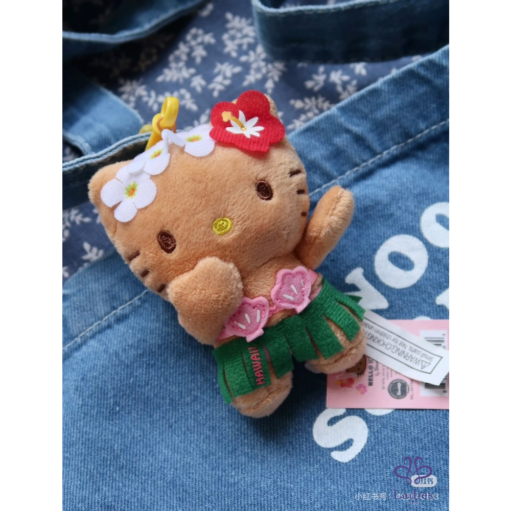 全新 夏威夷50週年限定款 超萌 Hello Kitty 曬黑健康焦糖棕膚色毛絨包包吊飾鑰匙圈 現貨在台 (實拍)