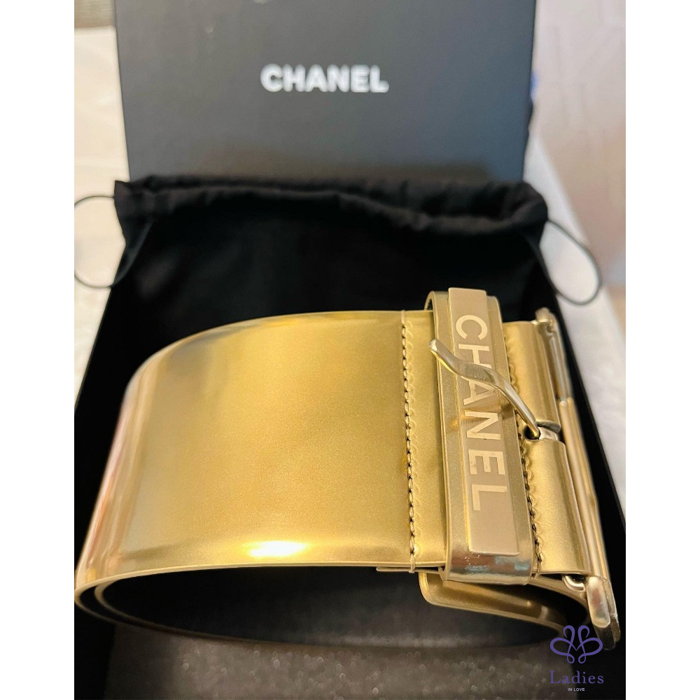全新商品,台北新光三越香奈兒專賣店購買,附防塵袋及盒子。全新未使用,全長88公分。寬六公分,金屬部分也完全沒有任何傷痕及氧化的痕跡。稀少產品,但卻非常好搭配。