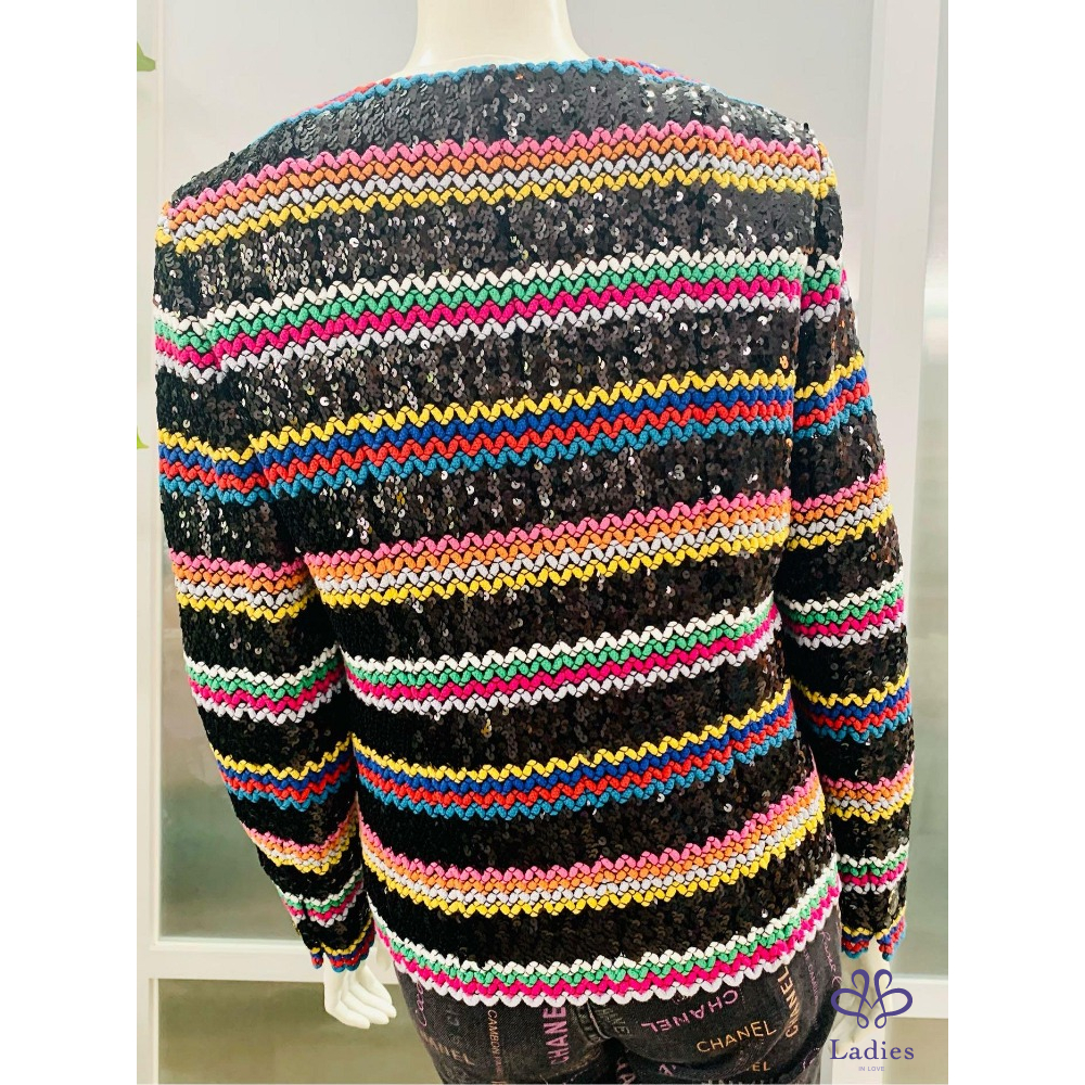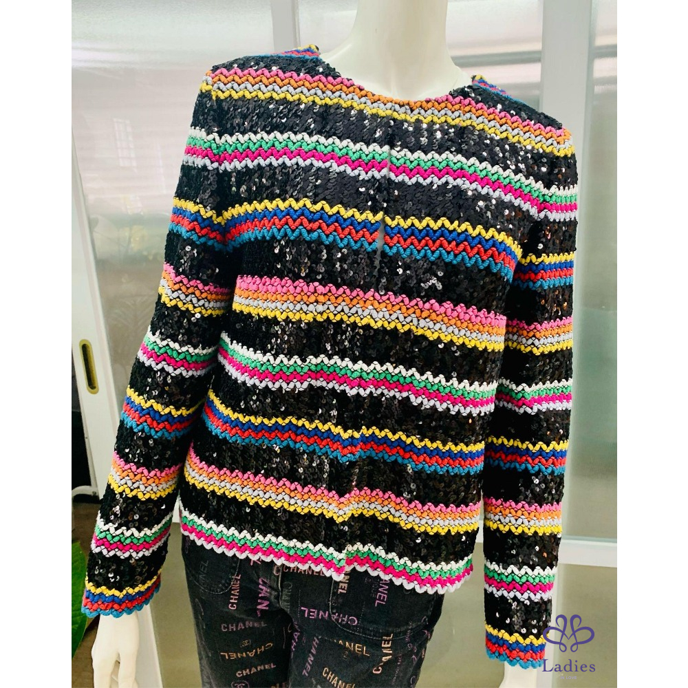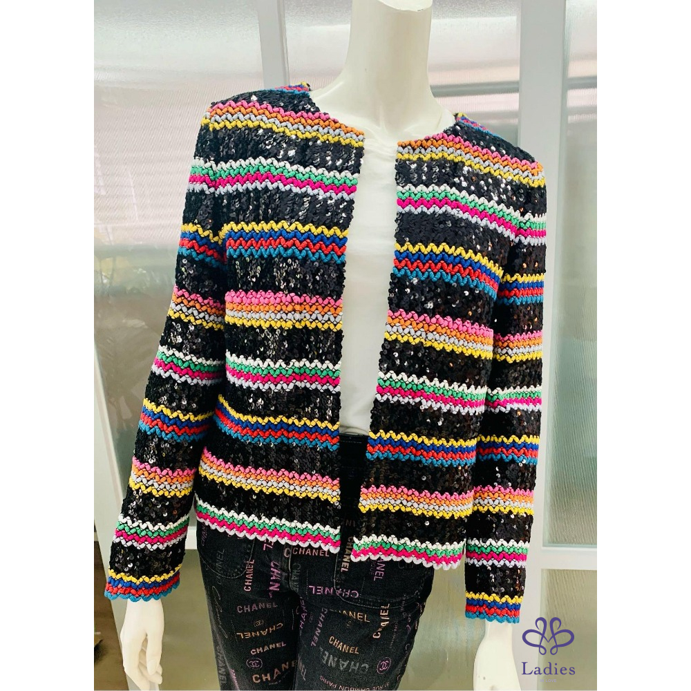 全新商品,從未穿過,尺寸38,原價約40萬元。一件劉嘉玲也穿過的香奈兒手工亮片外套,顏色繽紛,十分得好搭配,久看不膩的一件作品。