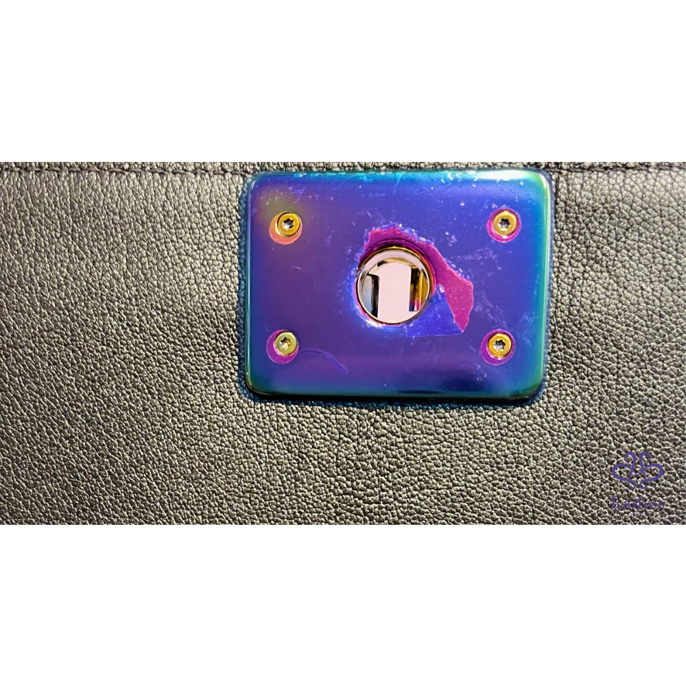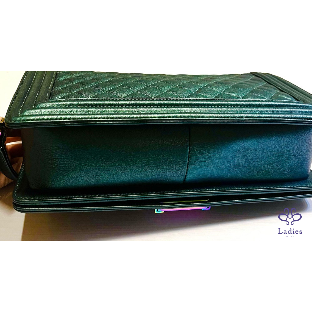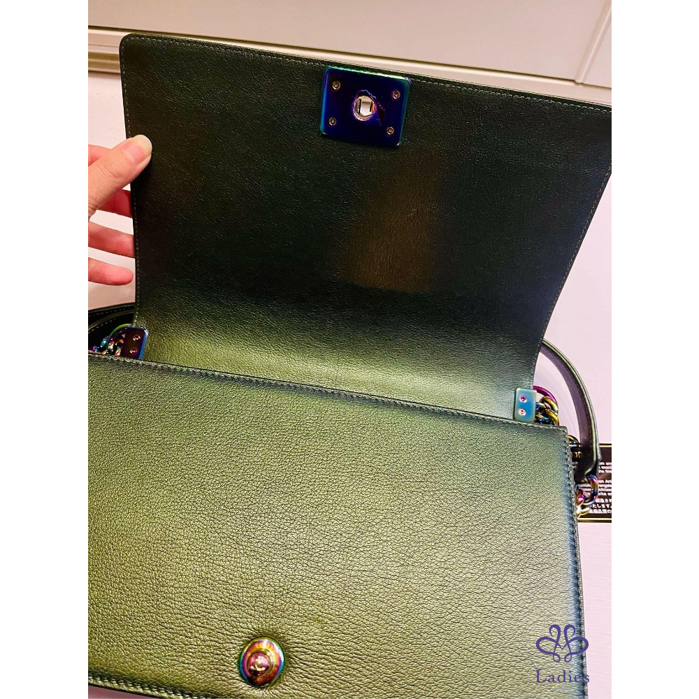 非常的新,為中號尺寸,寬28公分,漂亮的深綠色,金屬為彩虹色,牛皮,附保證卡,防塵袋及盒子。台北市復興SOGO專賣店購買,斜背或側背皆可,保證真品。現專櫃售價$253600。
