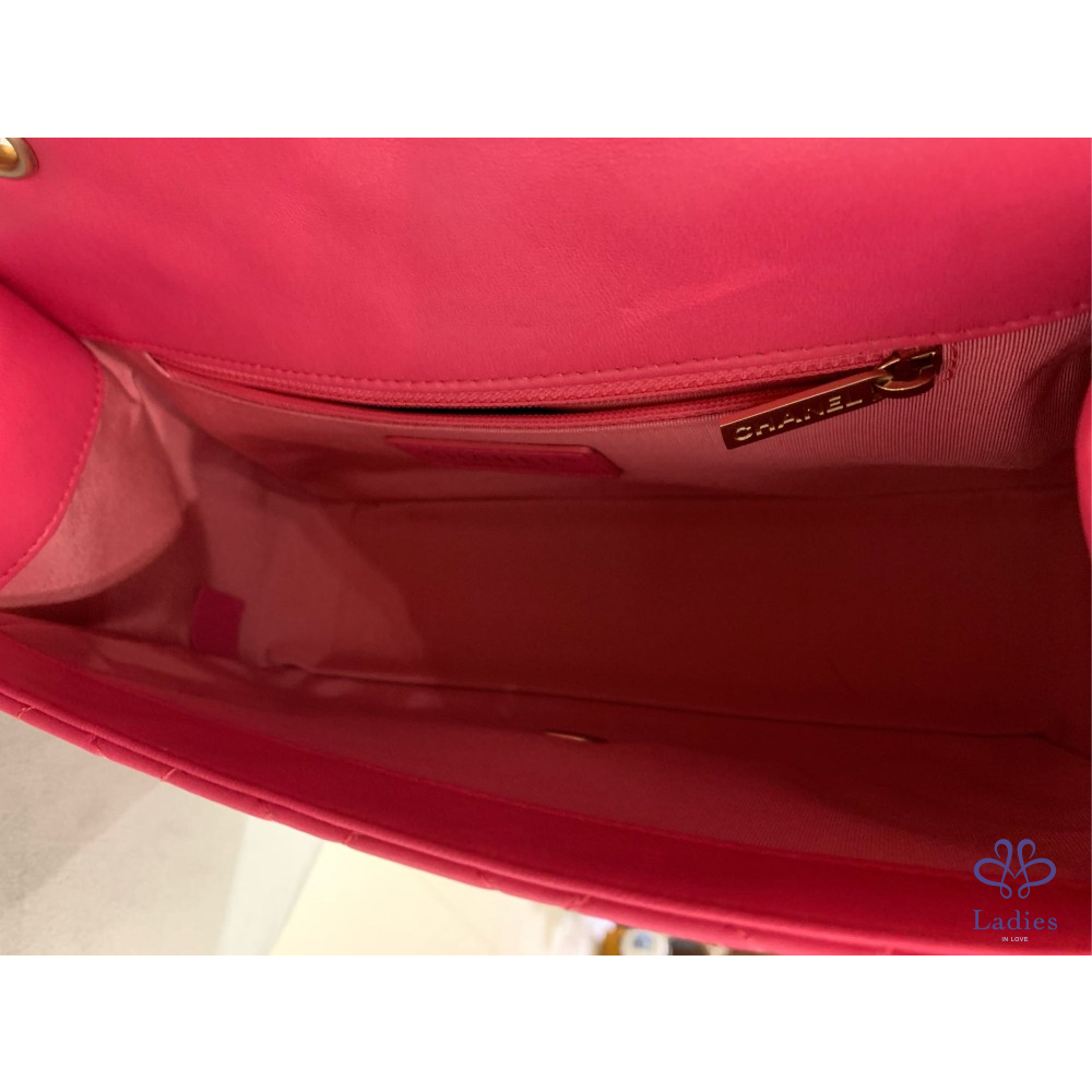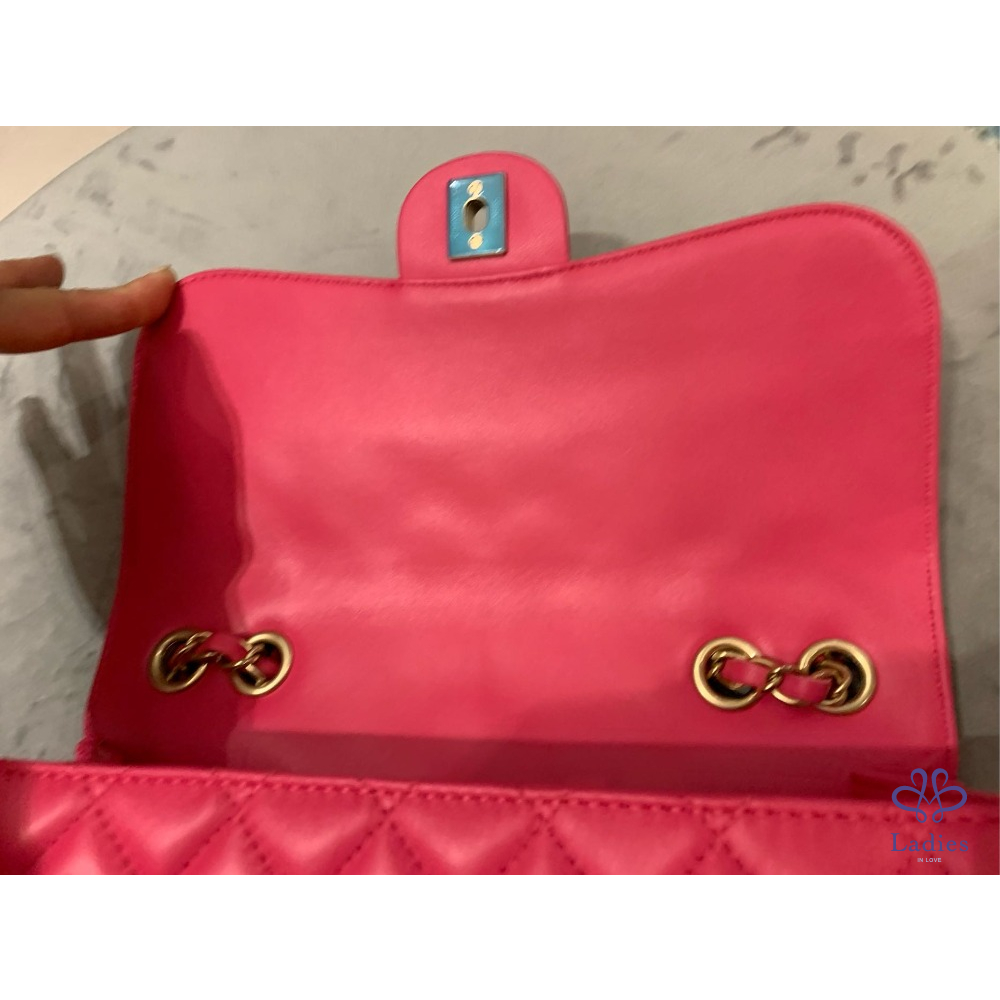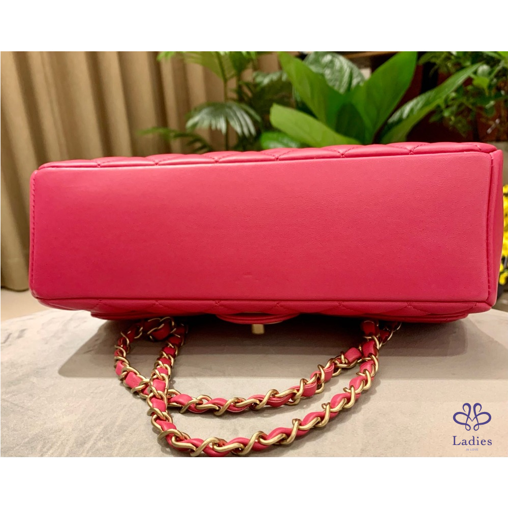 香奈兒莓果紅金色雙鍊口蓋包(特價品