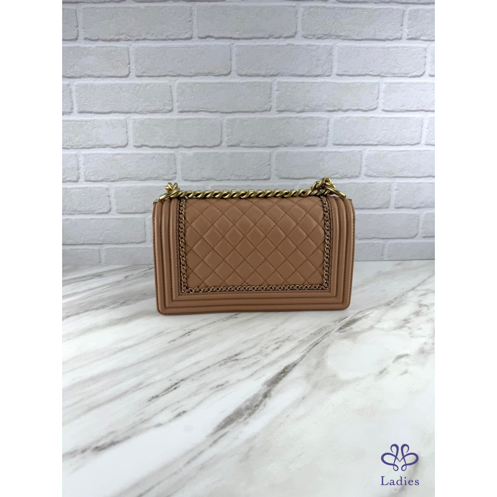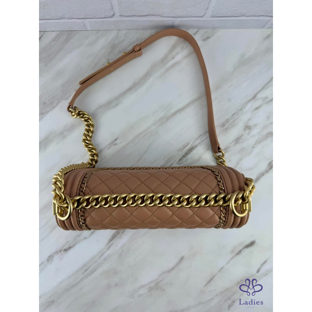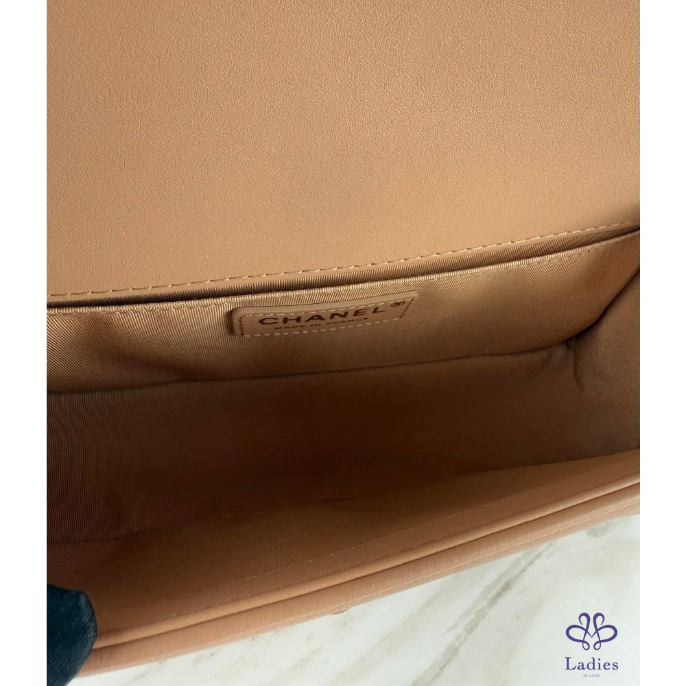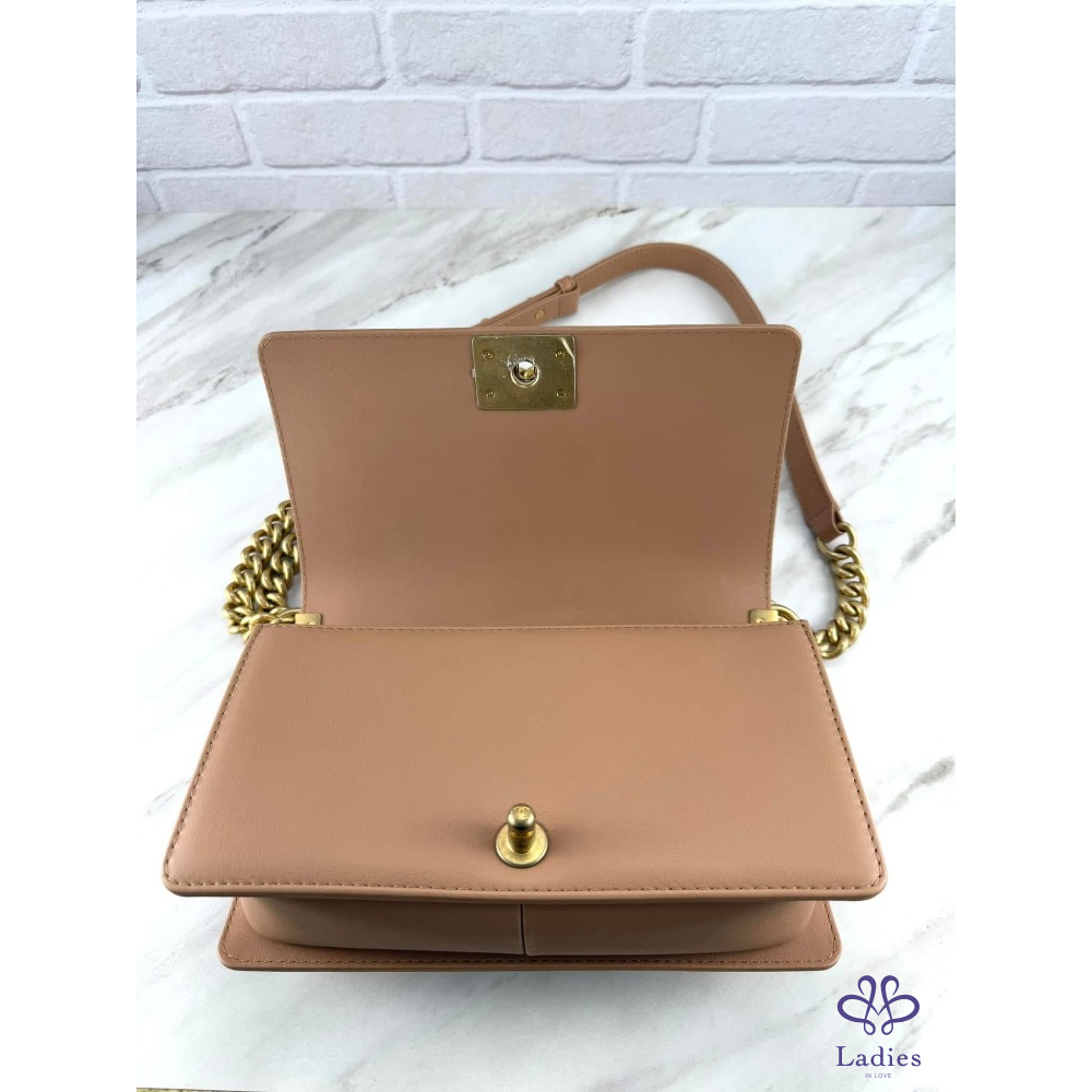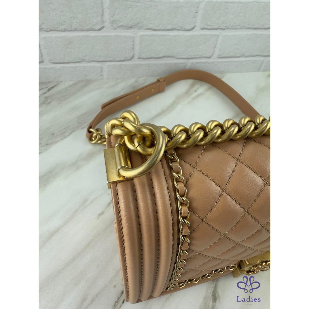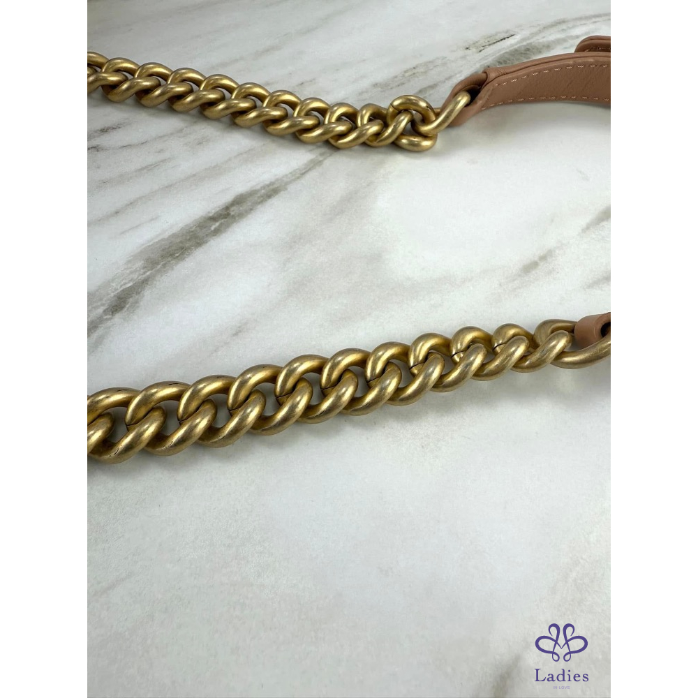 限量Boy 皮革穿鍊Logo,高級華麗,經典鍊條鑲邊精緻貴氣,超美的奶茶色帶著柔粉金,溫柔典雅,高級感滿滿,讓人目不轉睛