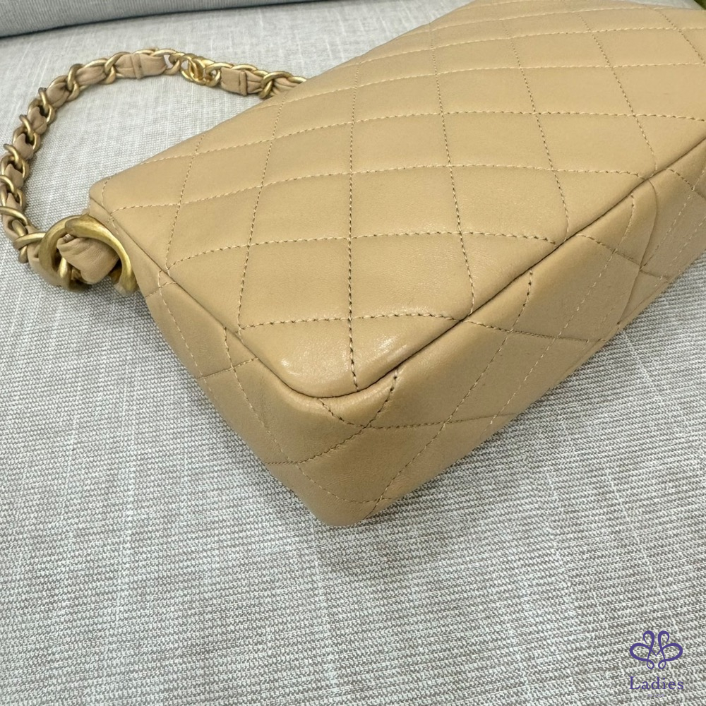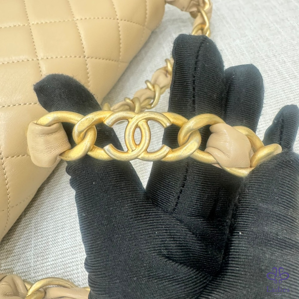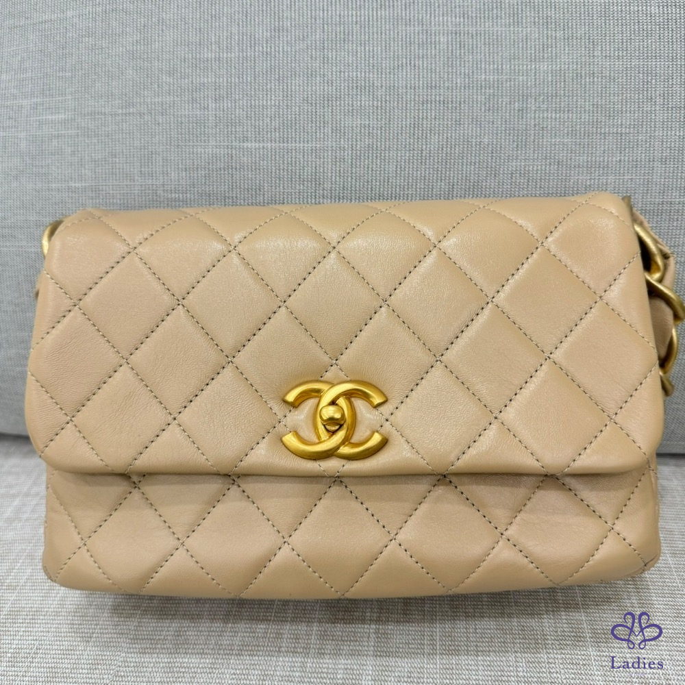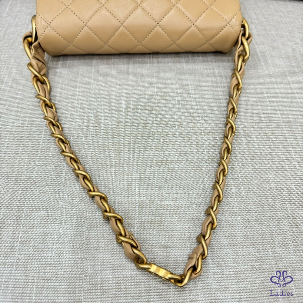 💖💖 香奈兒 CHANEL 24S 粗鏈條 Hobo 腋下包 復古做舊五金 奶茶金釦