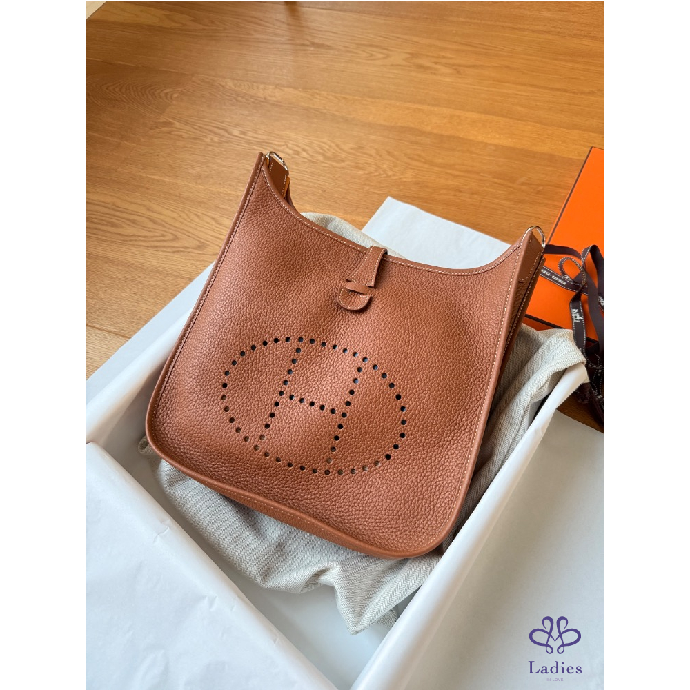 全新Hermes Evelyn 29 金棕銀釦 TC皮 W刻