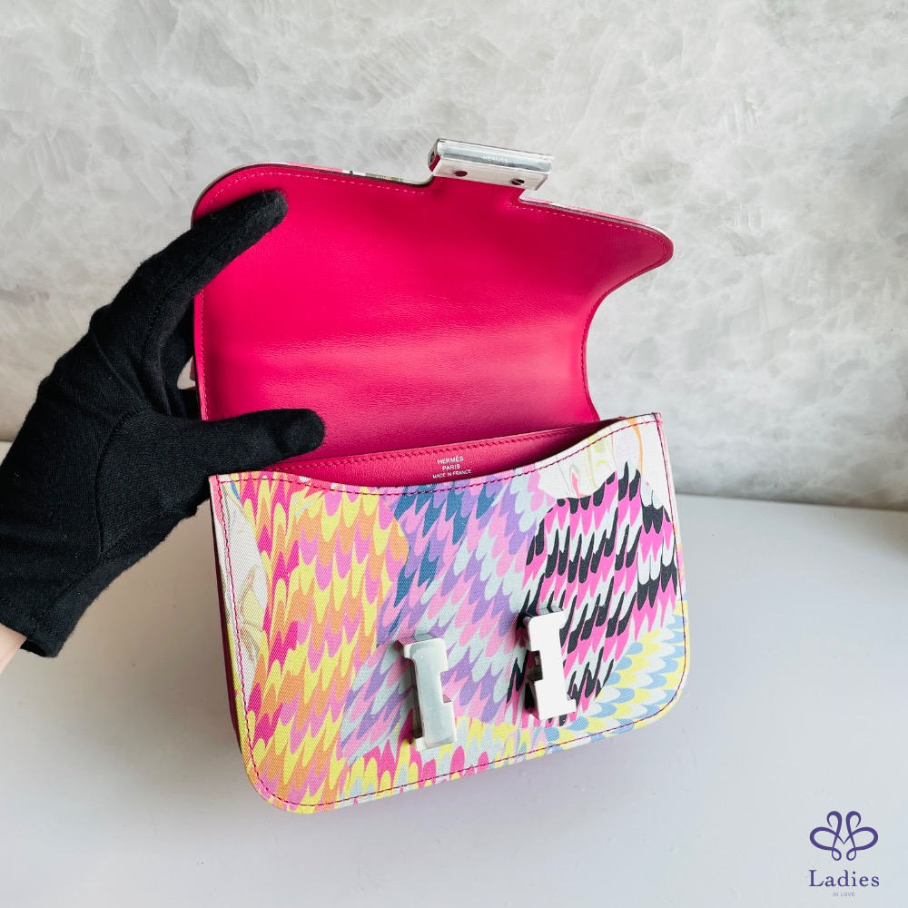 💖Hermès 康康19 絲綢包銀釦 藍盒子