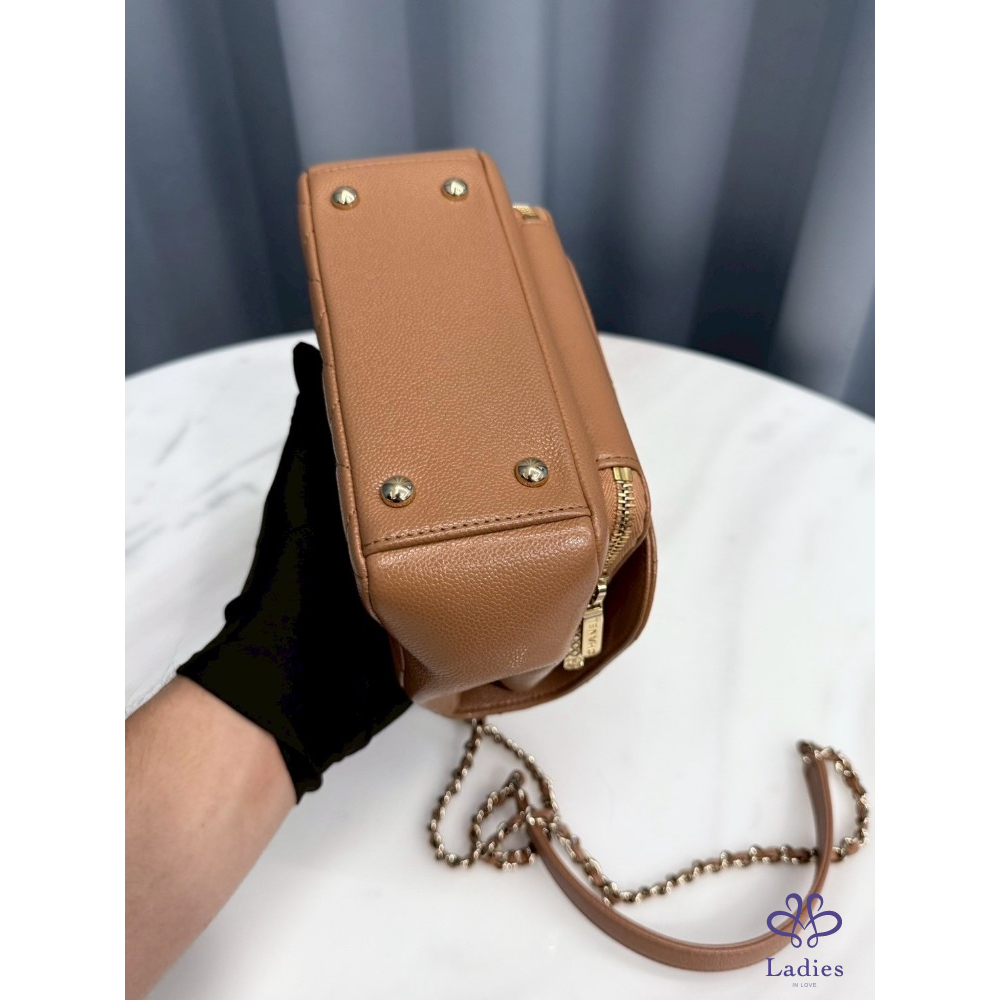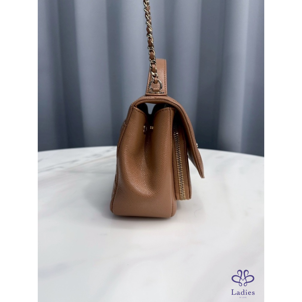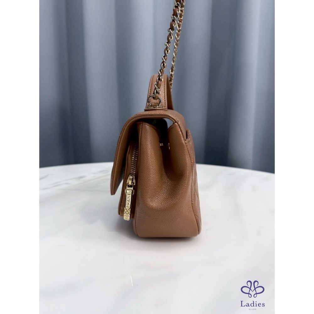 Chanel affinity 郵差包 奶茶色 金釦 荔枝牛