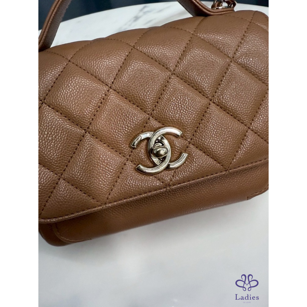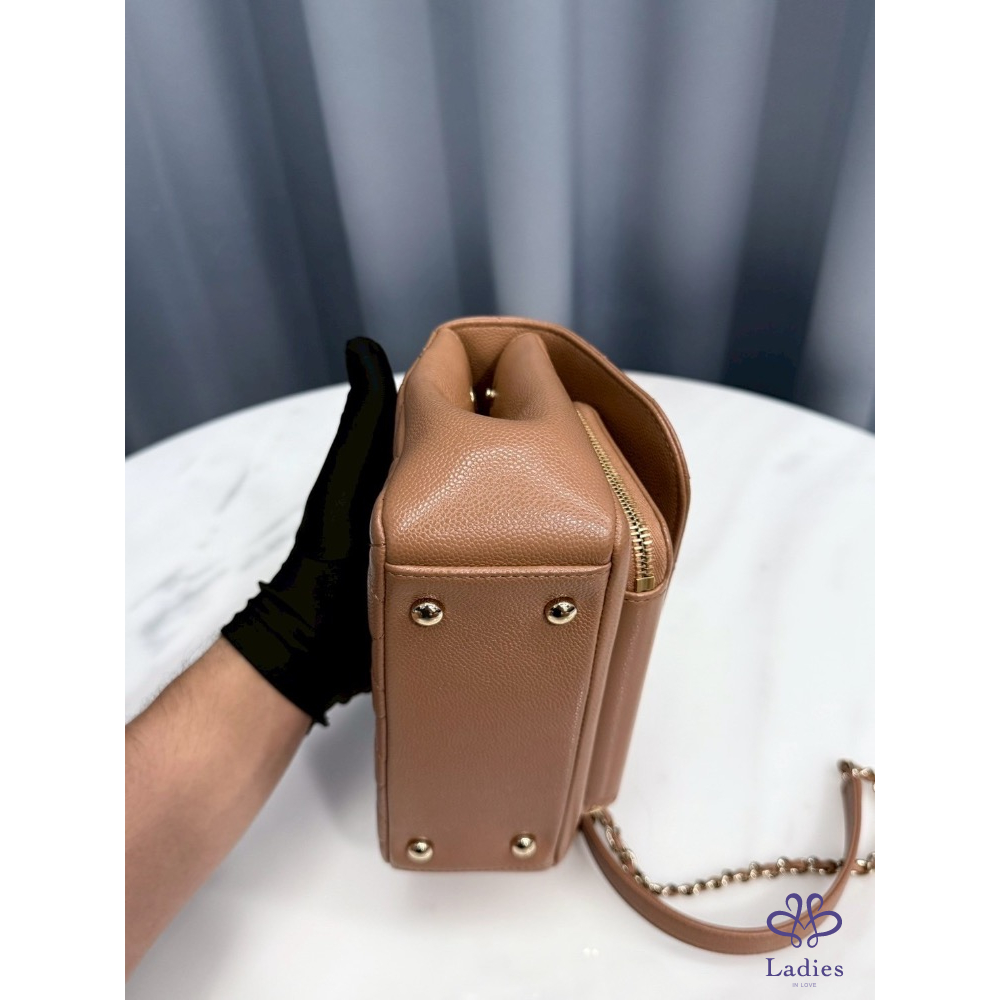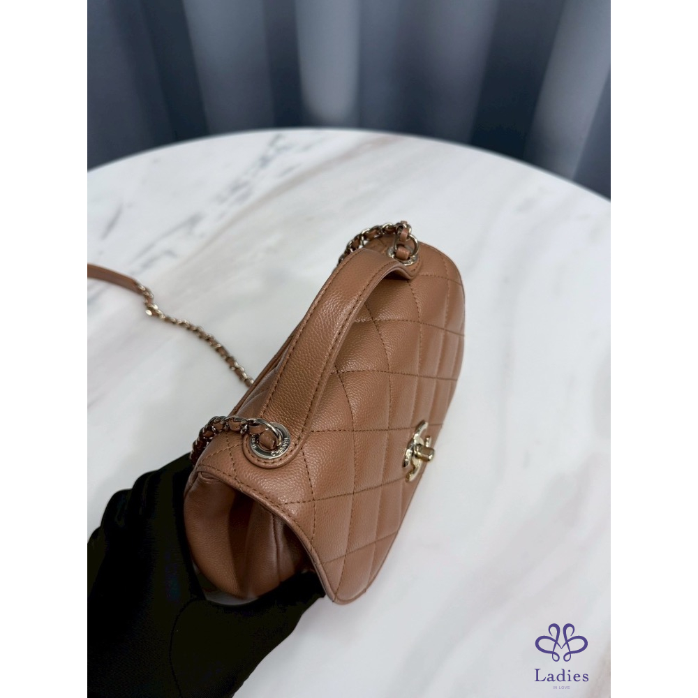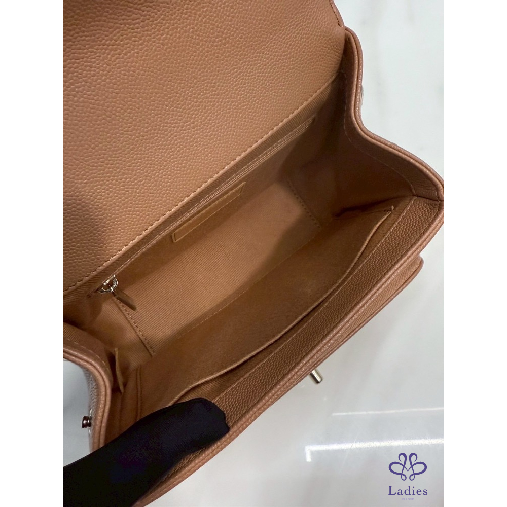 Chanel affinity 郵差包 奶茶色 金釦 荔枝牛