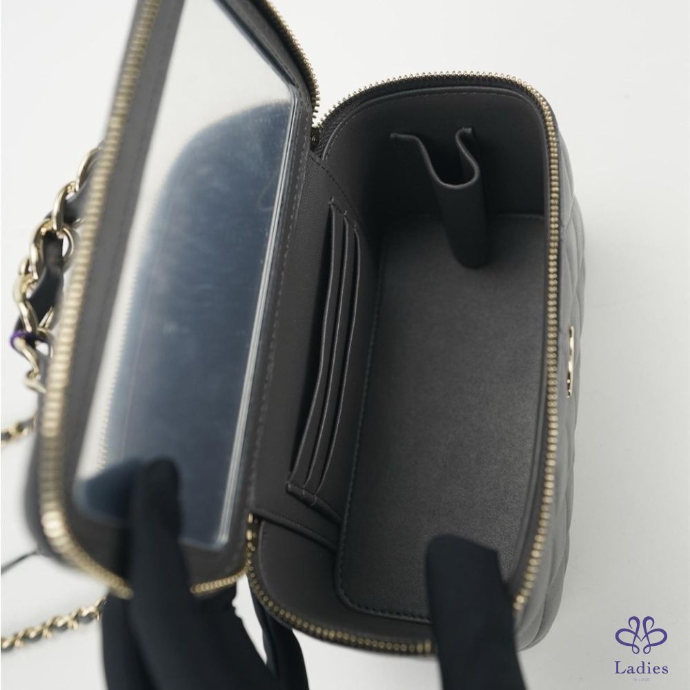 Chanel 23K 手柄長盒子化妝包 水泥灰