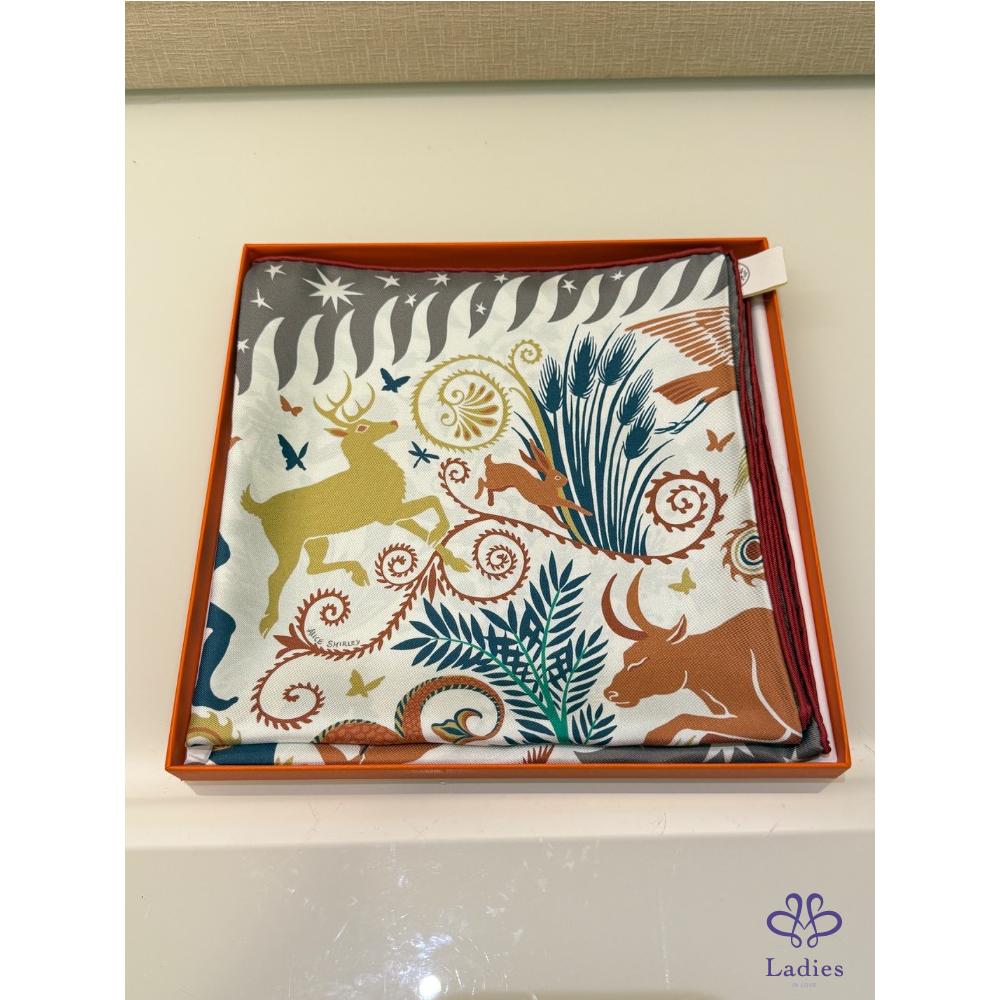 全新全配 HERMES Sous le Charme d'Orphee 90 俄爾甫斯的魔力 雙面絲巾 台灣購證影本