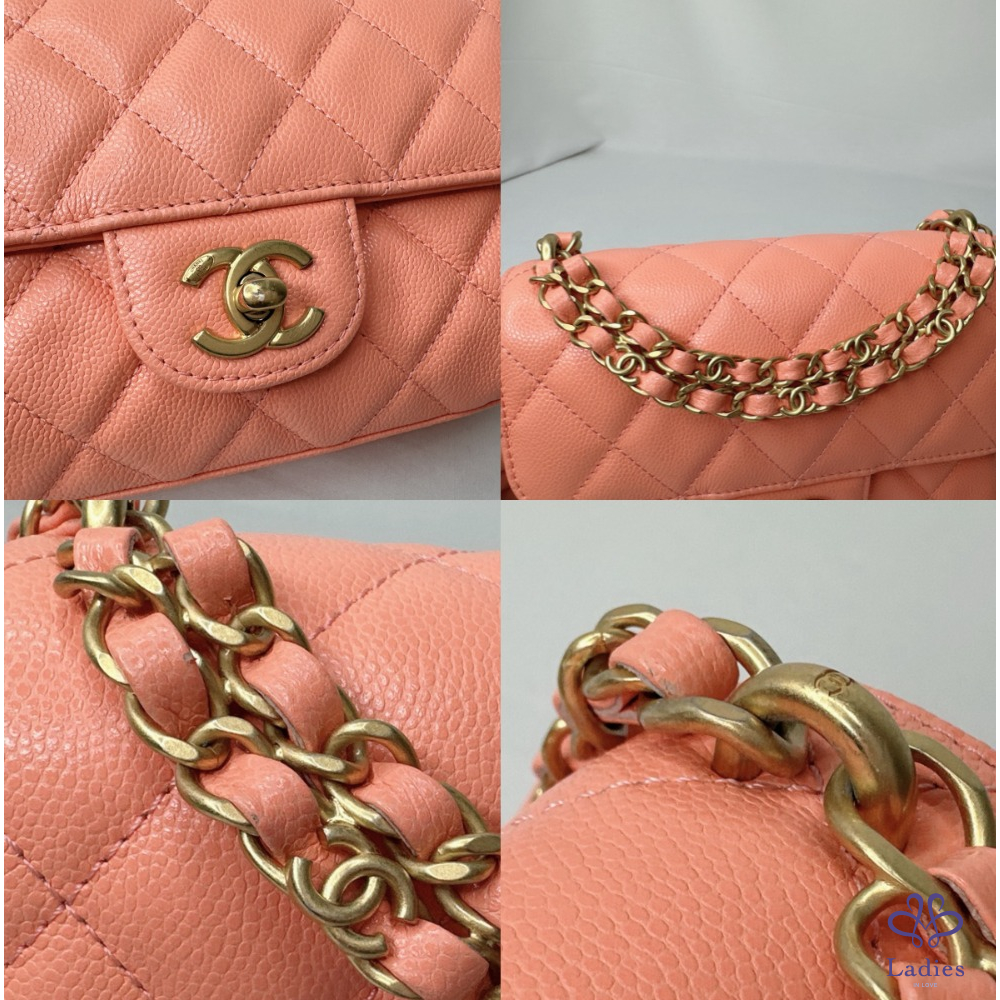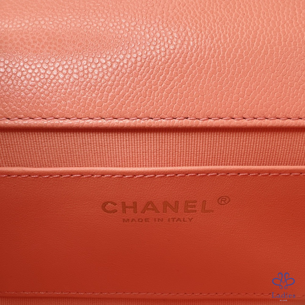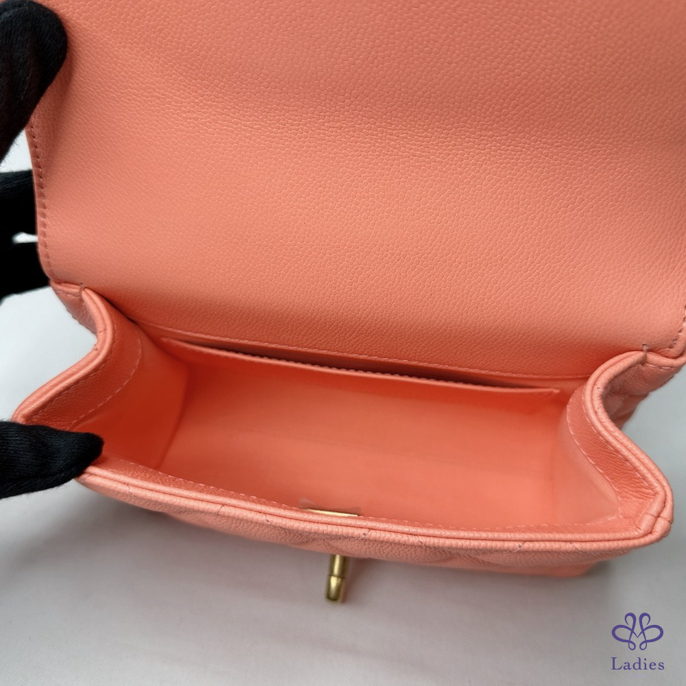 產品信息 【CHANEL 25P淡橘荔枝牛迷你口蓋包】 #專櫃價20萬 #2025春夏前系列 25p甜美雙鏈帶小香包~⛓️鏈帶+提把鏈 超美淡橘色,擁有好心情的夏日色首選 整體包況約9成7新,二手商品均有正常使用/存放痕跡 型號:AS5239 尺寸:18x13x6cm 附件:原廠盒、原廠防塵袋、羊毛氈 #B114041604