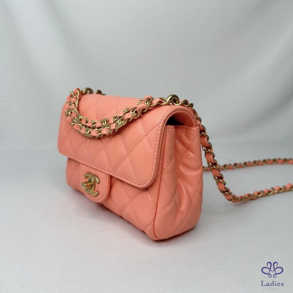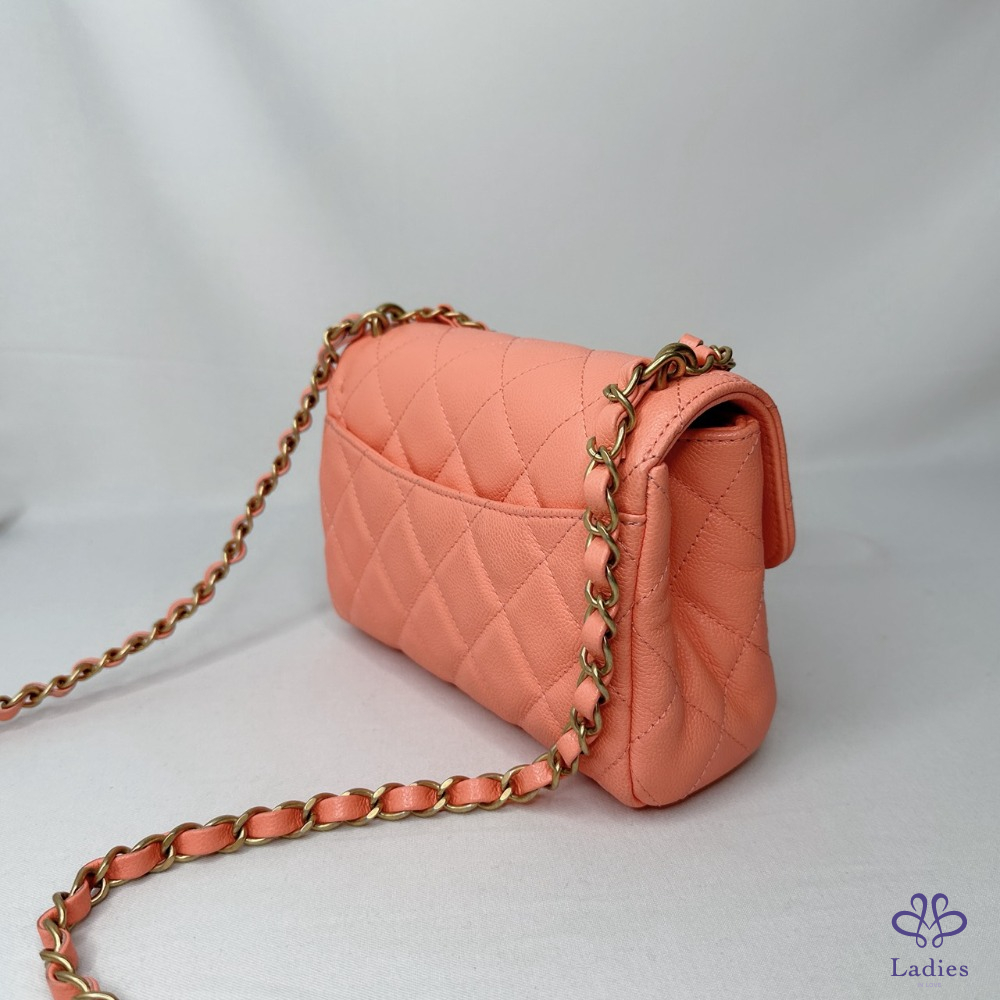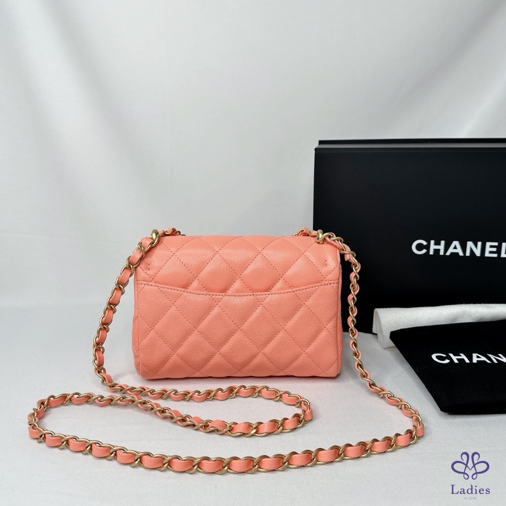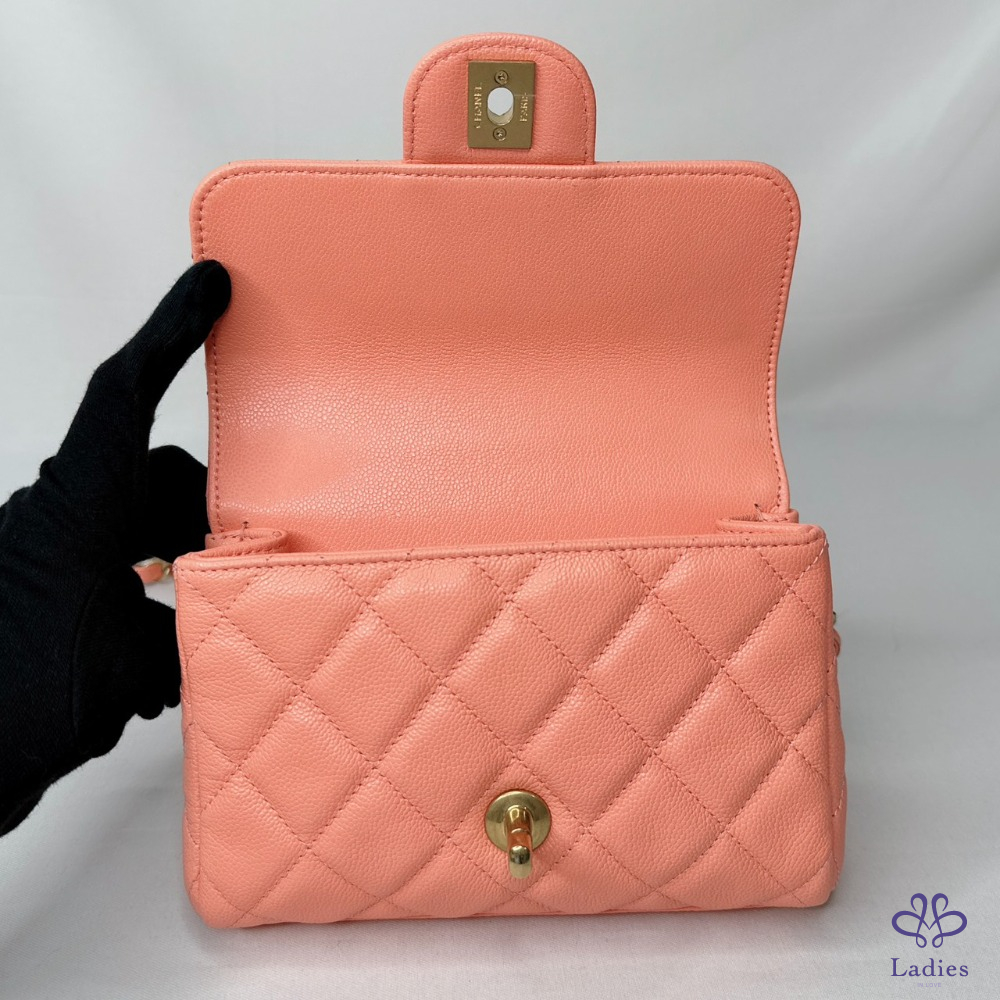 產品信息 【CHANEL 25P淡橘荔枝牛迷你口蓋包】 #專櫃價20萬 #2025春夏前系列 25p甜美雙鏈帶小香包~⛓️鏈帶+提把鏈 超美淡橘色,擁有好心情的夏日色首選 整體包況約9成7新,二手商品均有正常使用/存放痕跡 型號:AS5239 尺寸:18x13x6cm 附件:原廠盒、原廠防塵袋、羊毛氈 #B114041604