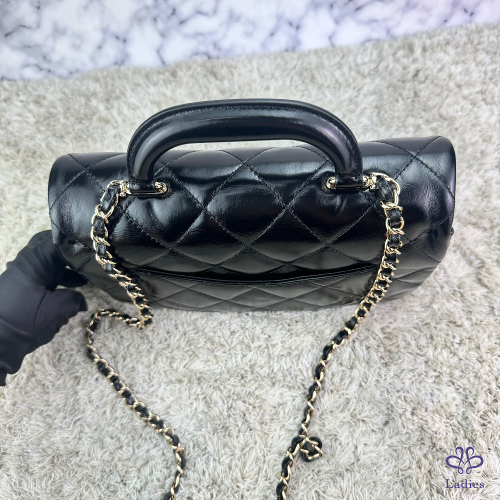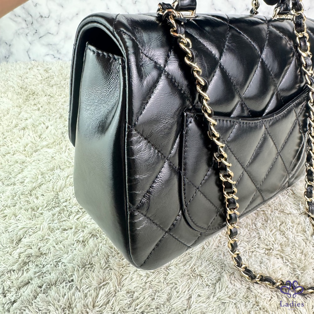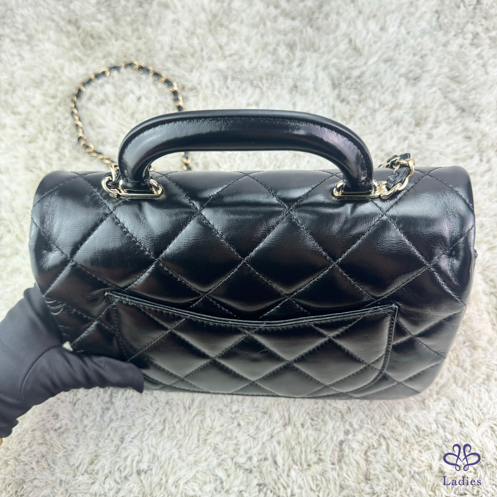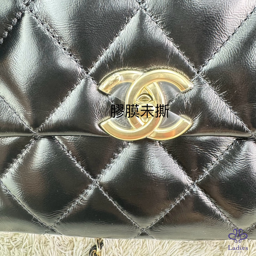 💖💖 香奈兒 Chanel 24C新款油蠟手柄方胖子 防刮羊皮黑金