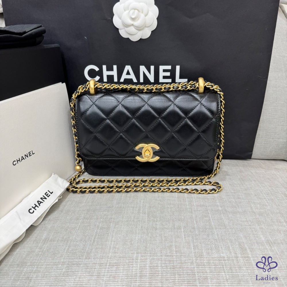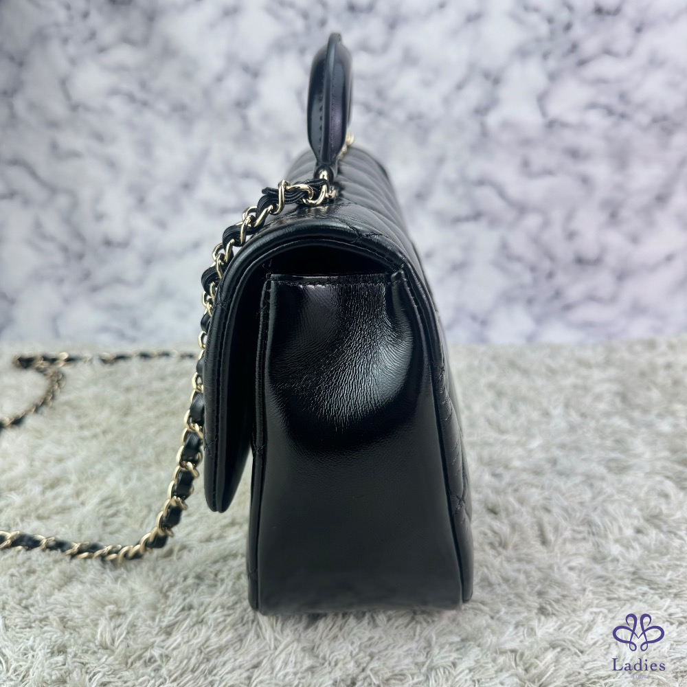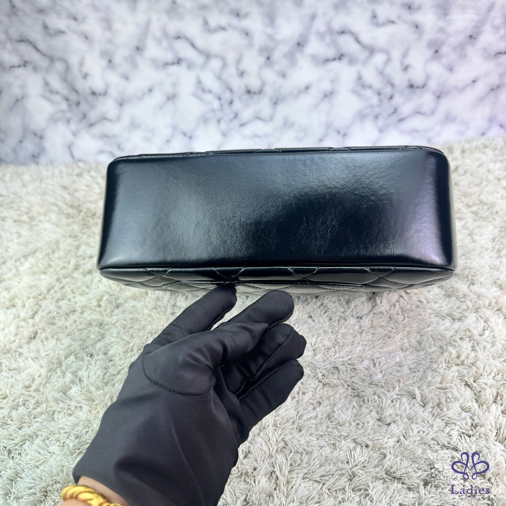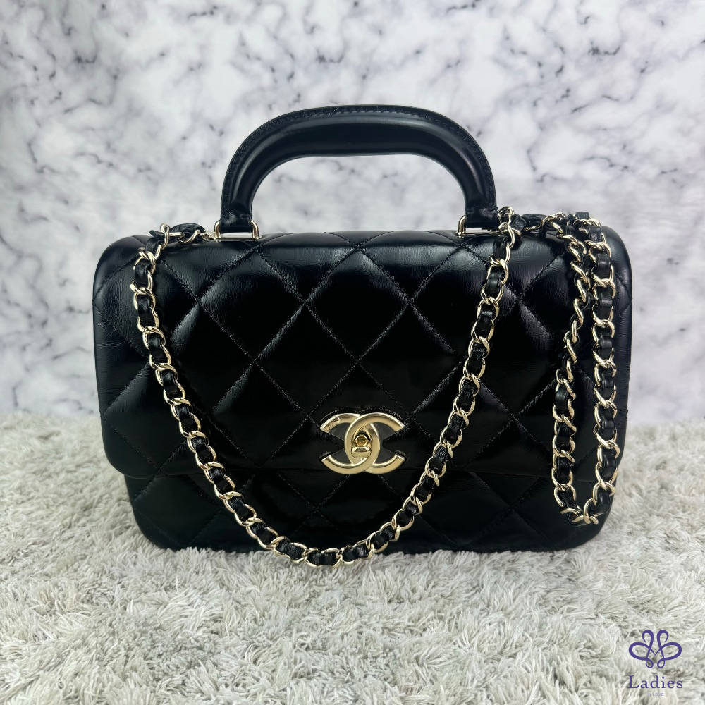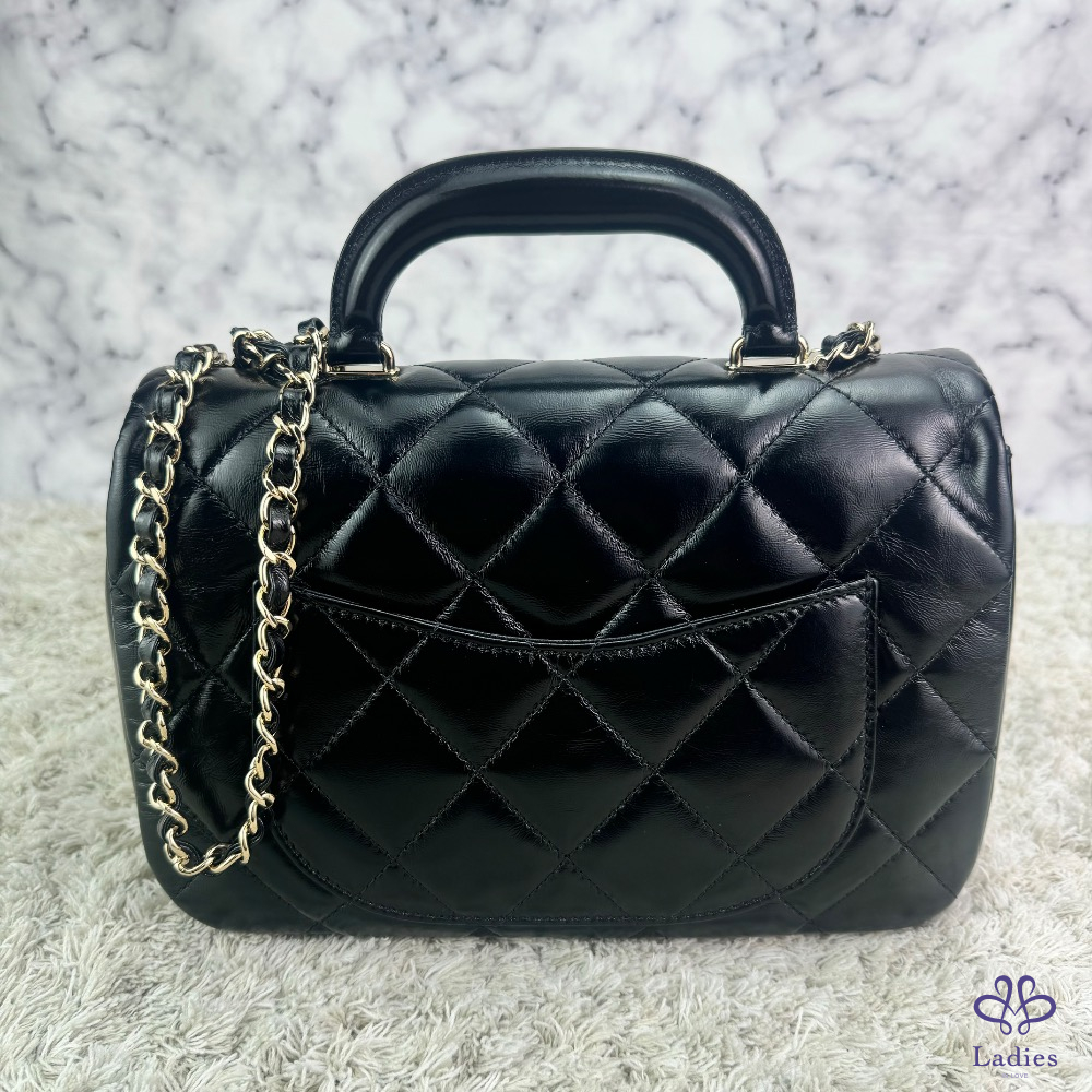 💖💖 香奈兒 Chanel 24C新款油蠟手柄方胖子 防刮羊皮黑金