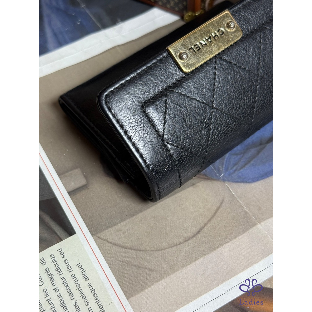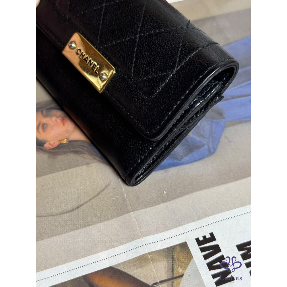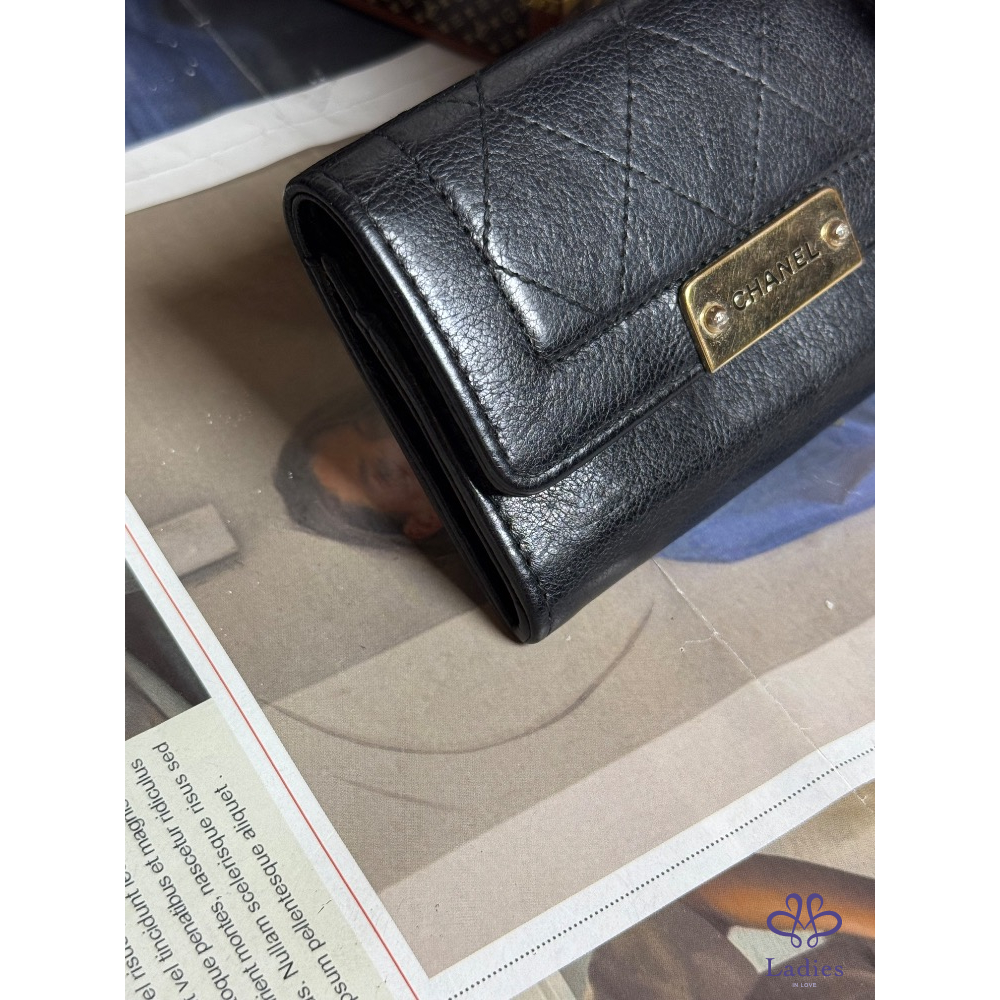 CHANEL香奈兒金屬鐵牌黑色卡夾零錢包