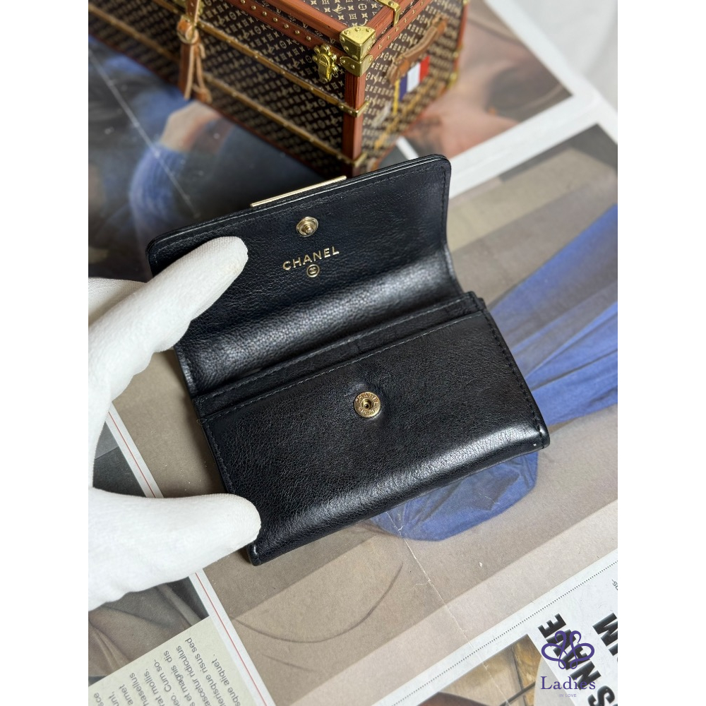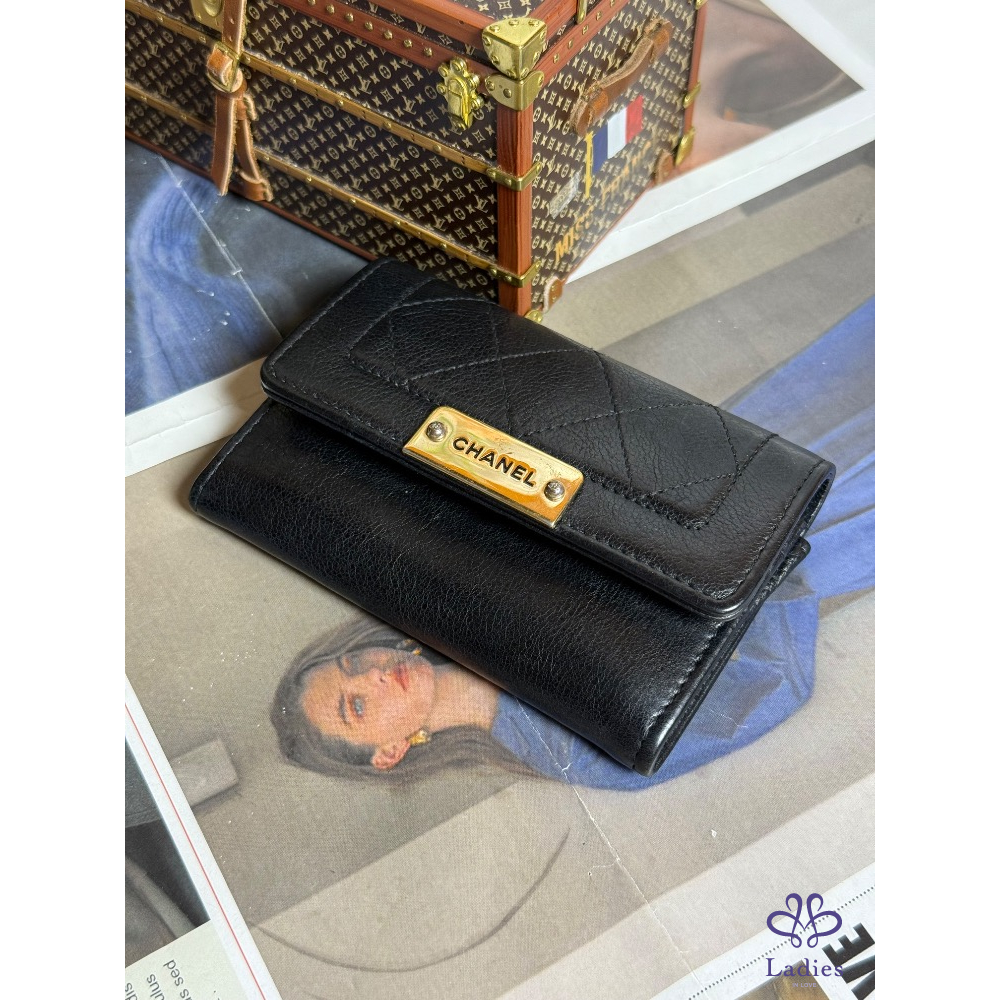 首頁 精品包包  CHANEL香奈兒金屬鐵牌黑色卡夾零錢包