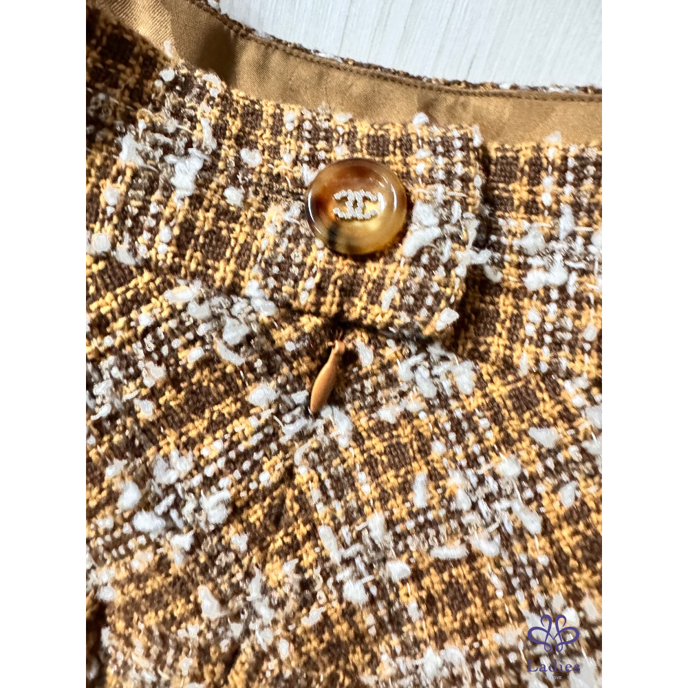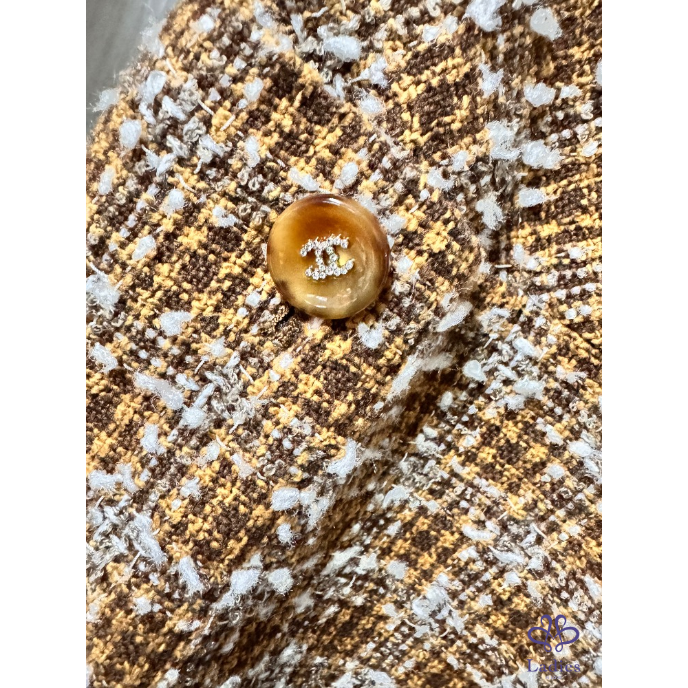 出自CHANEL珍稀工坊系列,嚴選品牌標誌性的金棕色斜紋毛呢,融合手工織線層次與立體紋理,觸感溫潤,極具收藏價值。