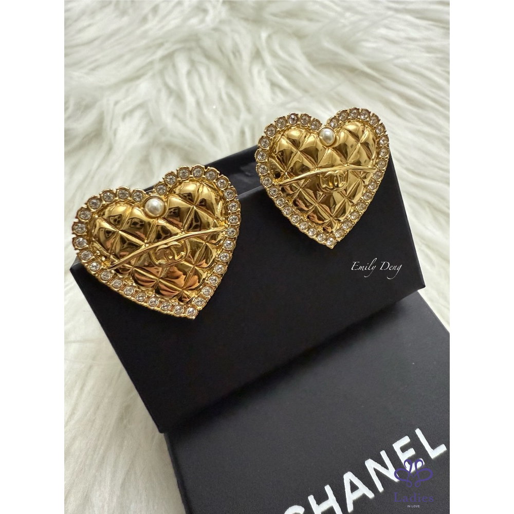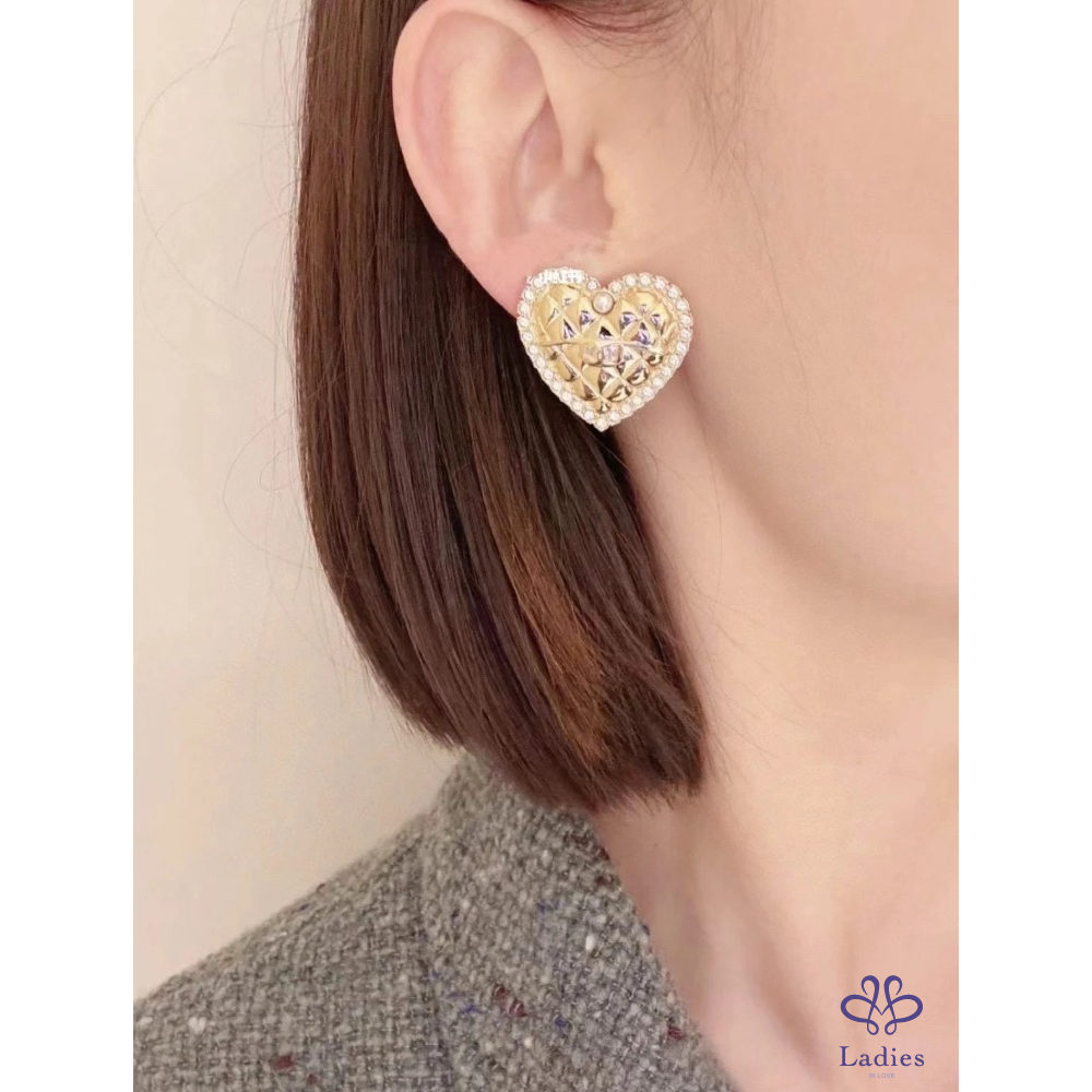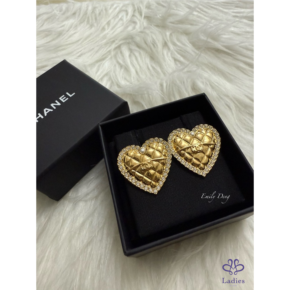 ❤️Chanel 手工坊菱格鑲鑽愛心耳環