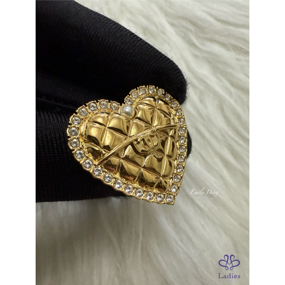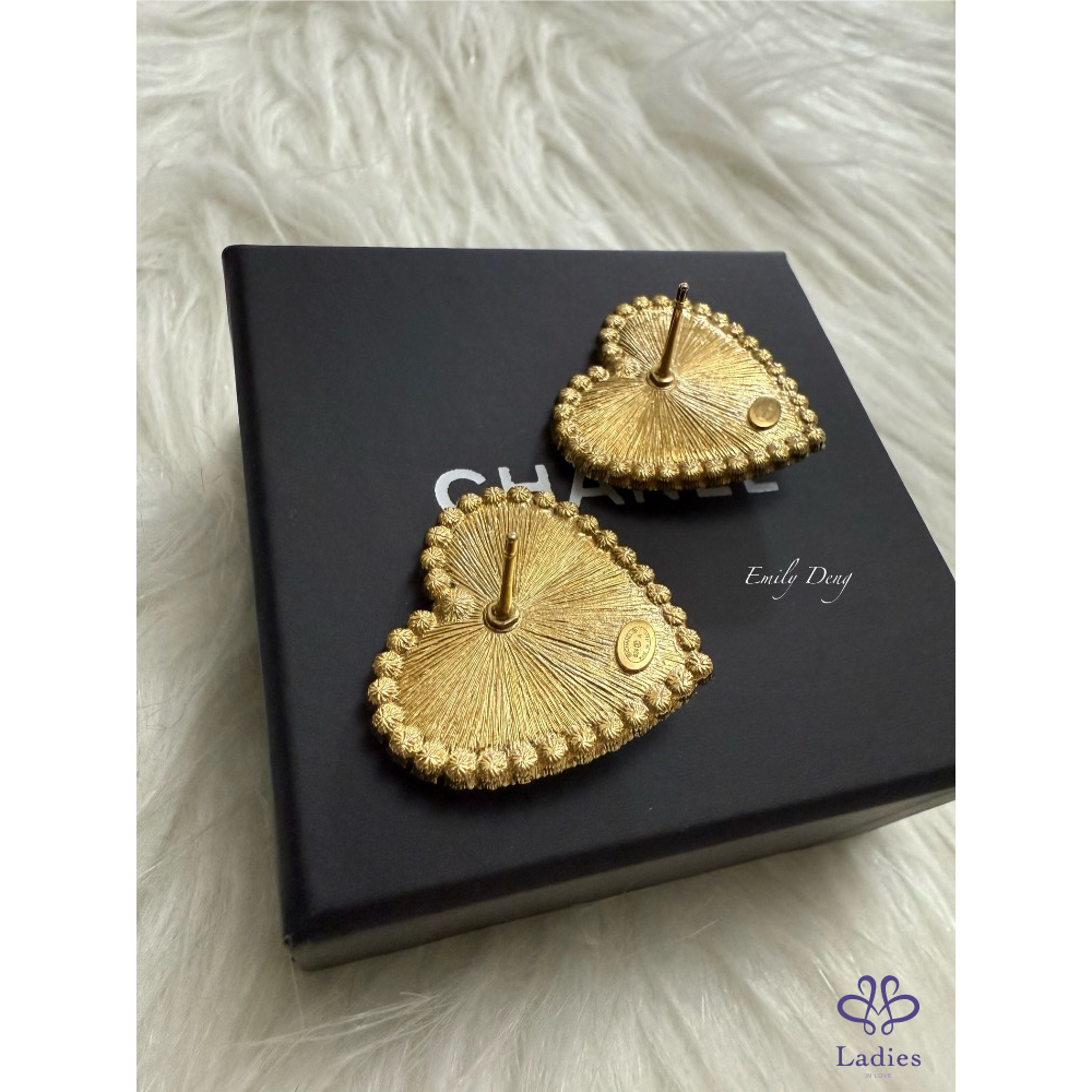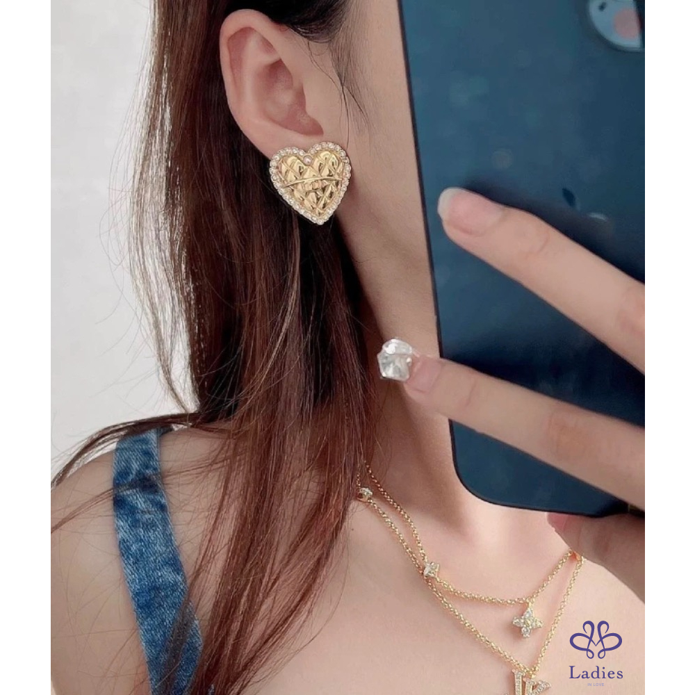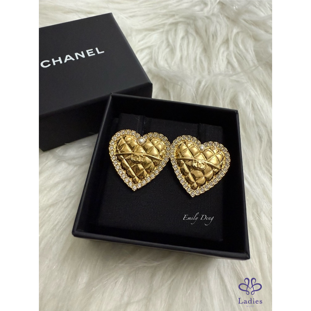 ❤️Chanel 手工坊菱格鑲鑽愛心耳環