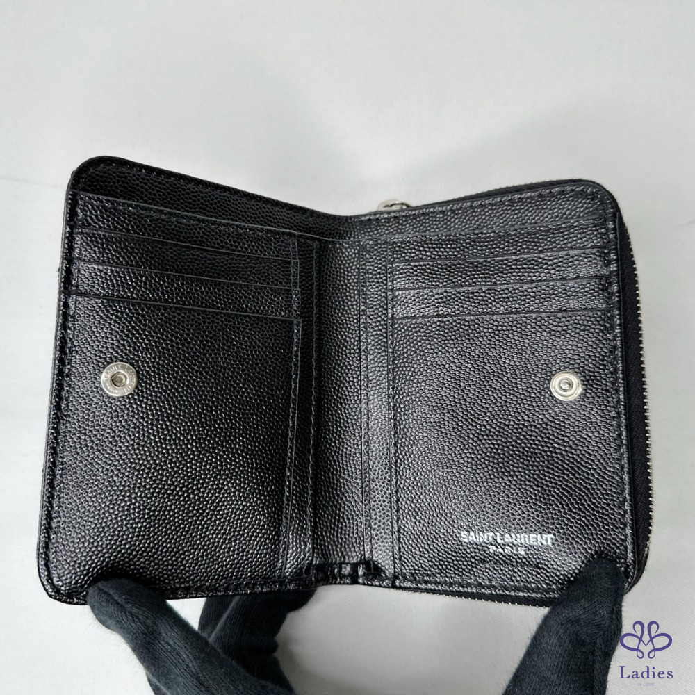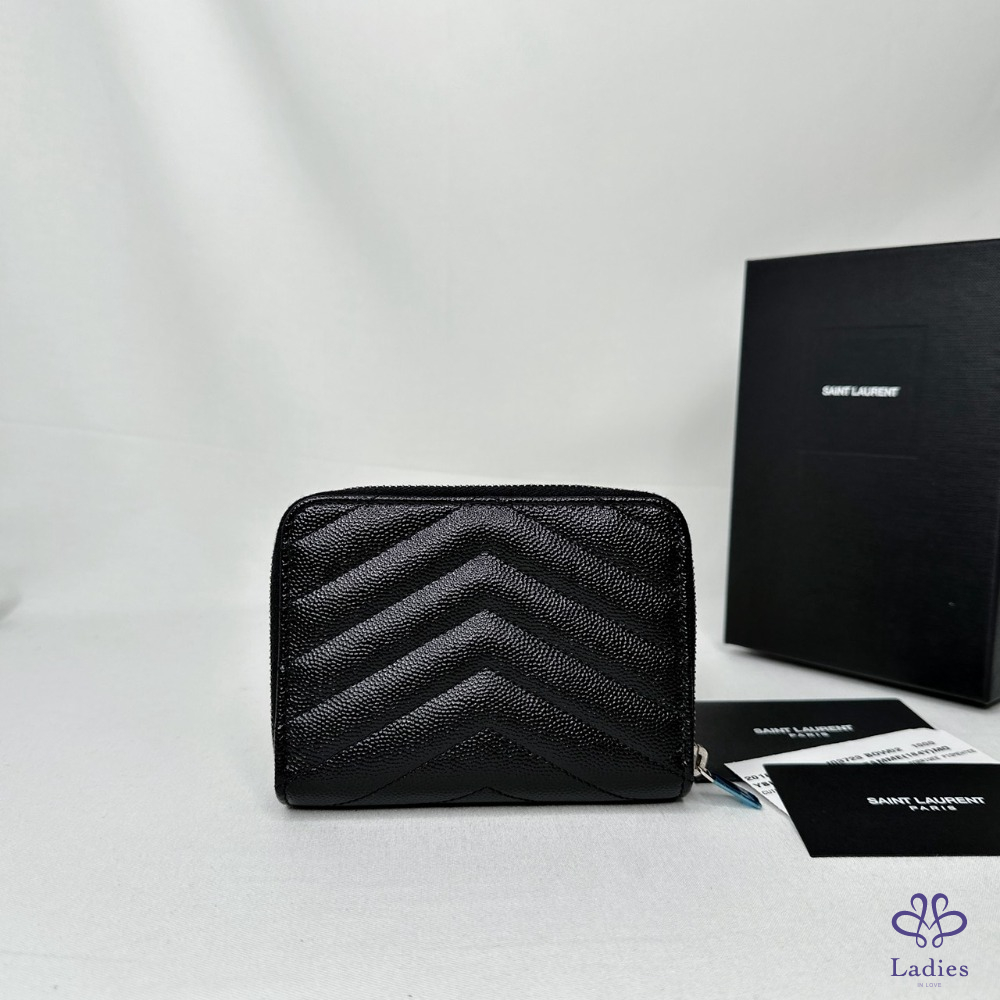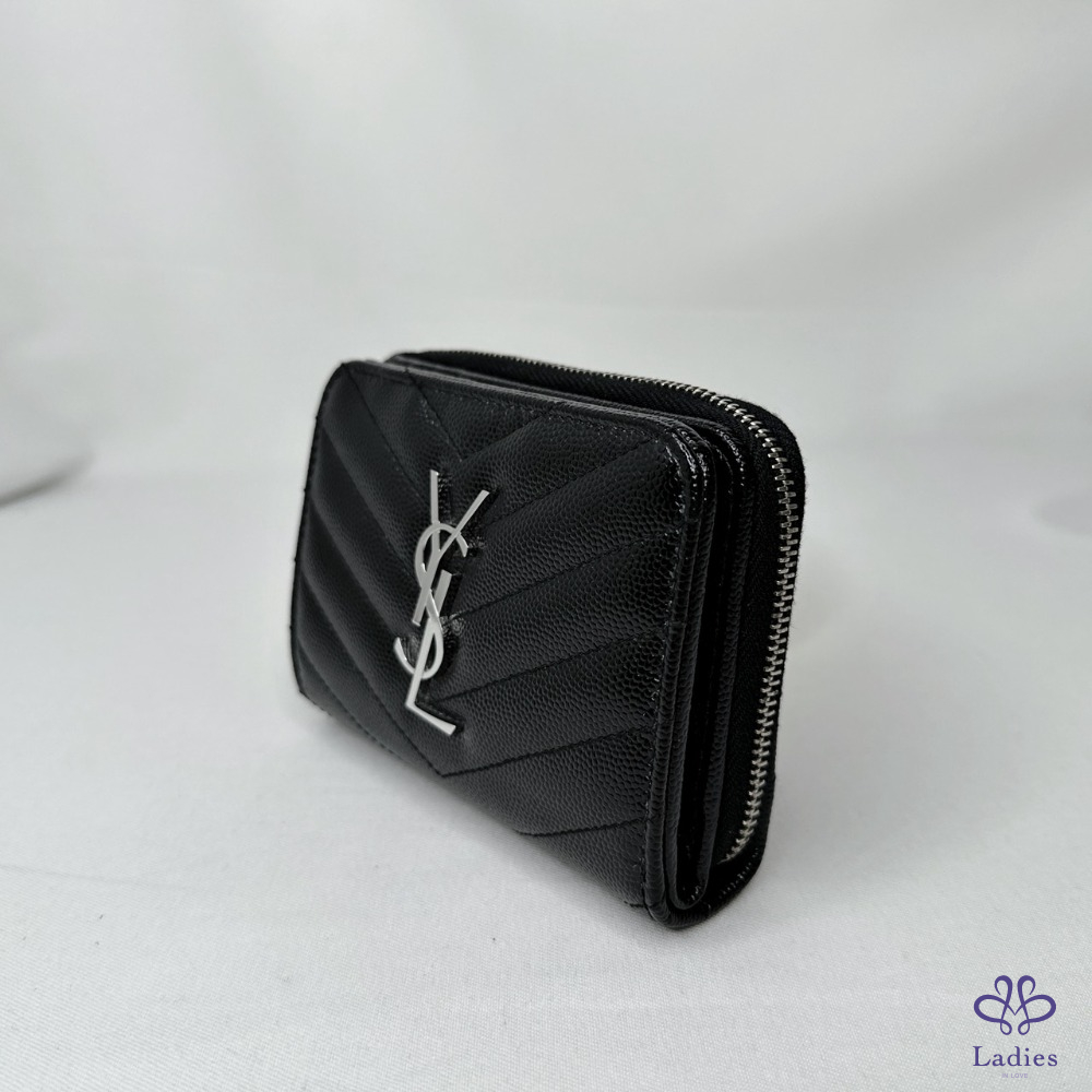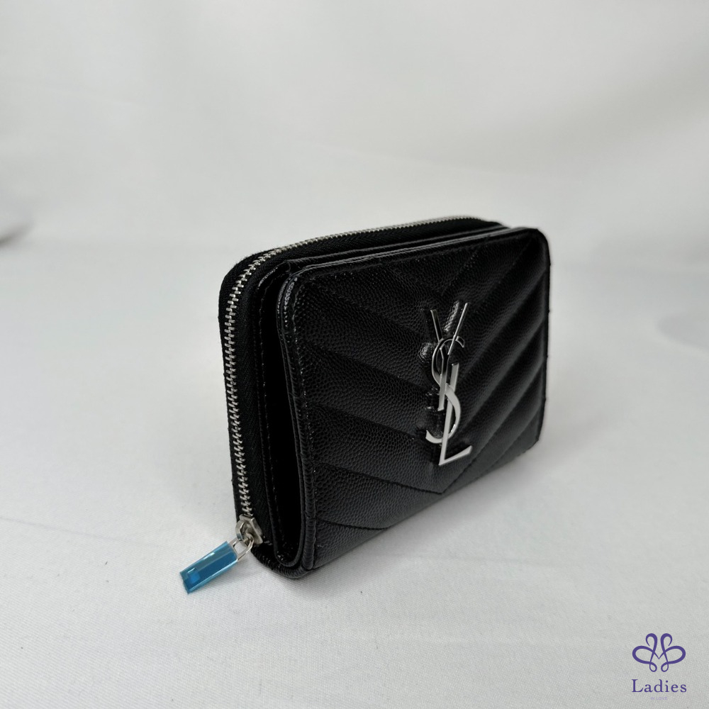 產品信息 【YSL 黑銀荔枝牛短夾】 #閒置未使用極新品 金屬LOGO與V字紋牛皮材質 對開釦式,內有6卡夾層/1鈔票夾/4貼袋/1拉鍊零錢袋 多夾層可供收納,高雅單品,美觀實用 整體包況約9成8新,二手商品均有正常使用/存放痕跡 型號:403723 尺寸:12x10x3cm 附件:原廠盒、說明書 #A112102001