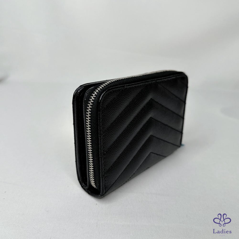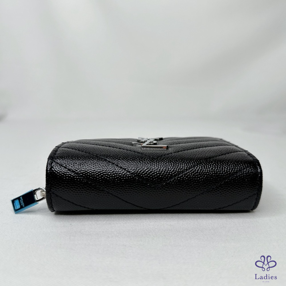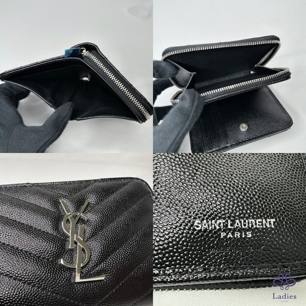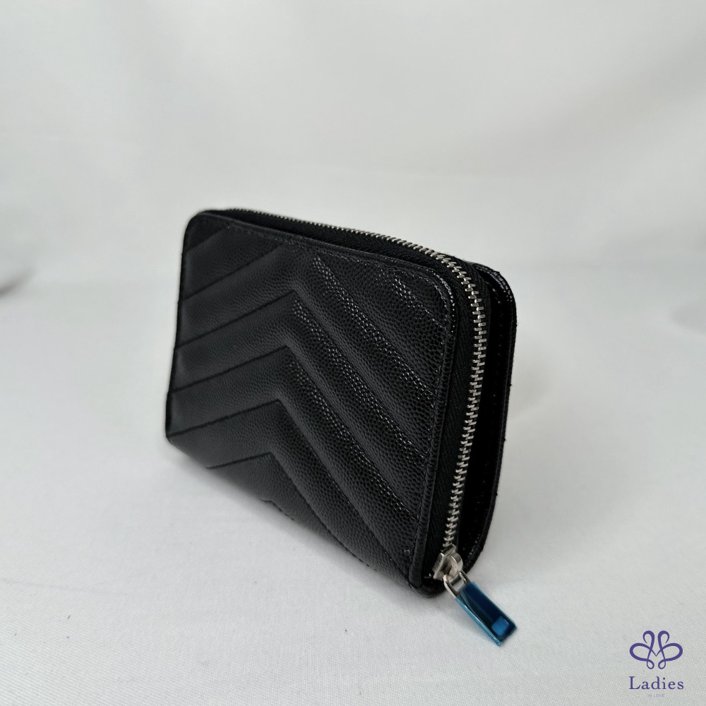 產品信息 【YSL 黑銀荔枝牛短夾】 #閒置未使用極新品 金屬LOGO與V字紋牛皮材質 對開釦式,內有6卡夾層/1鈔票夾/4貼袋/1拉鍊零錢袋 多夾層可供收納,高雅單品,美觀實用 整體包況約9成8新,二手商品均有正常使用/存放痕跡 型號:403723 尺寸:12x10x3cm 附件:原廠盒、說明書 #A112102001