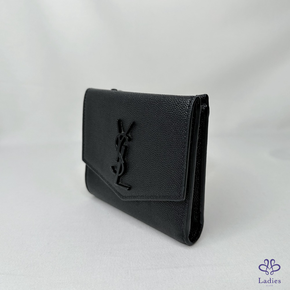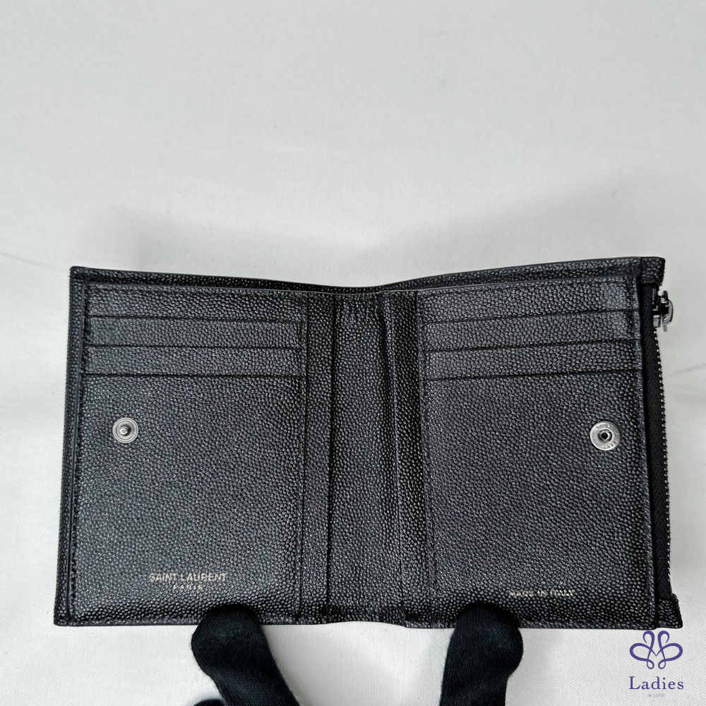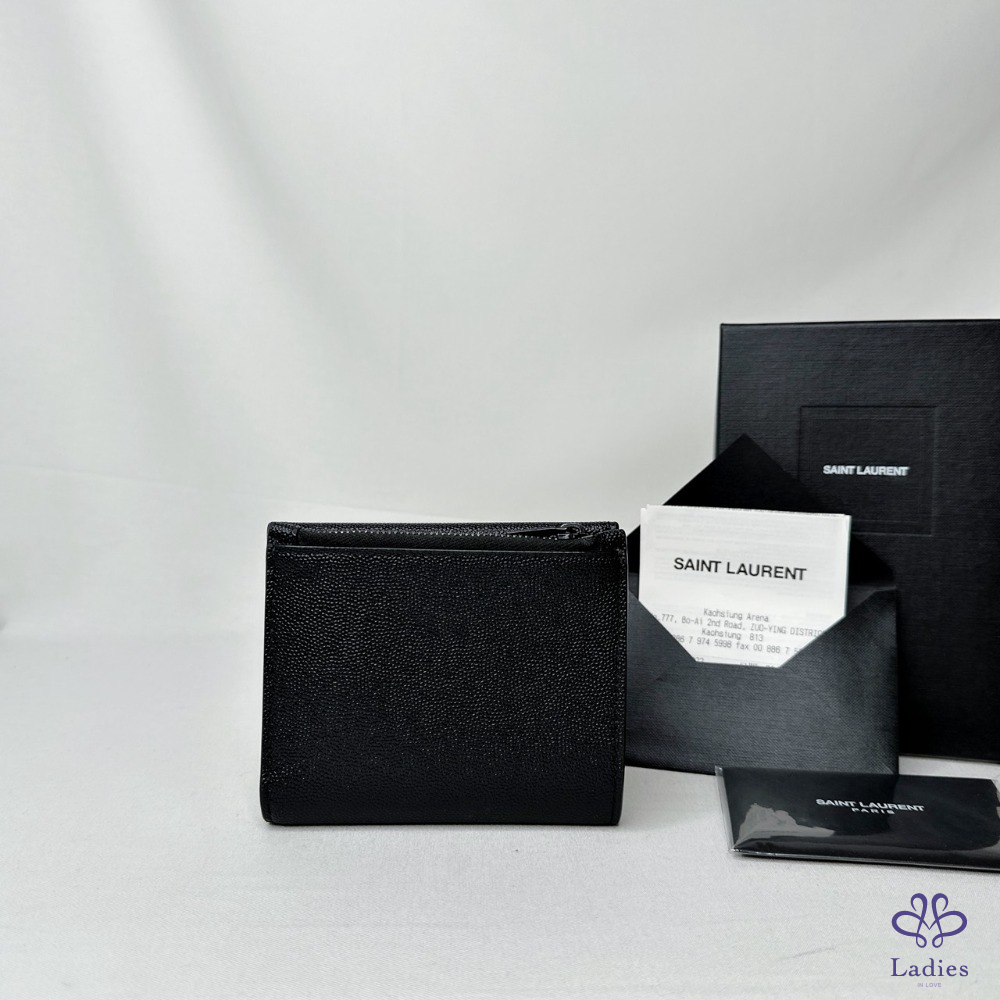 產品信息 【YSL Uptown粒面皮革短夾】 #SoBlack 飾以啞光黑色YSL字母 按扣開合,內有6卡夾層/4貼袋/1鈔票層/1拉鍊零錢袋/1扣式貼袋 整體包況約9成新,二手商品均有正常使用/存放痕跡 型號:582296 尺寸:12x10x3cm 附件:原廠盒、台灣購證(去個資)、說明書 #A112102506