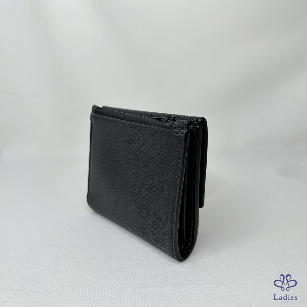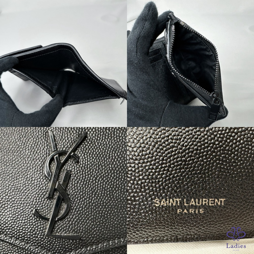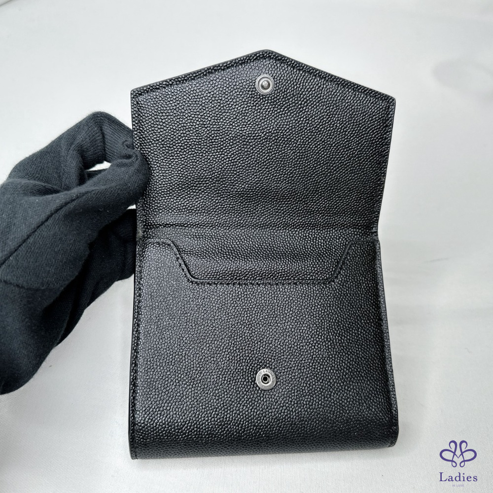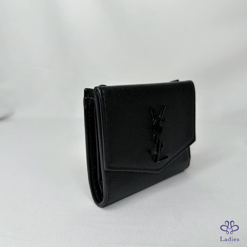 產品信息 【YSL Uptown粒面皮革短夾】 #SoBlack 飾以啞光黑色YSL字母 按扣開合,內有6卡夾層/4貼袋/1鈔票層/1拉鍊零錢袋/1扣式貼袋 整體包況約9成新,二手商品均有正常使用/存放痕跡 型號:582296 尺寸:12x10x3cm 附件:原廠盒、台灣購證(去個資)、說明書 #A112102506
