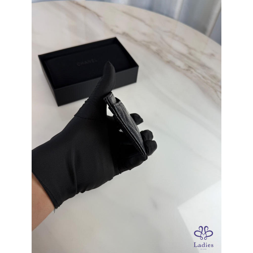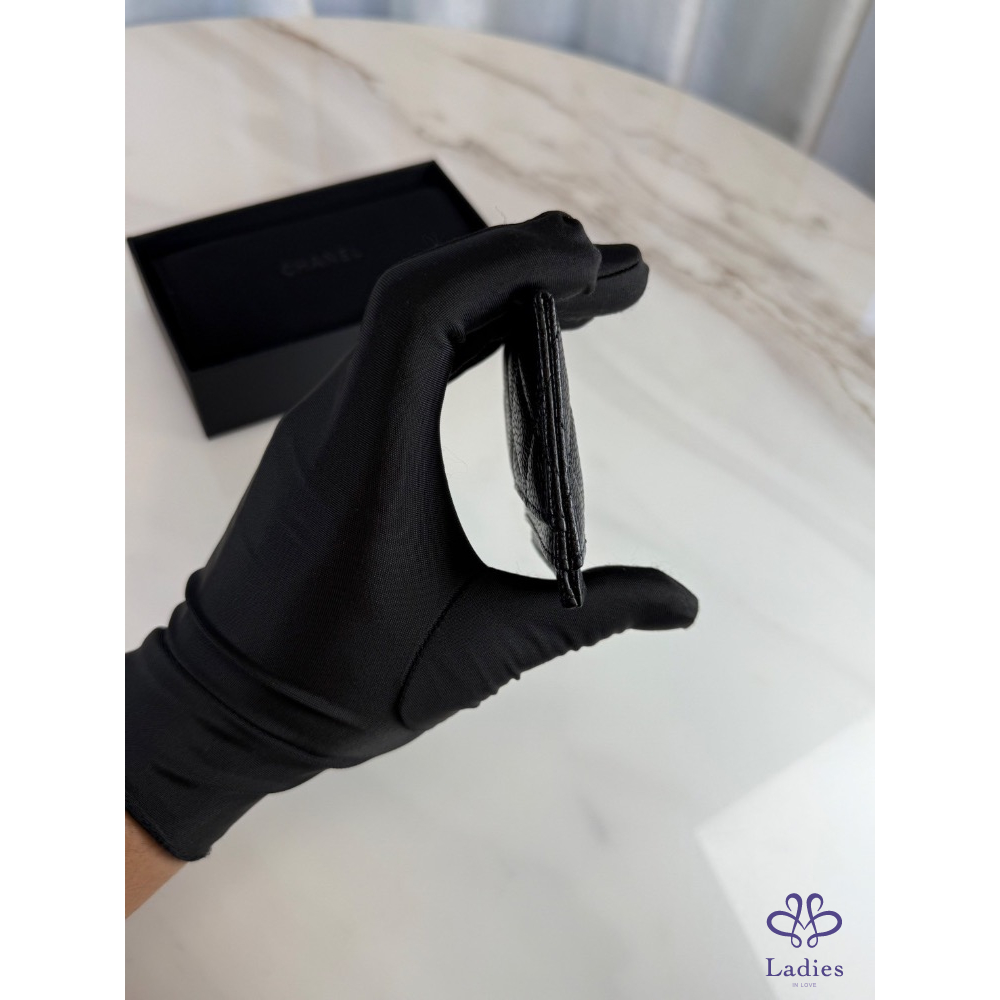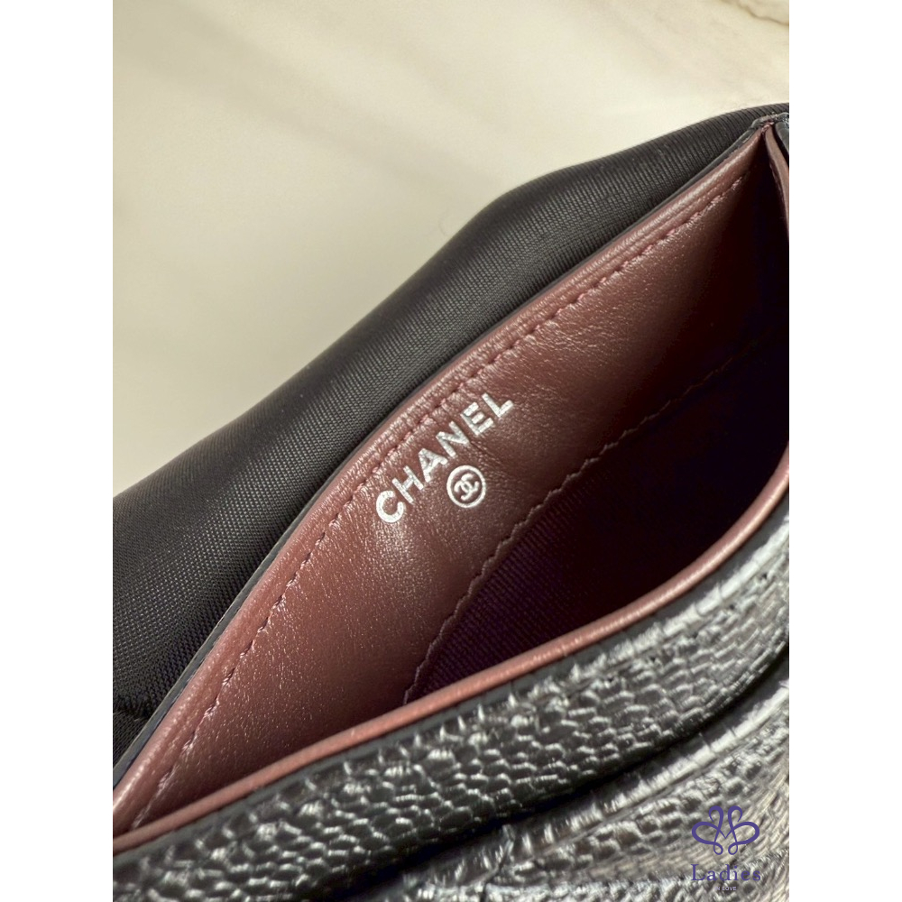 Chanel 卡夾 黑銀荔枝牛 芯片款 全新未使用 膠膜未撕