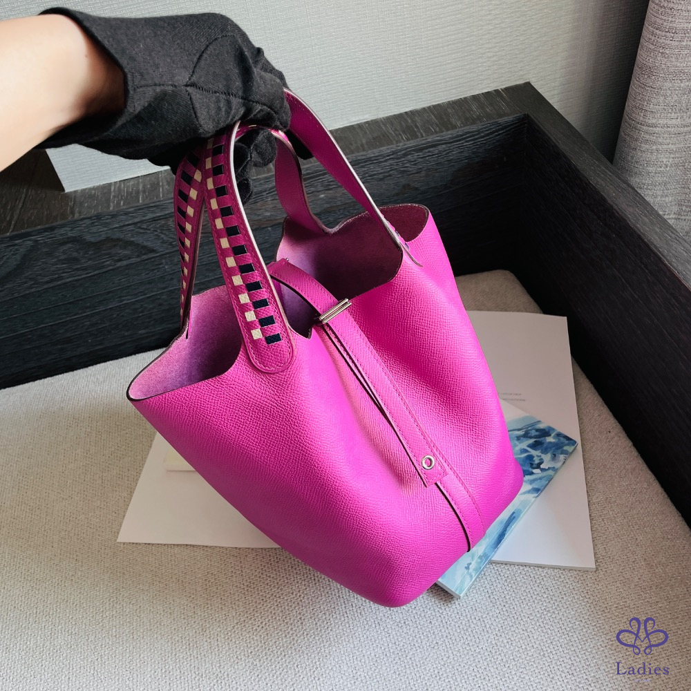 Hermès Picotin 18玉蘭粉銀釦編織提把