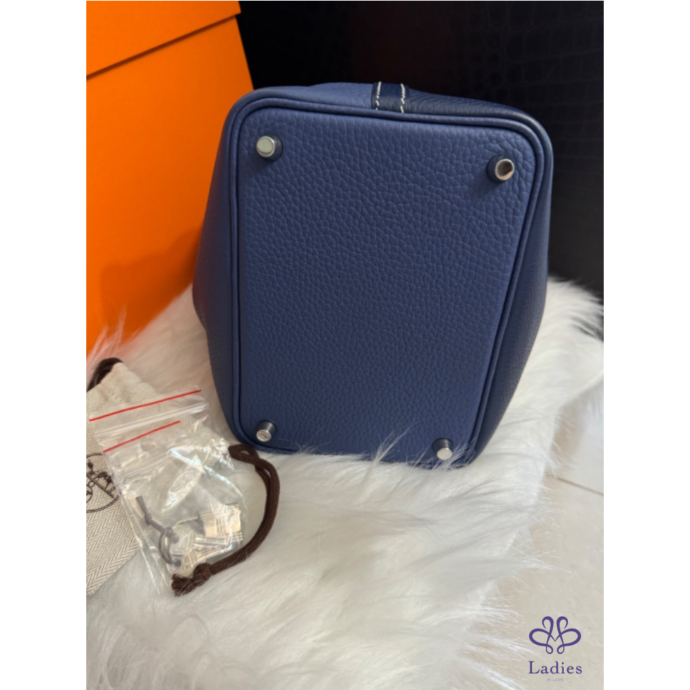 產品信息 它團同步 A2460 #bi在寵愛 愛馬仕菜藍拼色走白線 好像是寶石藍加明藍。超級好搭配 牛仔褲休閒。底部有用到不影響使用。可以自己買個內膽包 🐳售89500含運 ▫️狀況:9新 ▫️尺寸:18 ▫️顏色:藍拼白線 ▫️購處:台灣專櫃 ▫️附件:原廠盒子.印本購證 ♦沒禮貌、高標勿擾 ♦禁棄標/無金錢自主權勿喊 ♦得標請48小時內完成匯款 ♦台北可面交