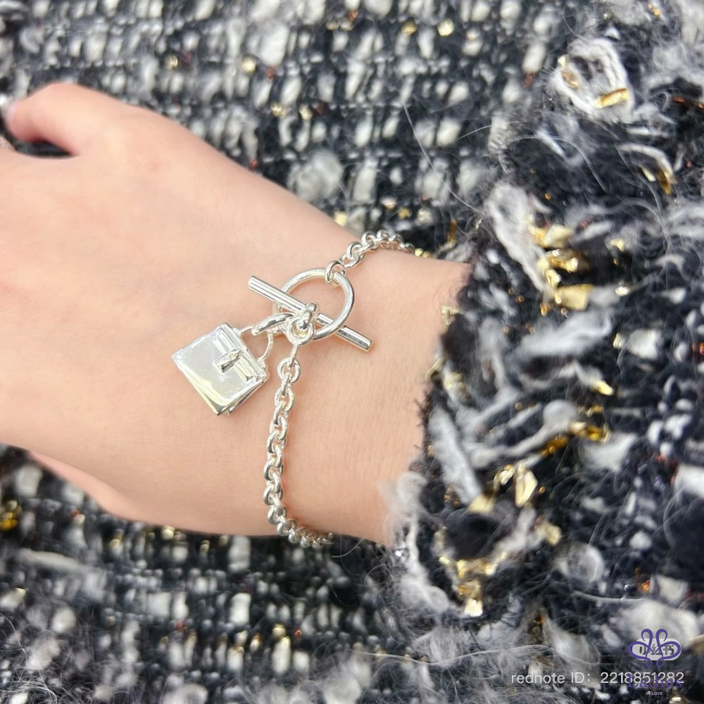 將經典 Kelly 鎖化為精緻小巧的手鍊吊飾,以925純銀打造,低調中散發優雅光芒。簡約卻充滿辨識度,是日常穿搭中的質感亮點