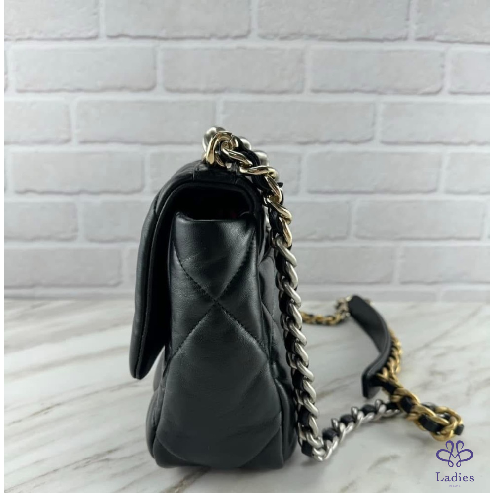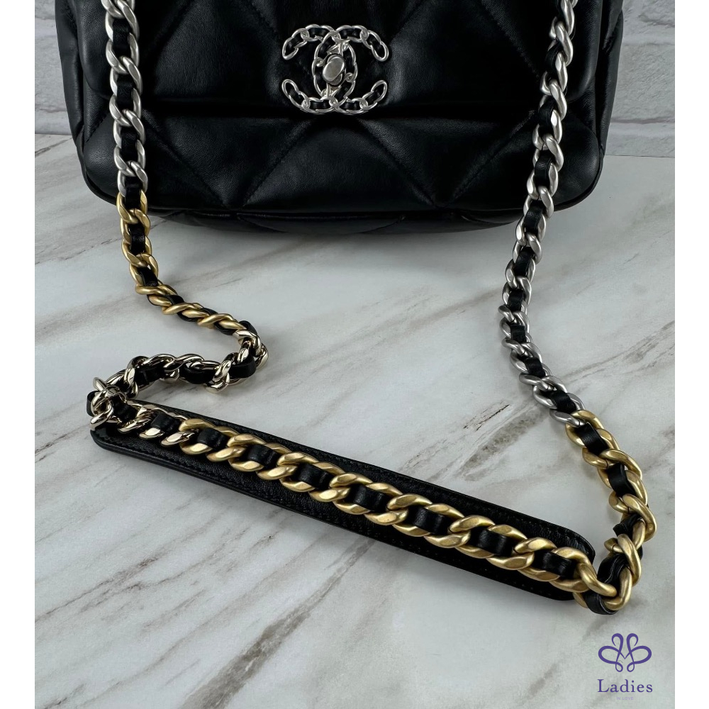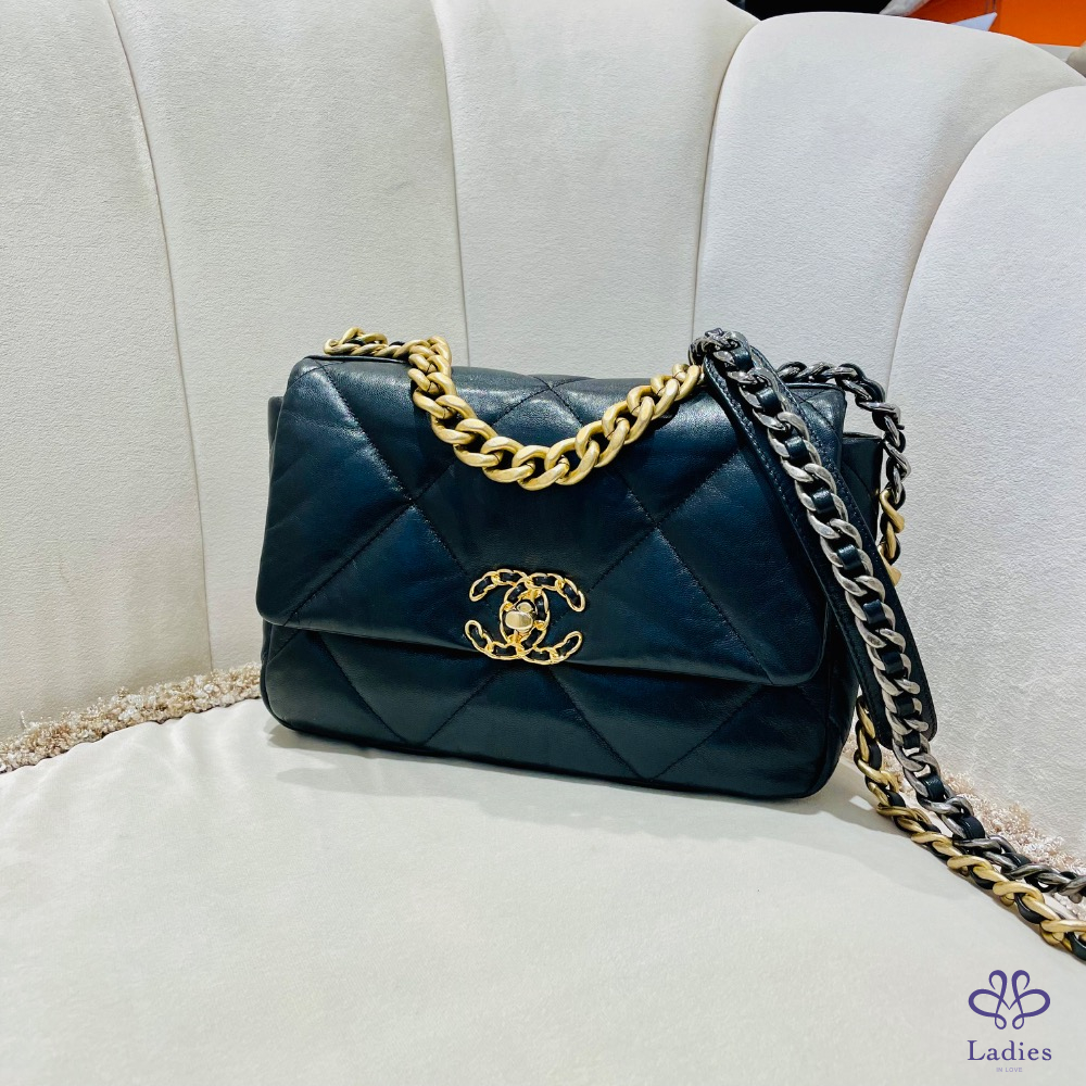 19 Bag 是小香經典元素的結合,經典的三色鏈條搭配被眾人稱之為神仙搭配, 時尚隨性,吸睛無數的皮穿鍊雙C Logo鎖扣,飽滿蓬鬆的大菱格