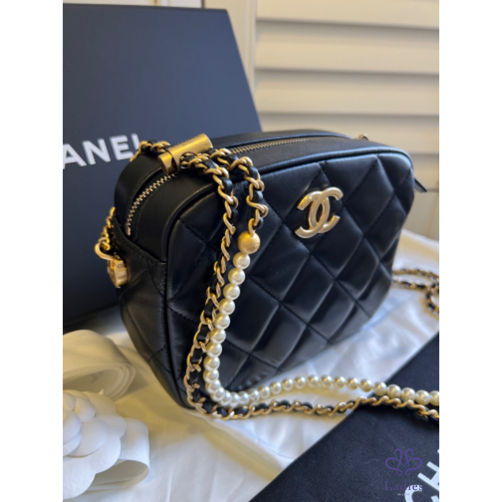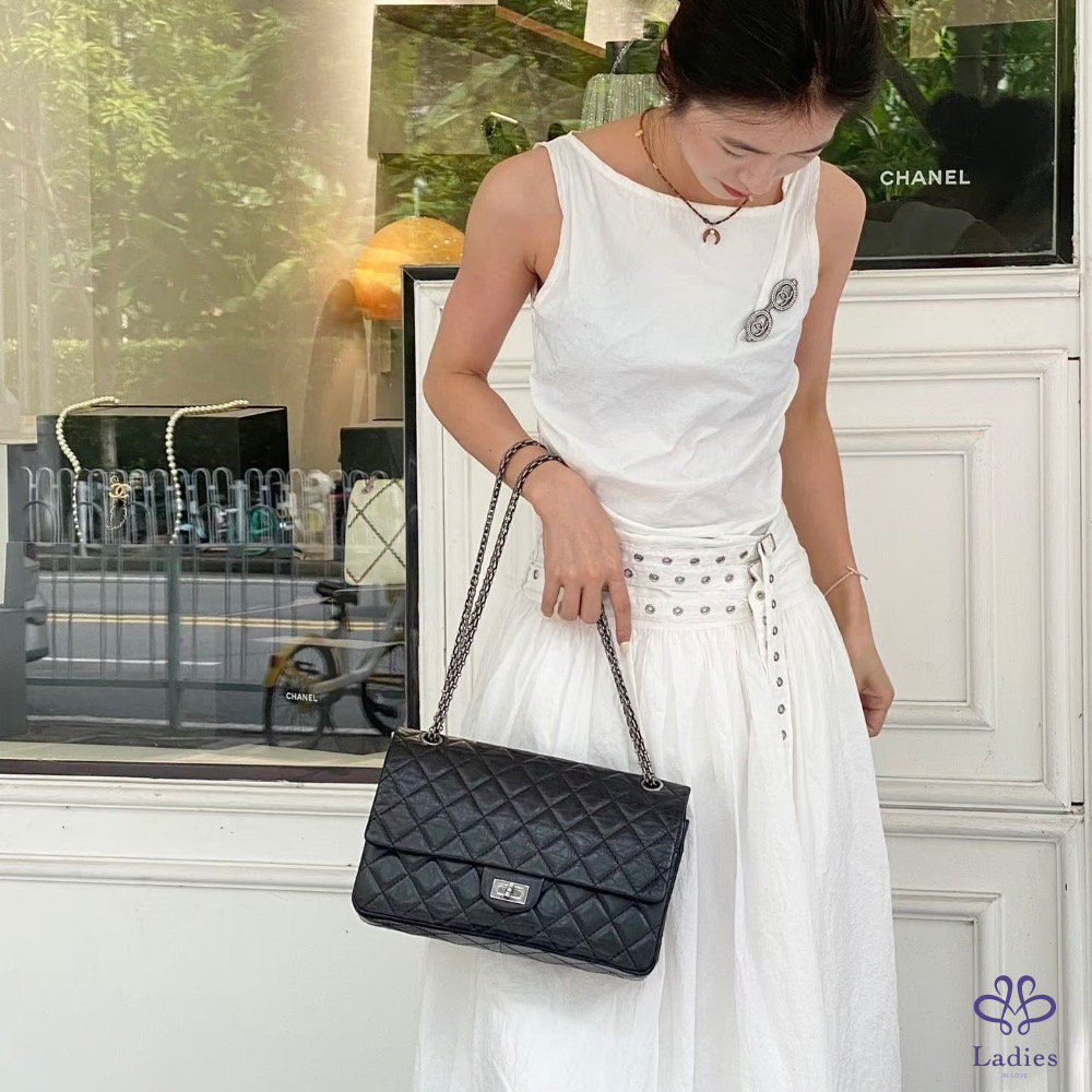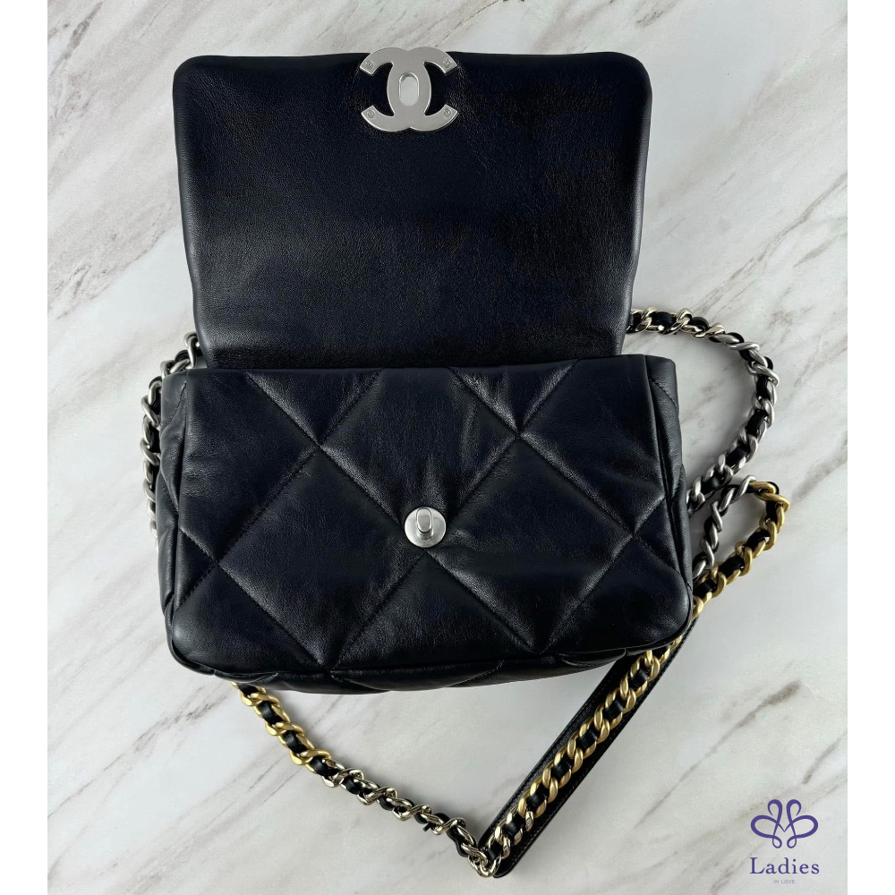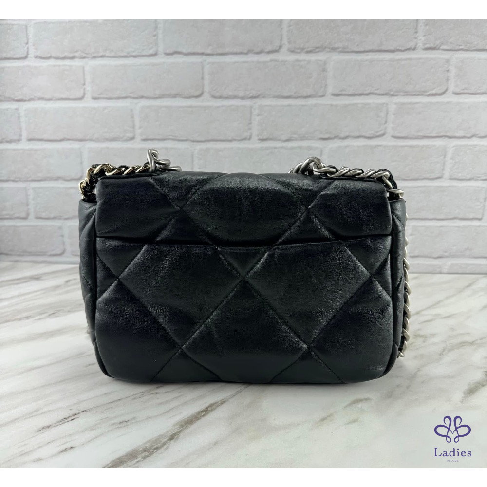 19 Bag 是小香經典元素的結合,經典的三色鏈條搭配被眾人稱之為神仙搭配, 時尚隨性,吸睛無數的皮穿鍊雙C Logo鎖扣,飽滿蓬鬆的大菱格