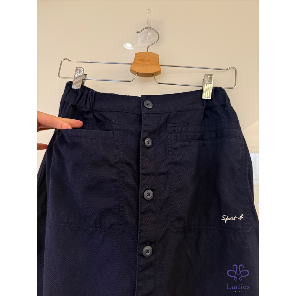 產品信息 Sport b.棉質斜紋布排釦長裙(深藍色) 95新 🎉售1580元含运 38码/平量腰32-42 臀52 全长82cm 腰侧有松紧 M-L可穿 品牌logo扣 有口袋 原价约6000元 它團同步