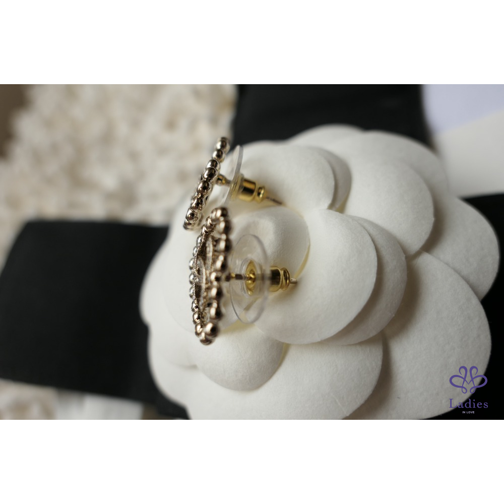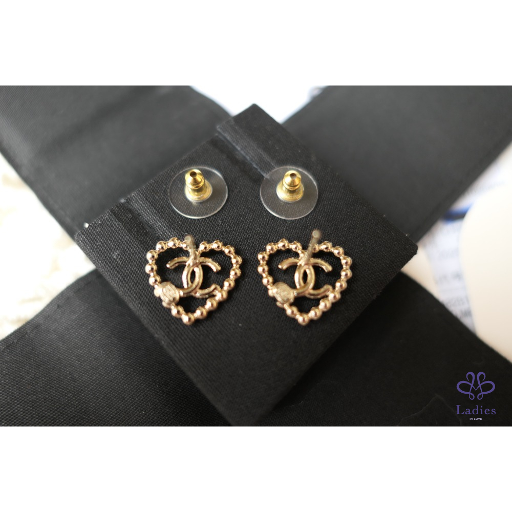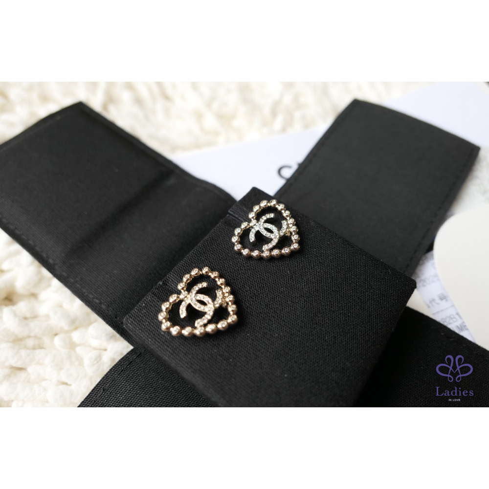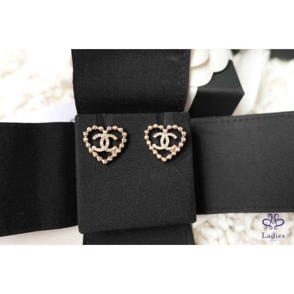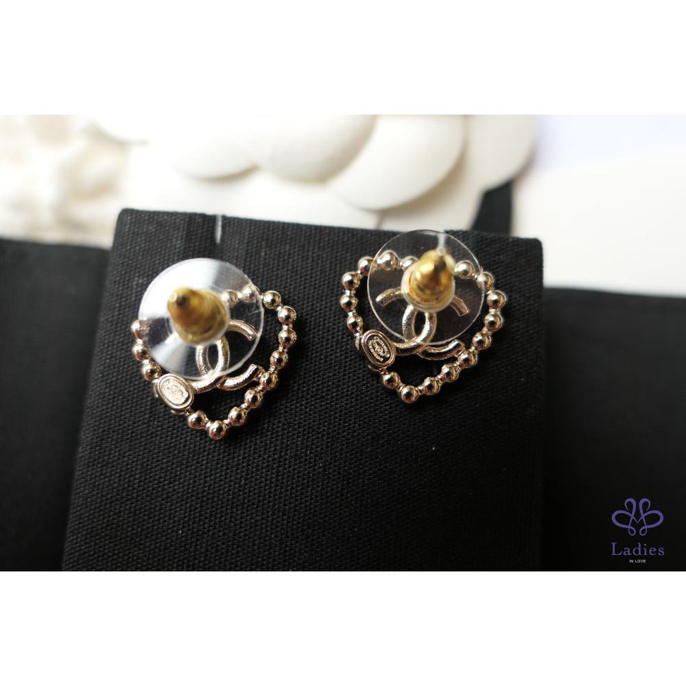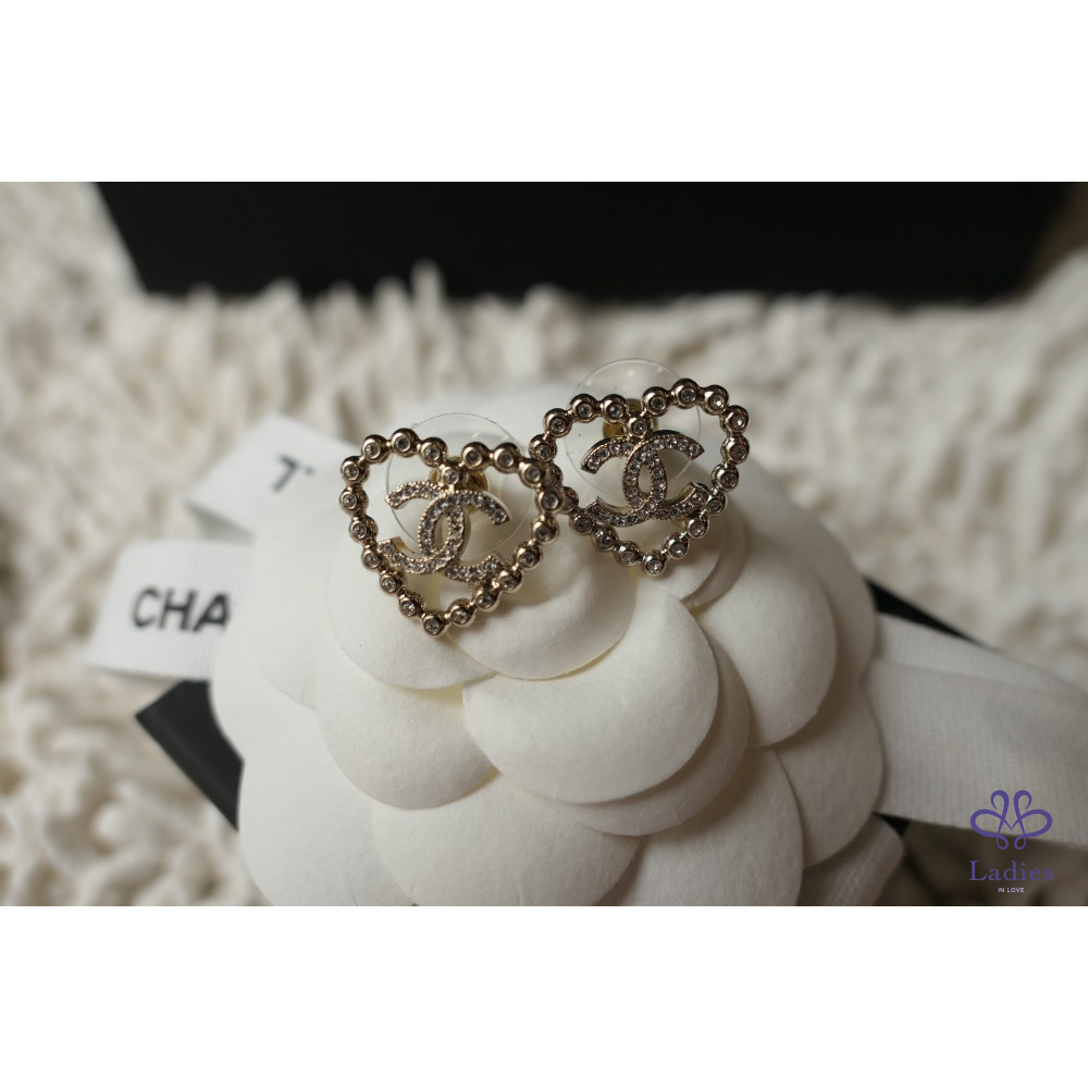 CHANEL 25P 淡金水鑽愛心簍空耳環