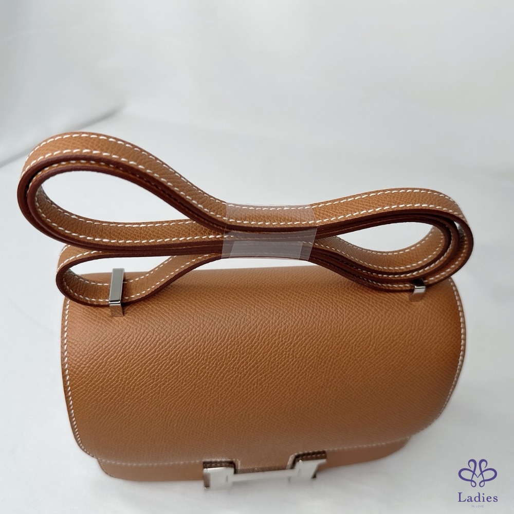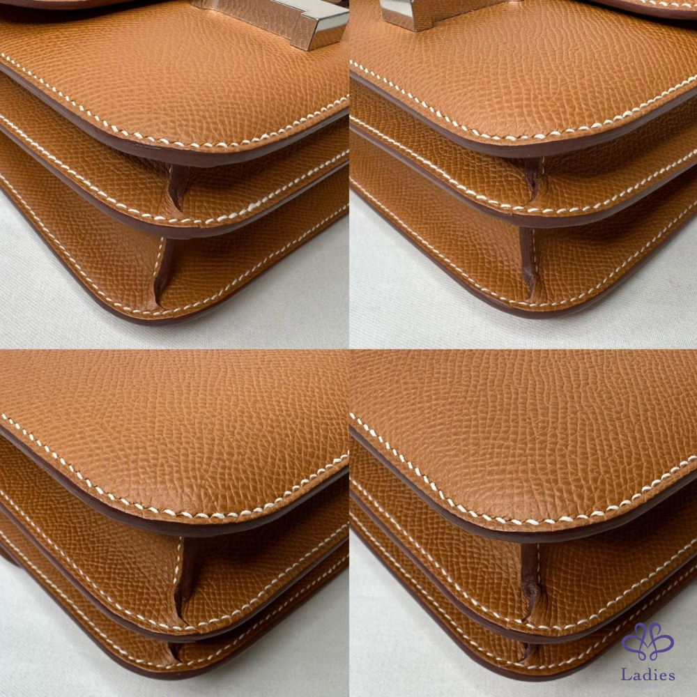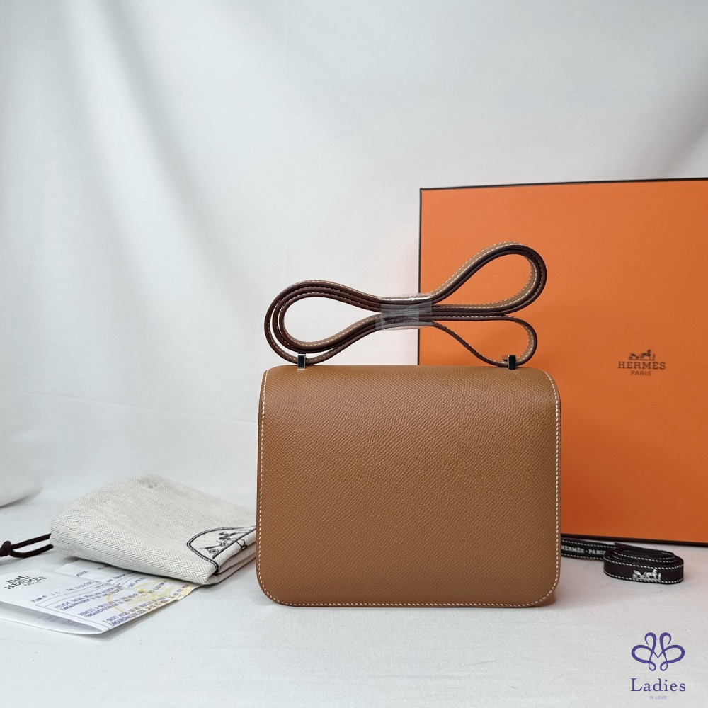 產品信息 【HERMES CONSTANCE金棕銀康康 19】 #B刻37金棕銀釦 #Epsom皮革 #金屬處皆有後貼膜 非常防刮耐操的Epsom好整理好照顧,皮革軟硬適中 搭配H銀釦超有質感 妥妥出鏡率NO.1🎶🎶 #不用櫃上配到飽就可輕鬆入手 整體包況約9成7新,二手商品均有正常使用/存放痕跡 尺寸:19x15x5cm 附件:原廠盒、原廠防塵袋、國外購證(去個資)、羊毛氈、緞帶 #A114051202