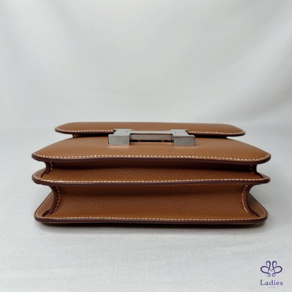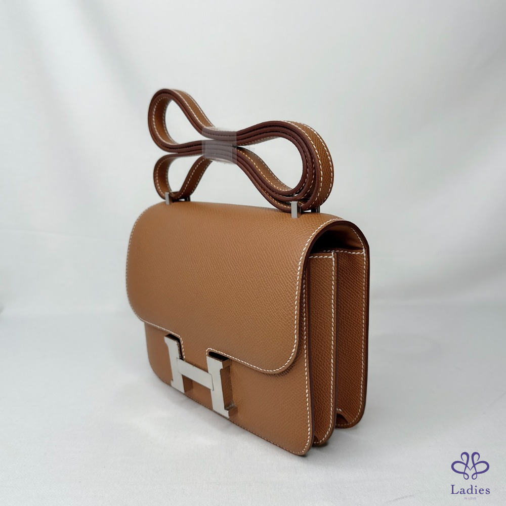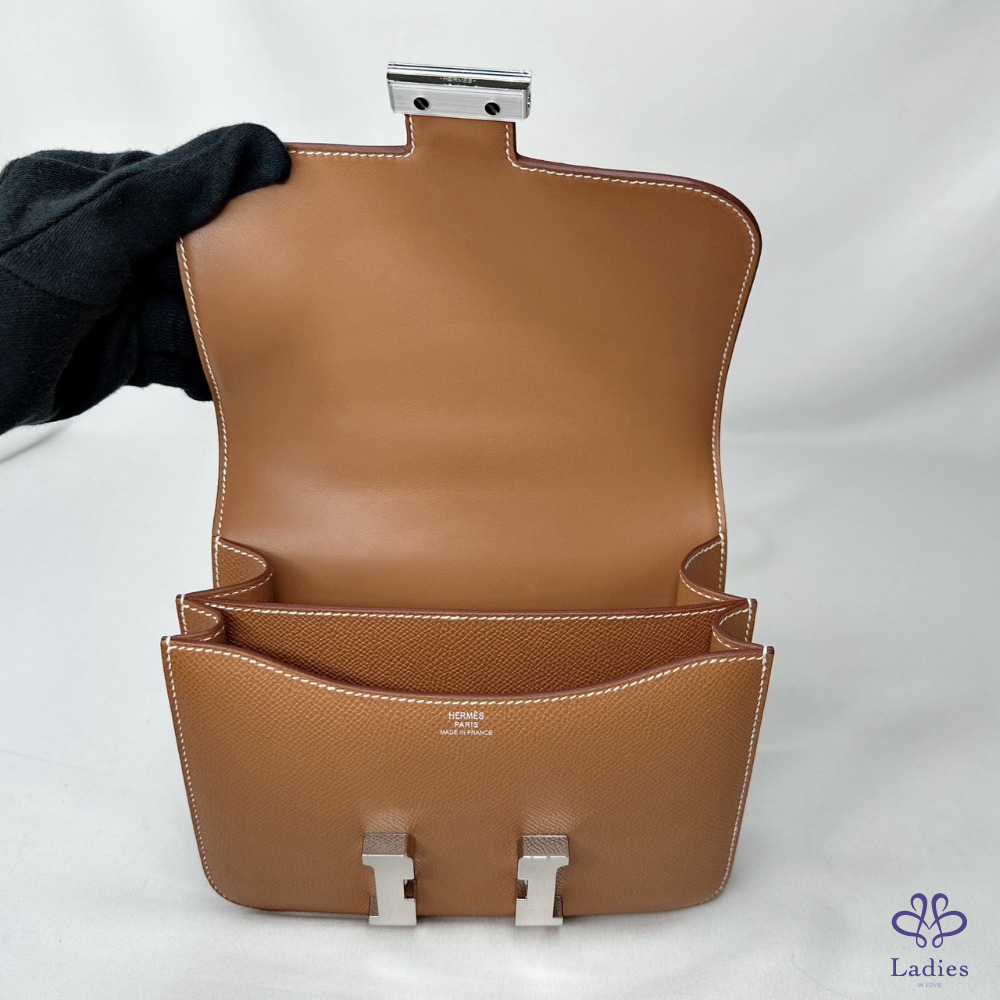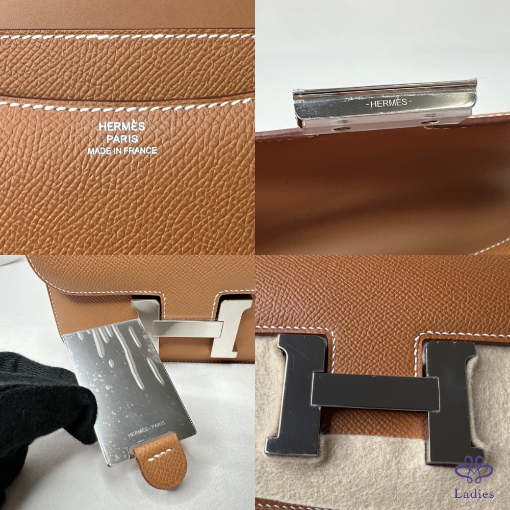 產品信息 【HERMES CONSTANCE金棕銀康康 19】 #B刻37金棕銀釦 #Epsom皮革 #金屬處皆有後貼膜 非常防刮耐操的Epsom好整理好照顧,皮革軟硬適中 搭配H銀釦超有質感 妥妥出鏡率NO.1🎶🎶 #不用櫃上配到飽就可輕鬆入手 整體包況約9成7新,二手商品均有正常使用/存放痕跡 尺寸:19x15x5cm 附件:原廠盒、原廠防塵袋、國外購證(去個資)、羊毛氈、緞帶 #A114051202