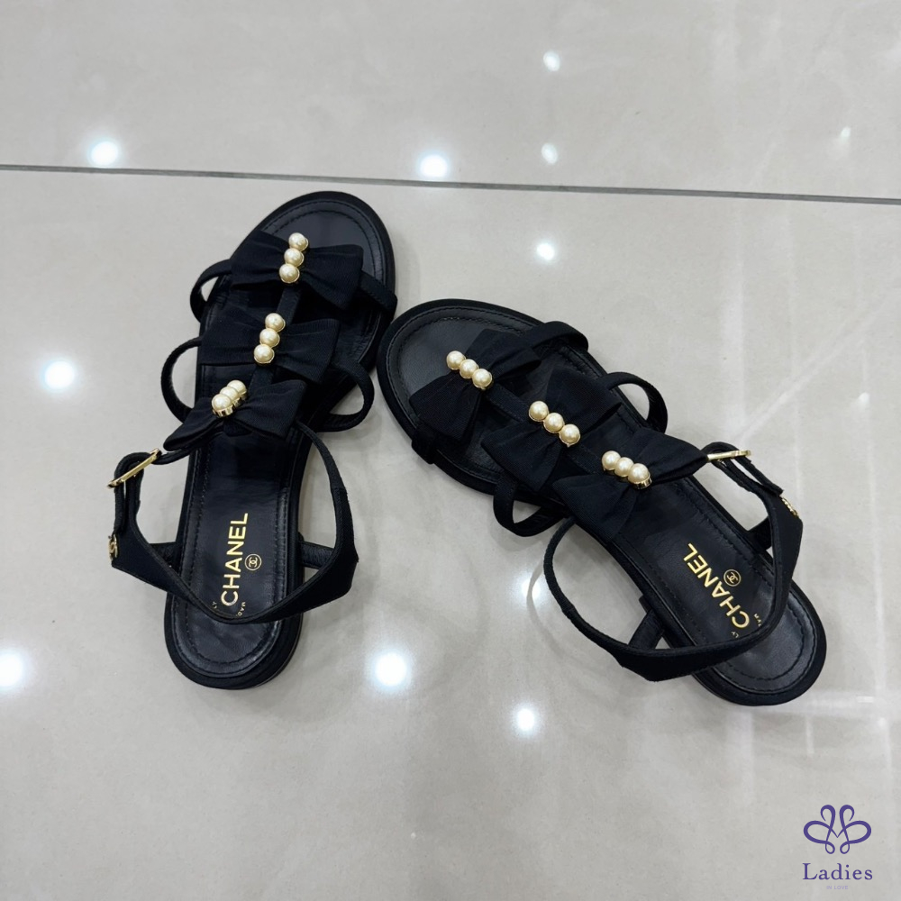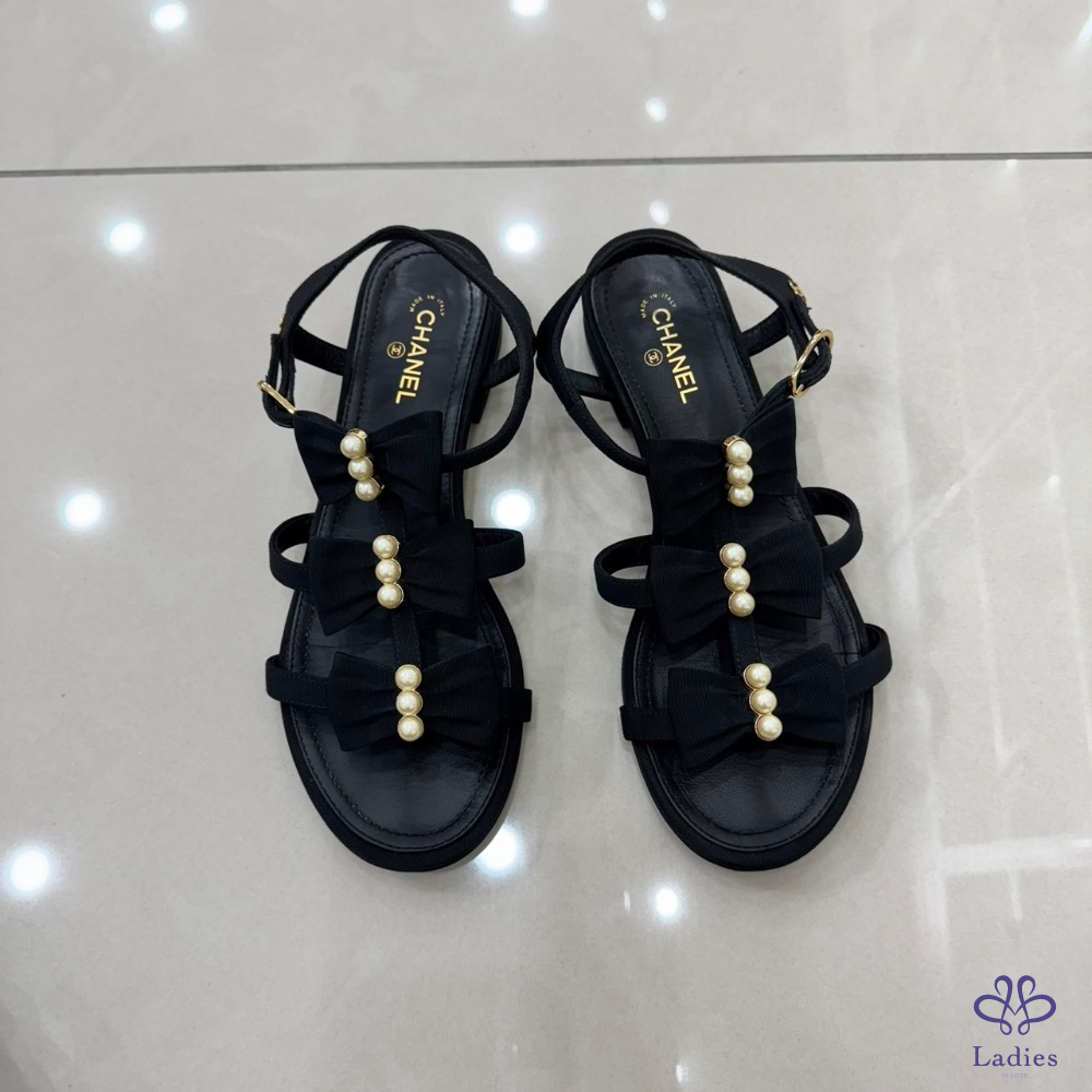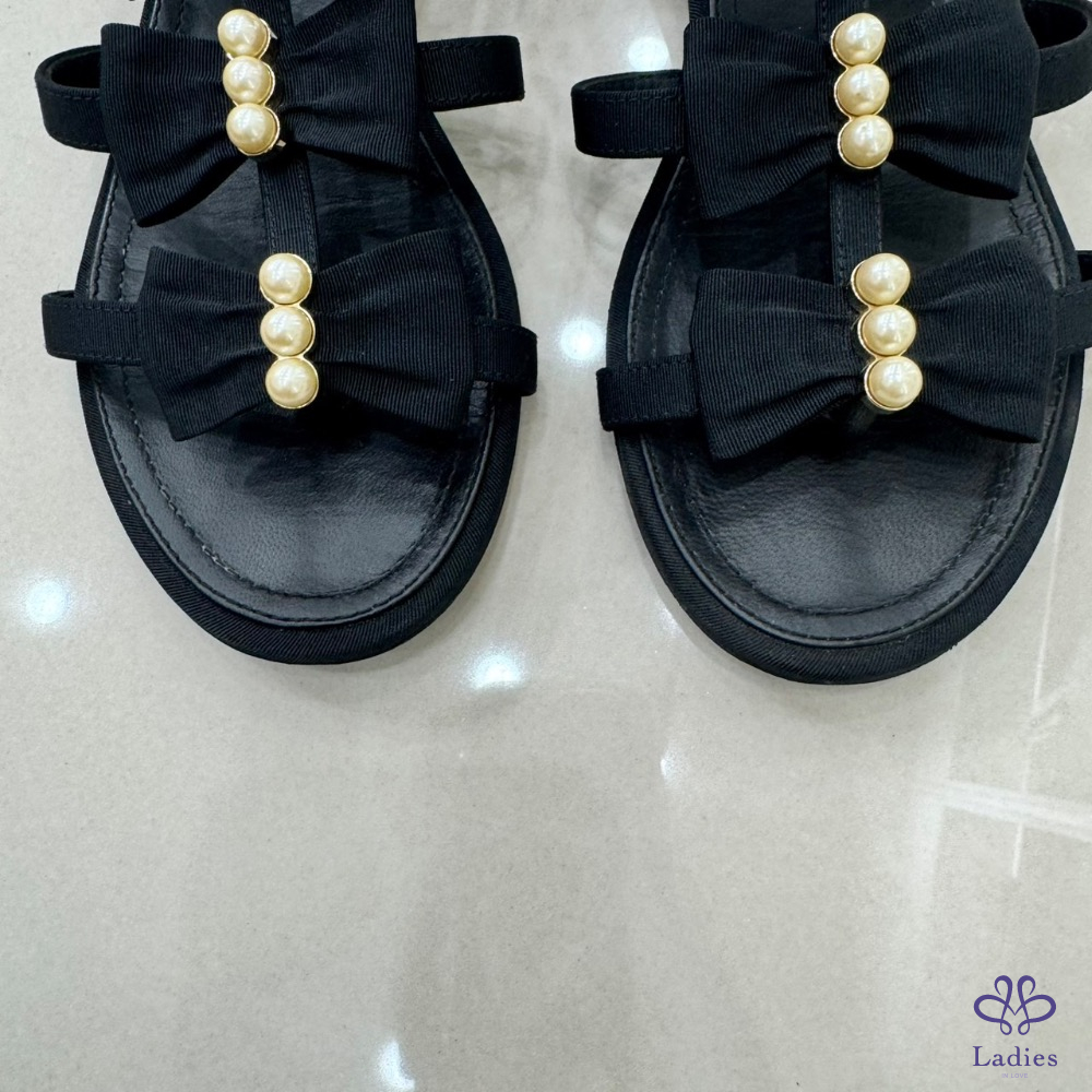 💖💖 香奈兒Chanel高級工坊蝴蝶結+珍珠 平底涼鞋