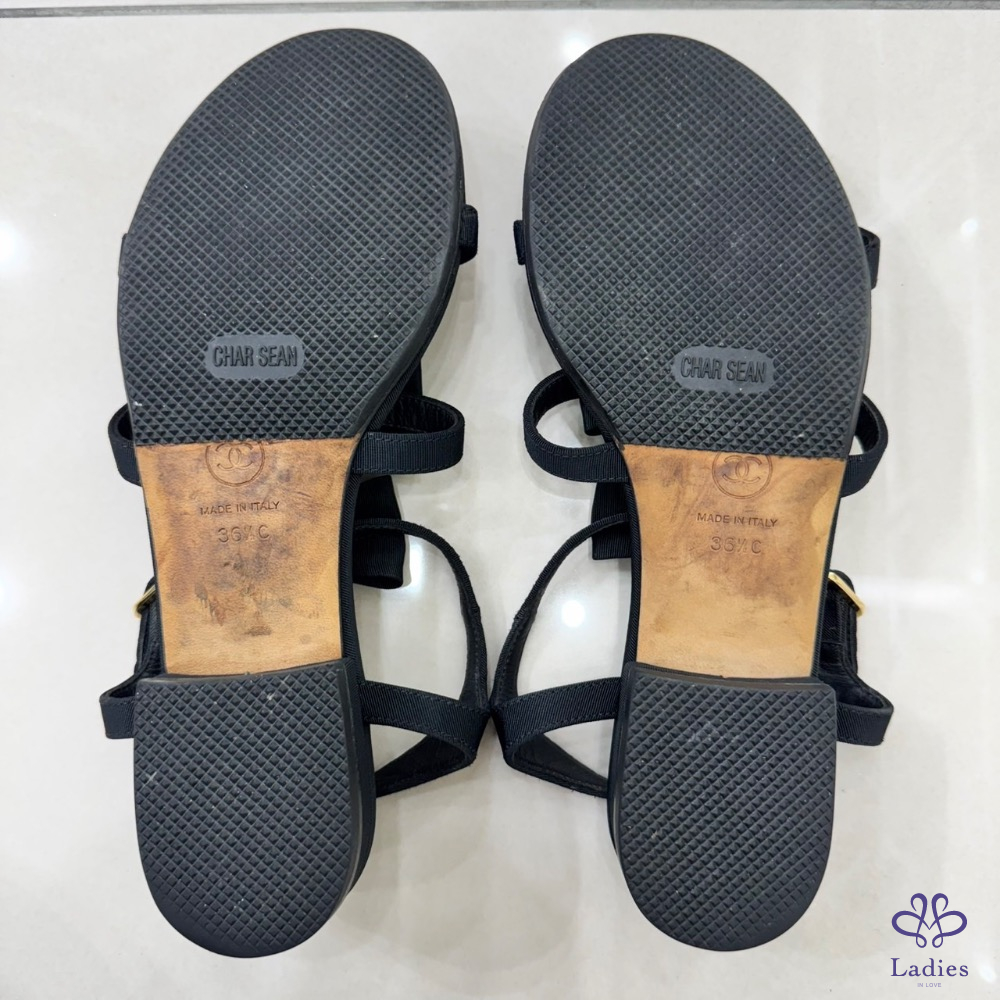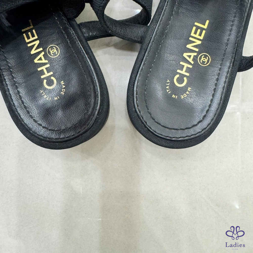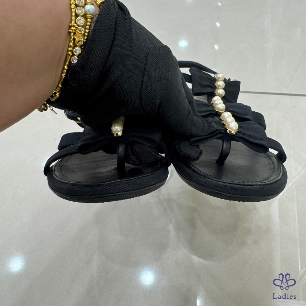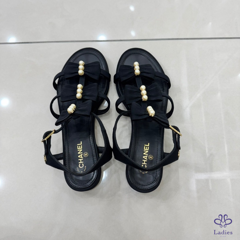 💖💖 香奈兒Chanel高級工坊蝴蝶結+珍珠 平底涼鞋