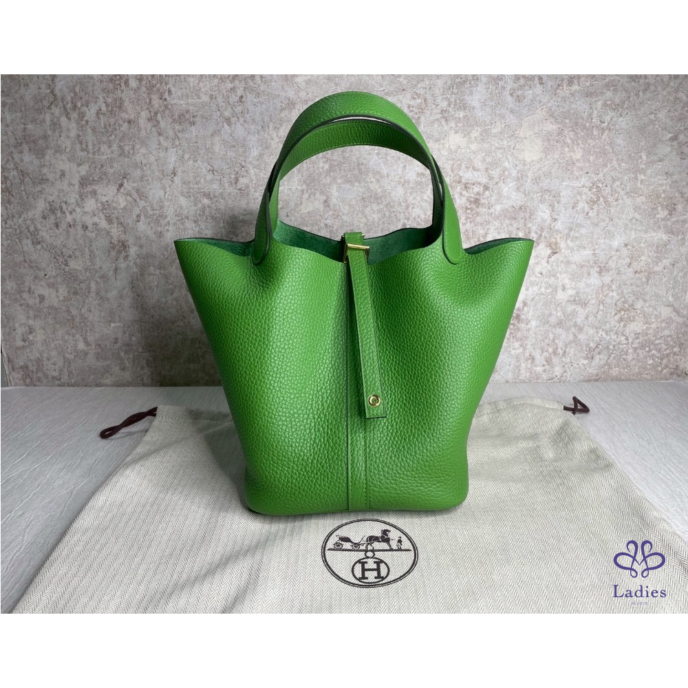 Hermès 全新Picotin22絲蘭綠金扣菜籃子