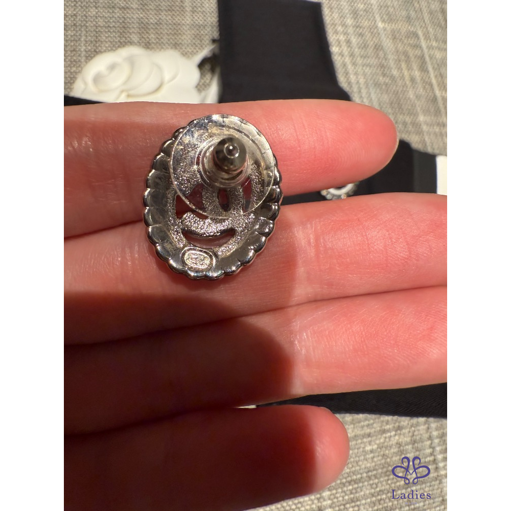 Chanel 圓形白色簍空 耳環