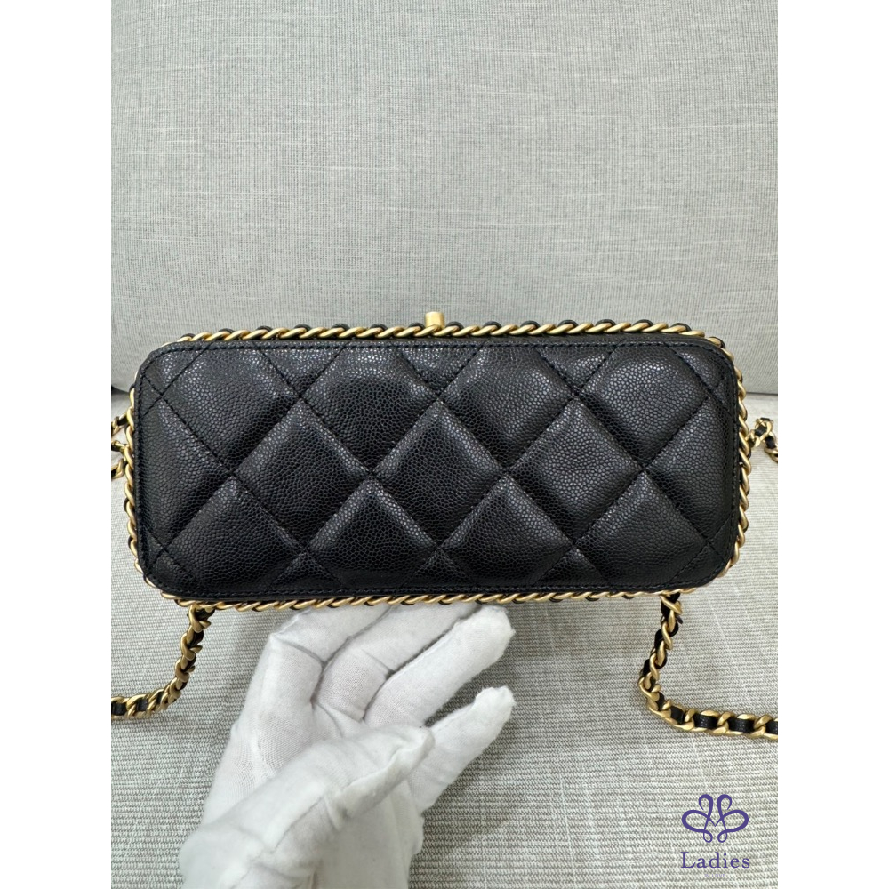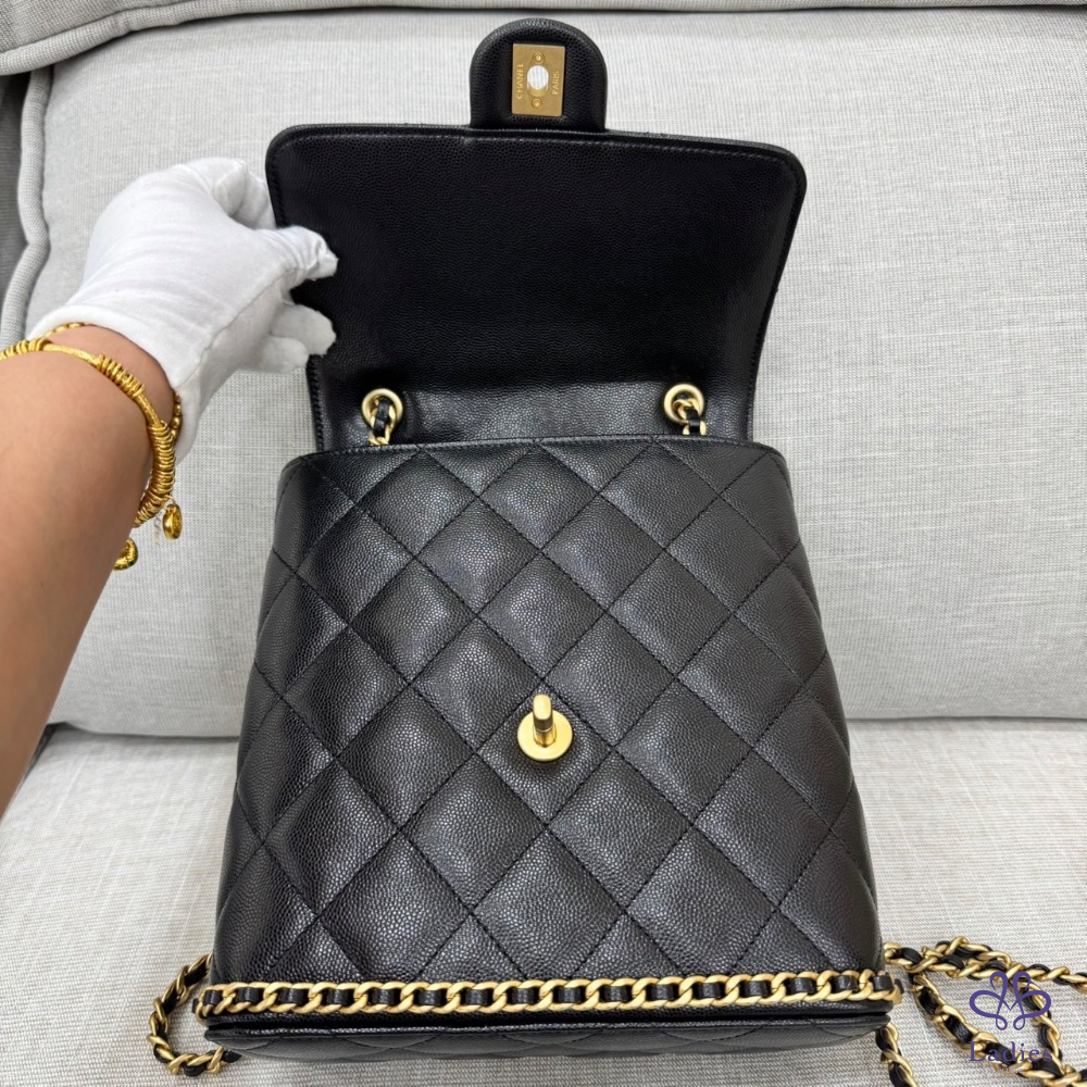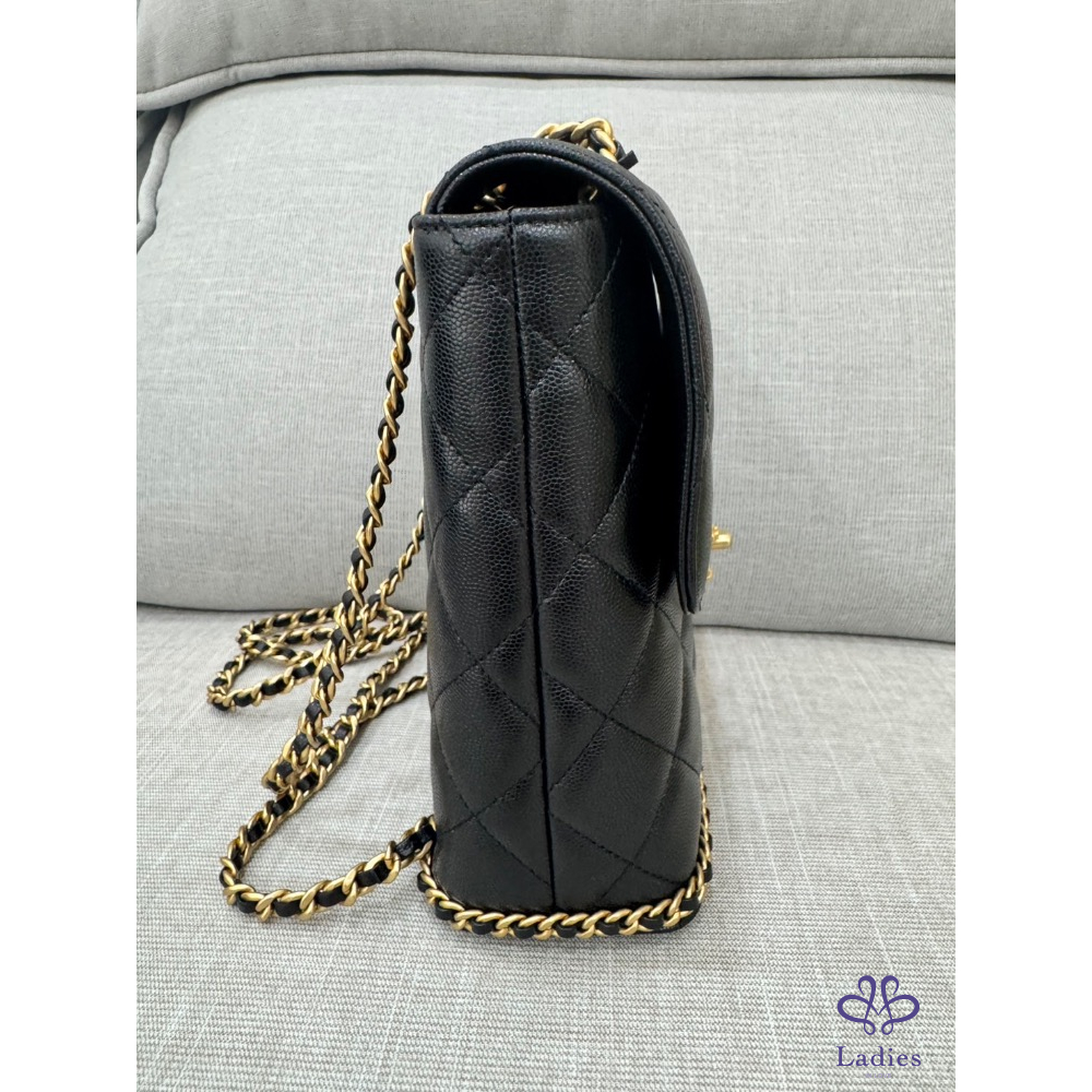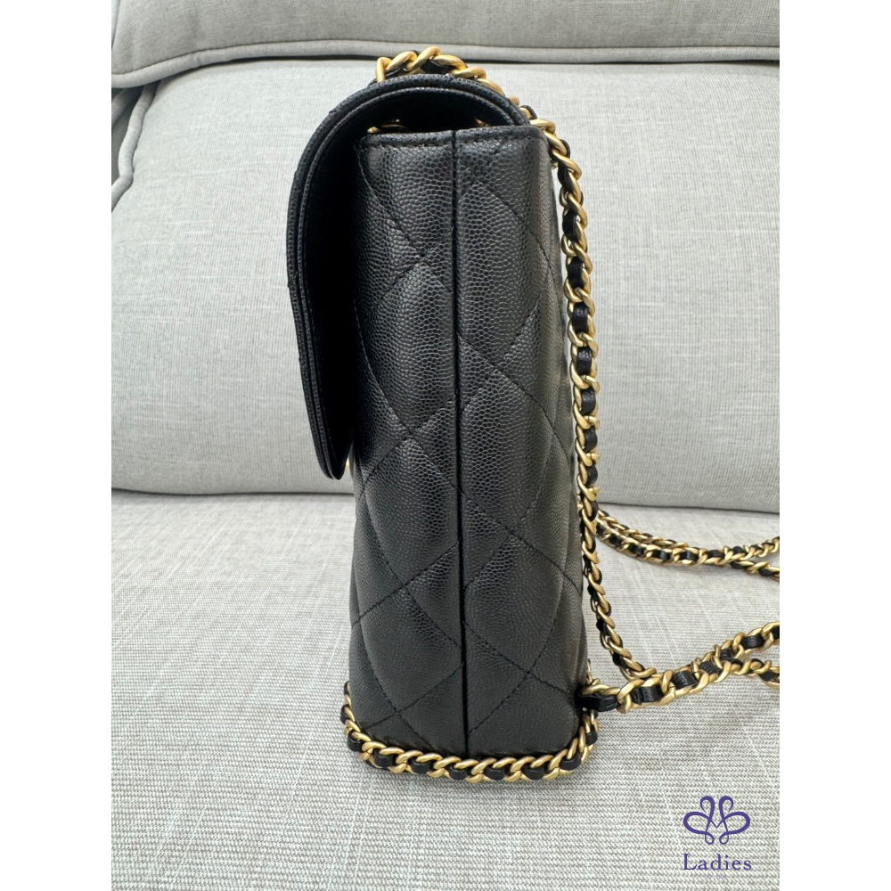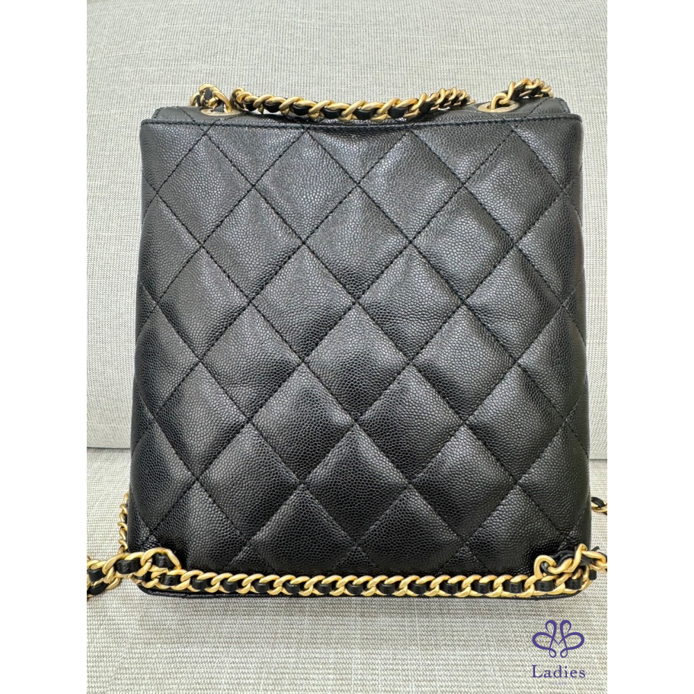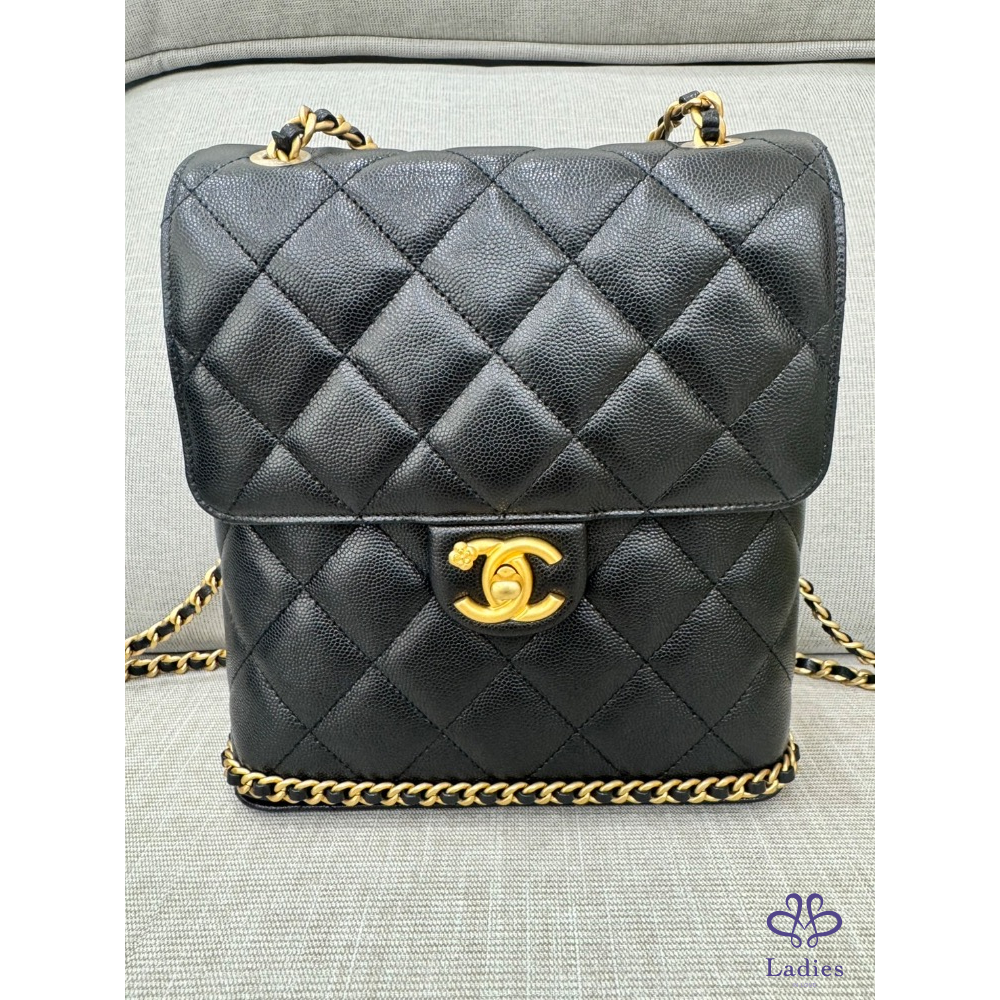 💖💖 香奈兒CHANEL 23k黑金荔枝皮 Ado 山茶花扣 雙肩包 手提包
