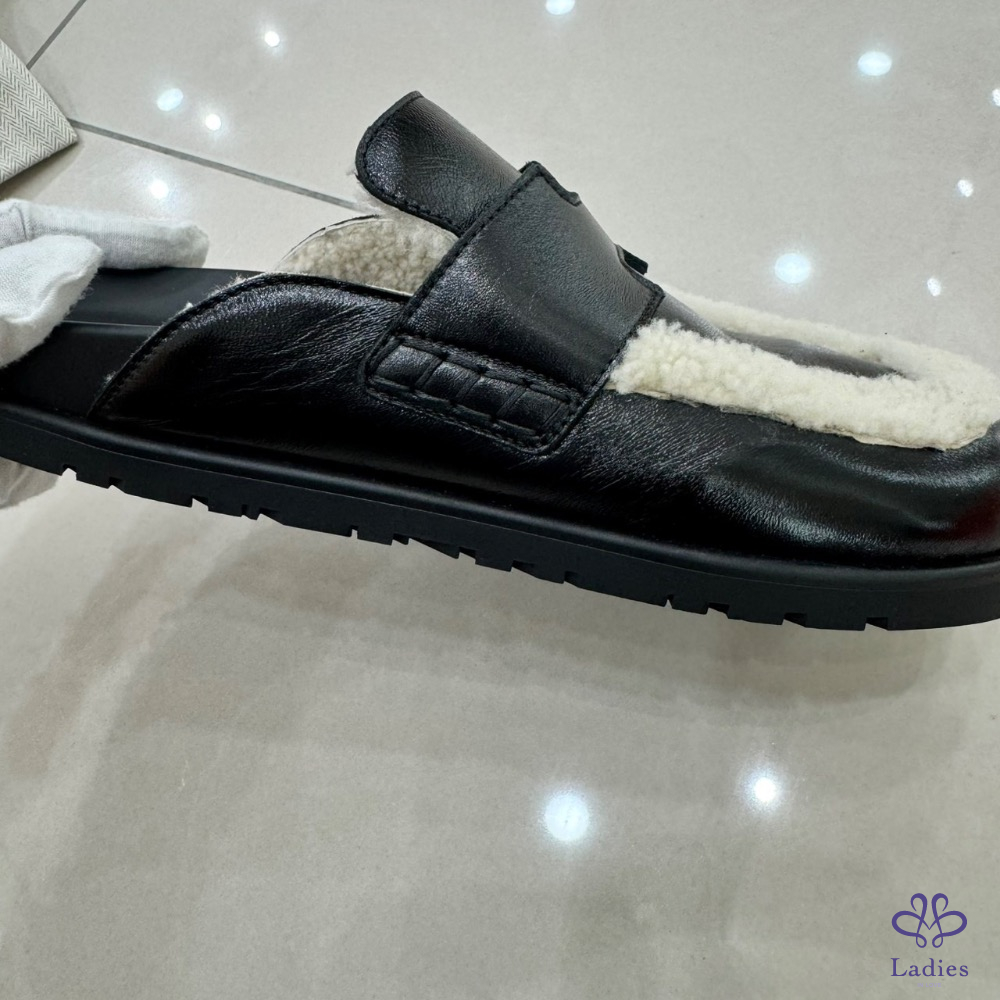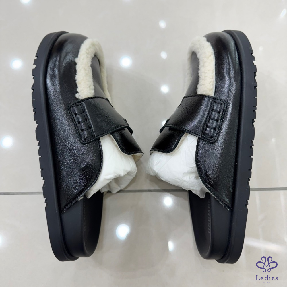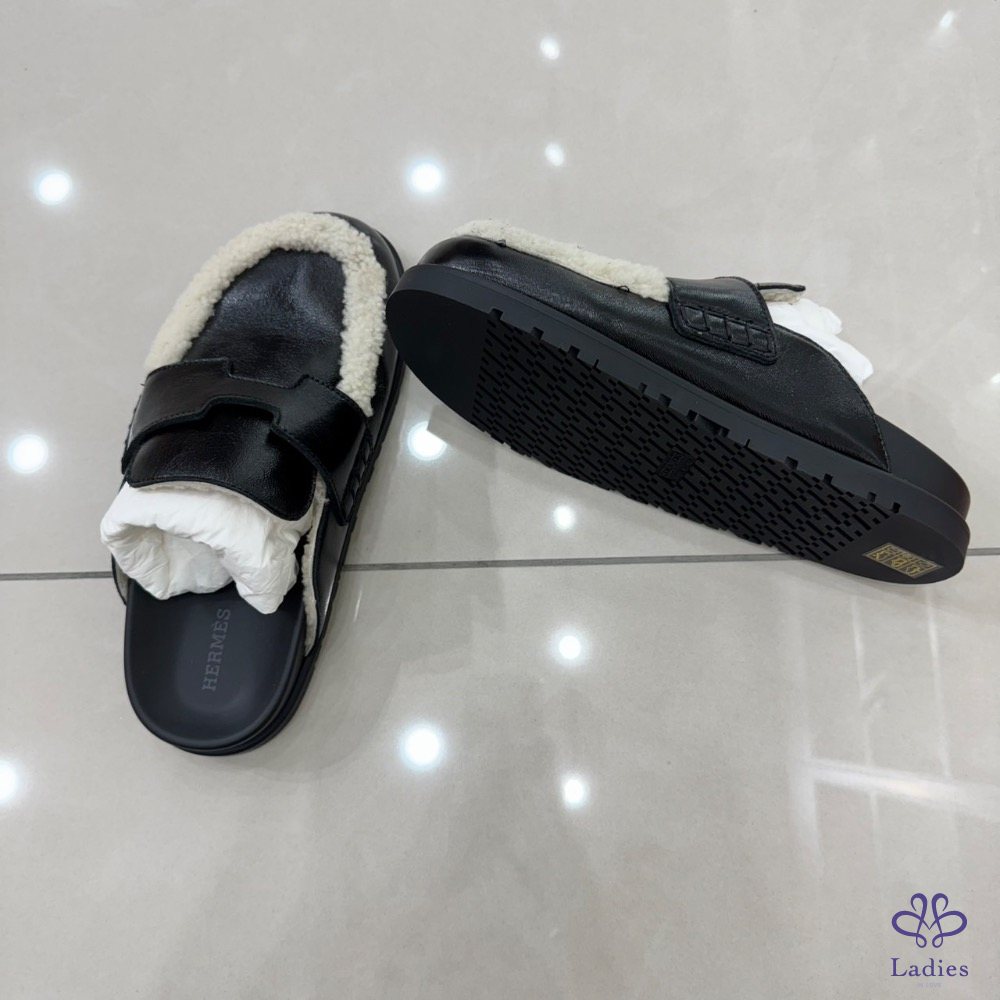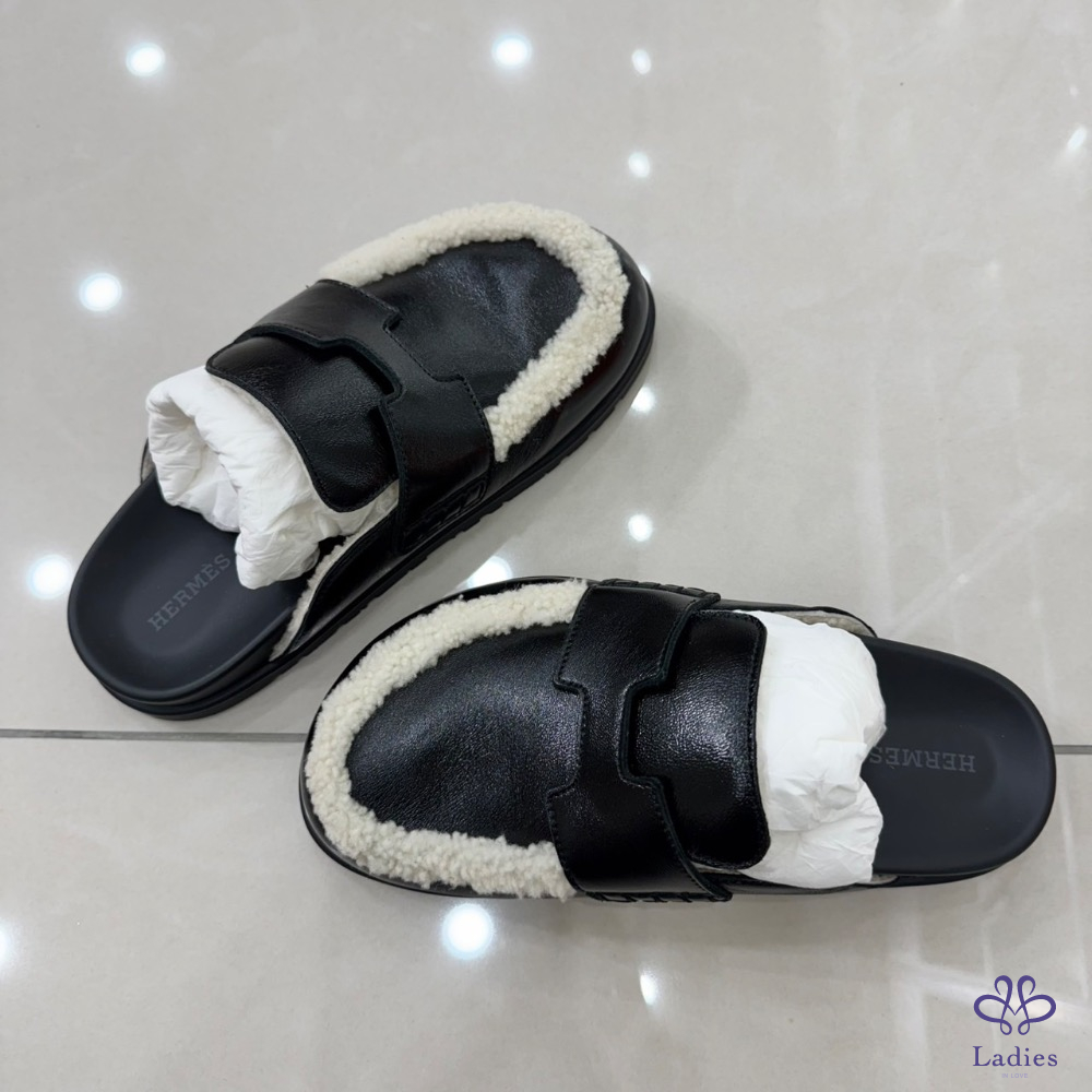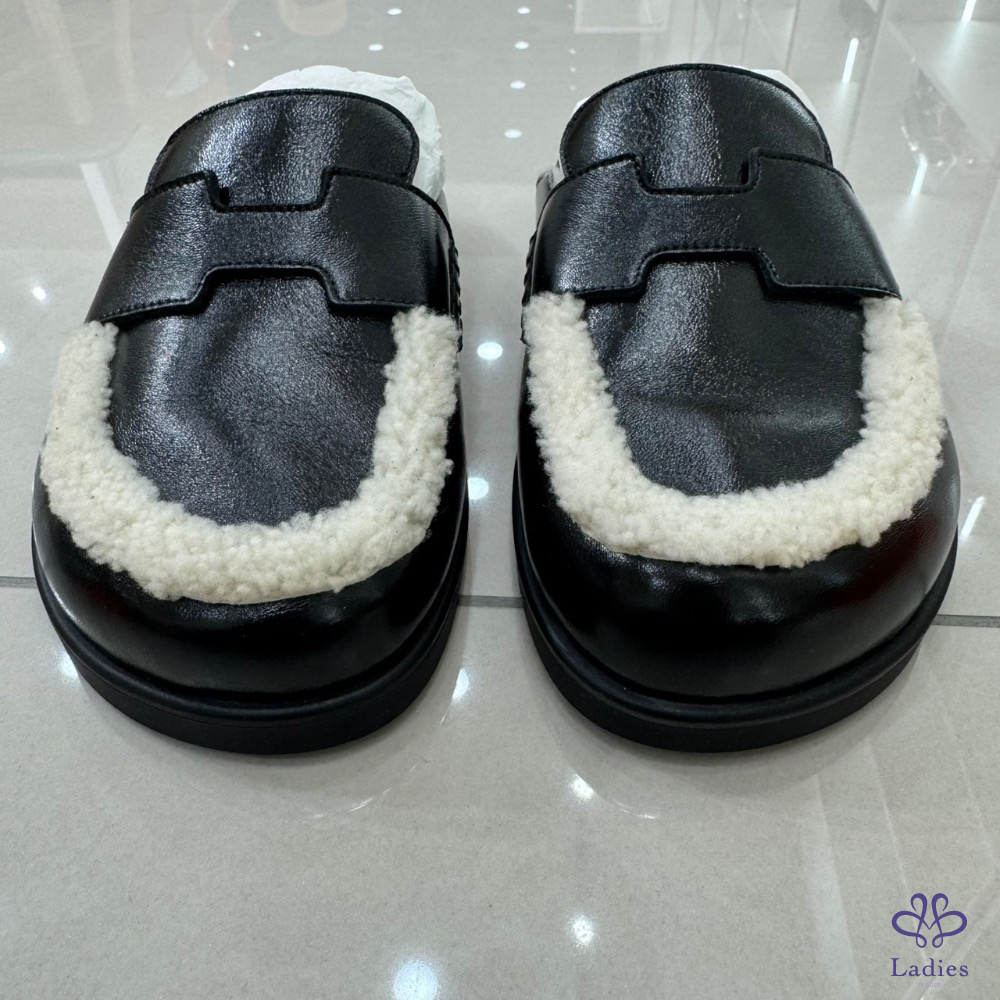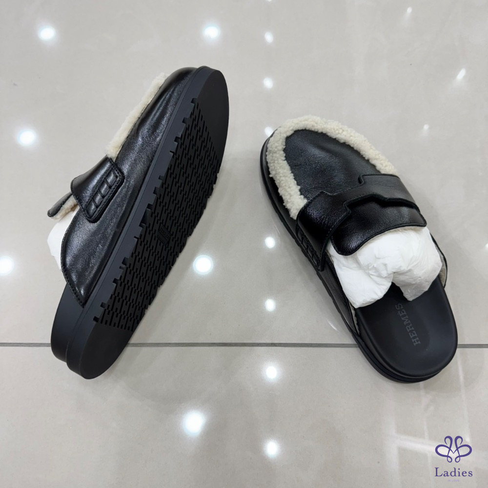 💖💖 愛馬仕~Hermes 新款 Go穆勒鞋半拖亮面羊羔毛
