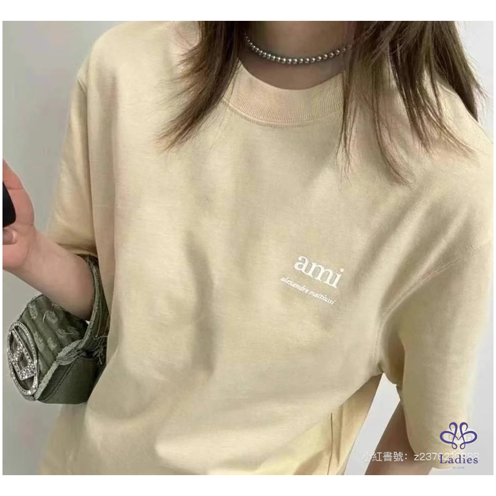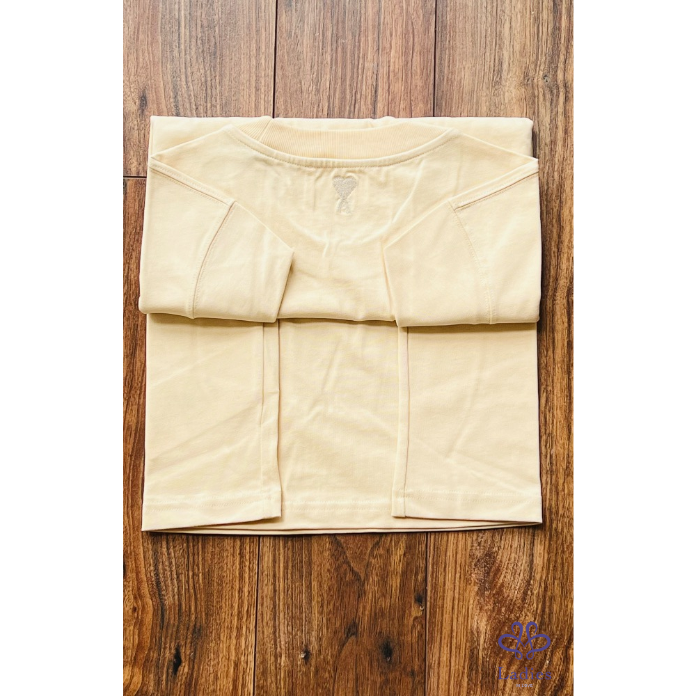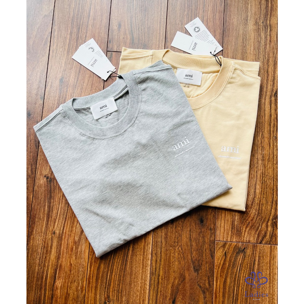 AMI 刺繡T 灰  奶油黃 (XS / S)