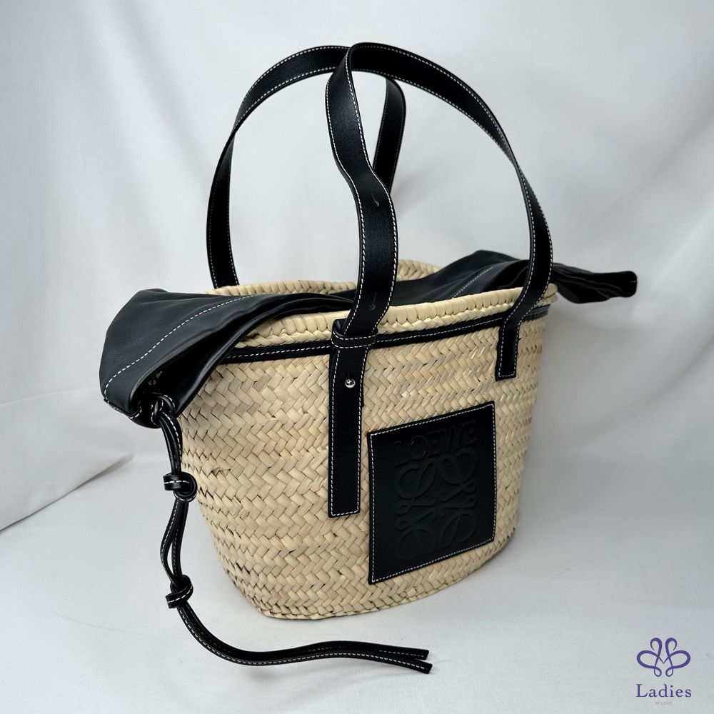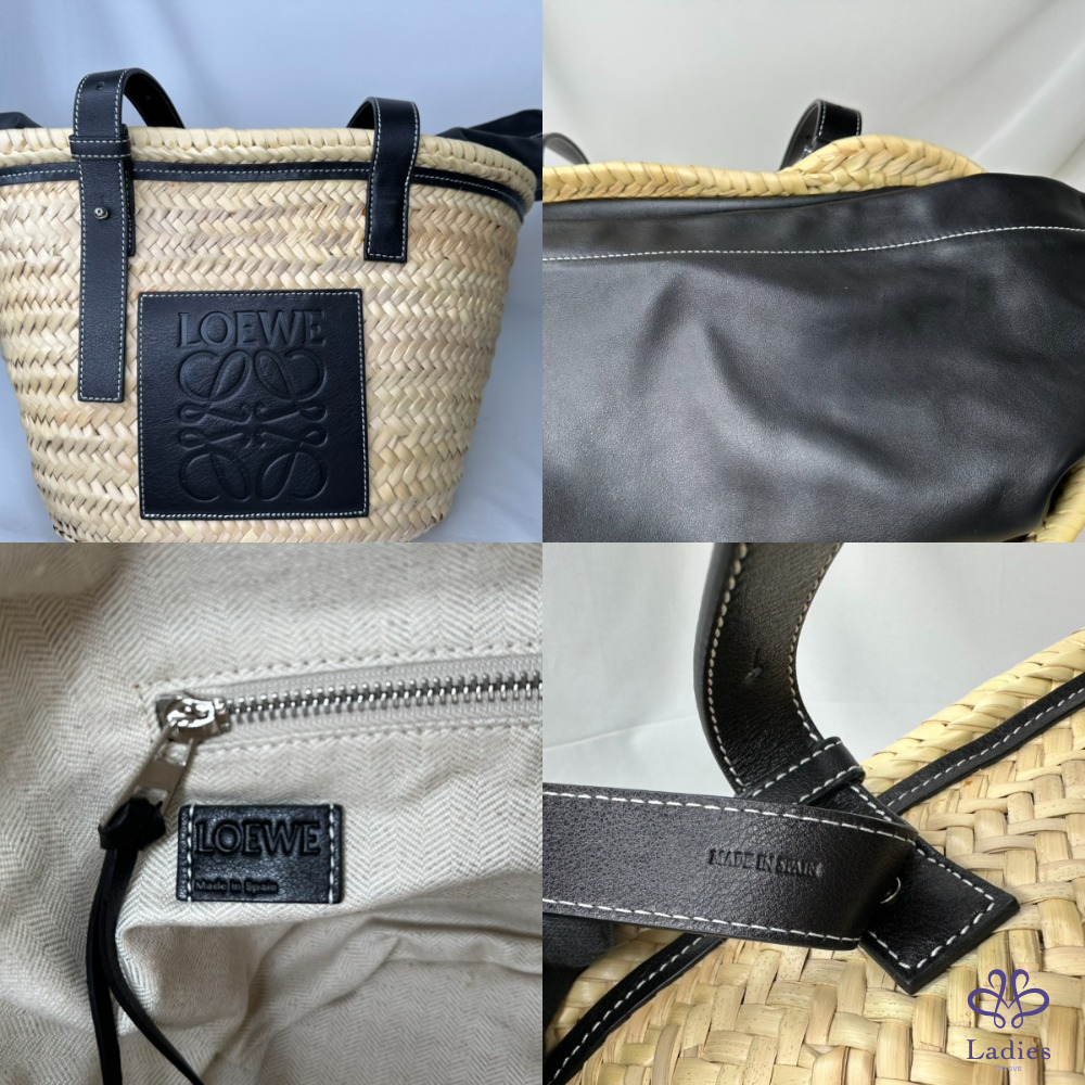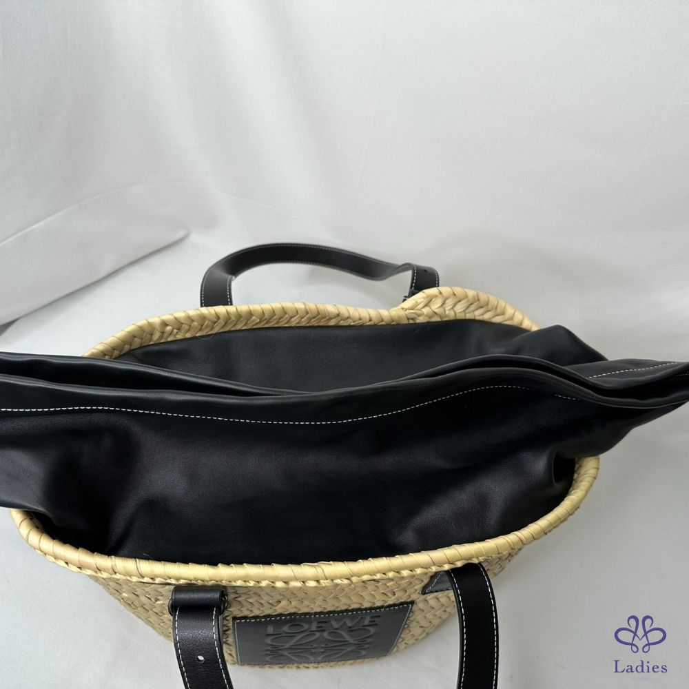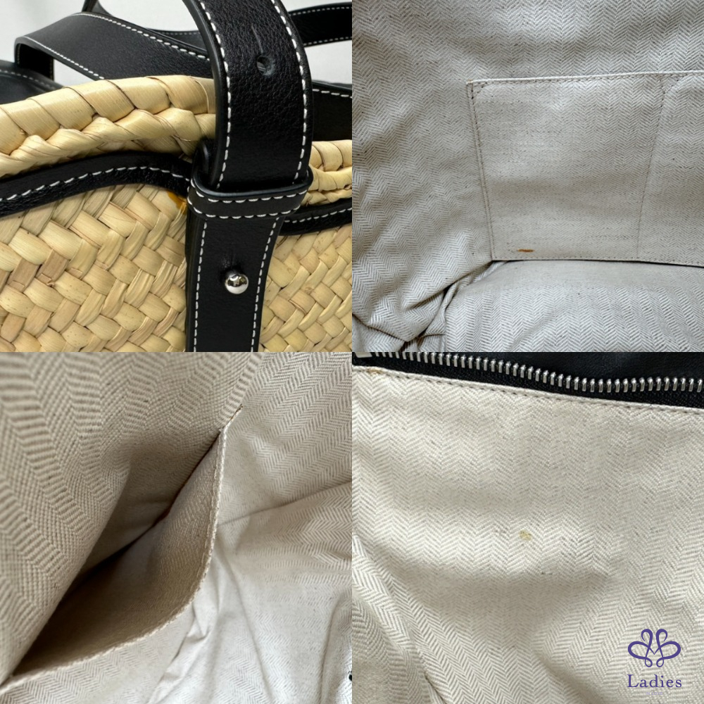 產品信息 【LOEWE 中號皮革草編籃子包】 #超人氣草編包閒置極新 #專櫃價近6萬重點這裡非常平價 手工編織棕櫚葉籃子配有帶拉鍊的黑色小牛皮內袋 網美照怎麼搭都好看 輕鬆渡假感 #有幾處原廠溢膠均不影響使用 整體包況約9成5新,二手商品均有正常使用/存放痕跡 尺寸:底26.5、上42x25x16cm 附件:原廠防塵袋、說明書 #B114050708