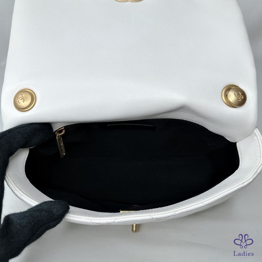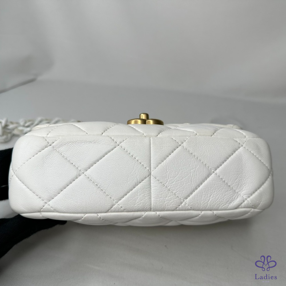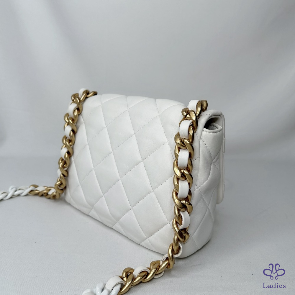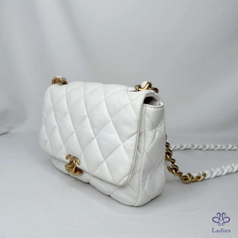 產品信息 【CHANEL 陶瓷拼金鏈小羊皮斜背包】 做舊復古金配上雪白小羊皮,白月光好百搭 包身澎軟,皮穿鏈銜接陶瓷粗鍊帶,清新時尚 整體包況約9成新,二手商品均有正常使用/存放痕跡 型號:AS3206 尺寸:22x15x6.5cm 附件:原廠防塵袋 #B114050201