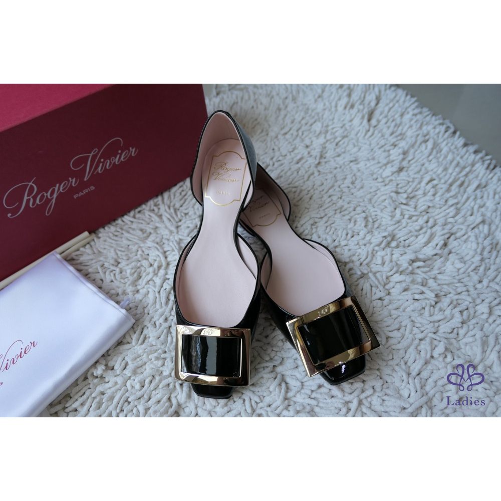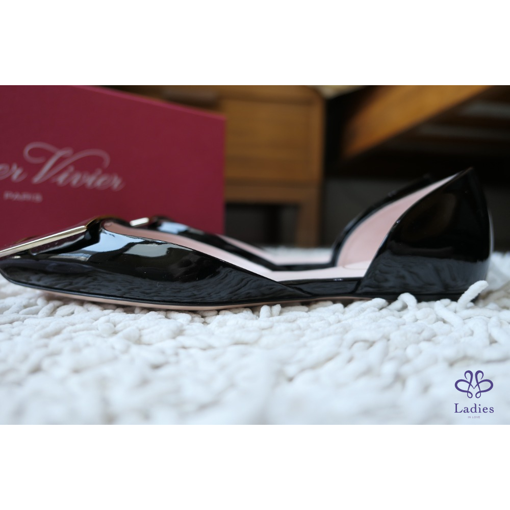 未使用閒置 黑色 RV ROGER VIVIER Trompette Dorsay芭蕾舞鞋